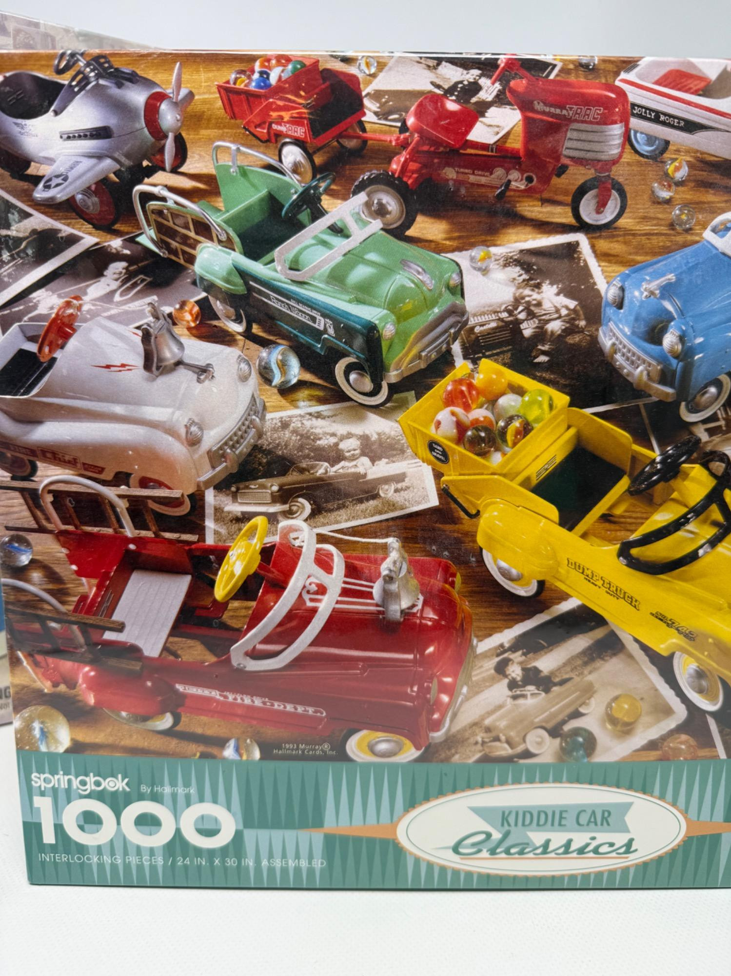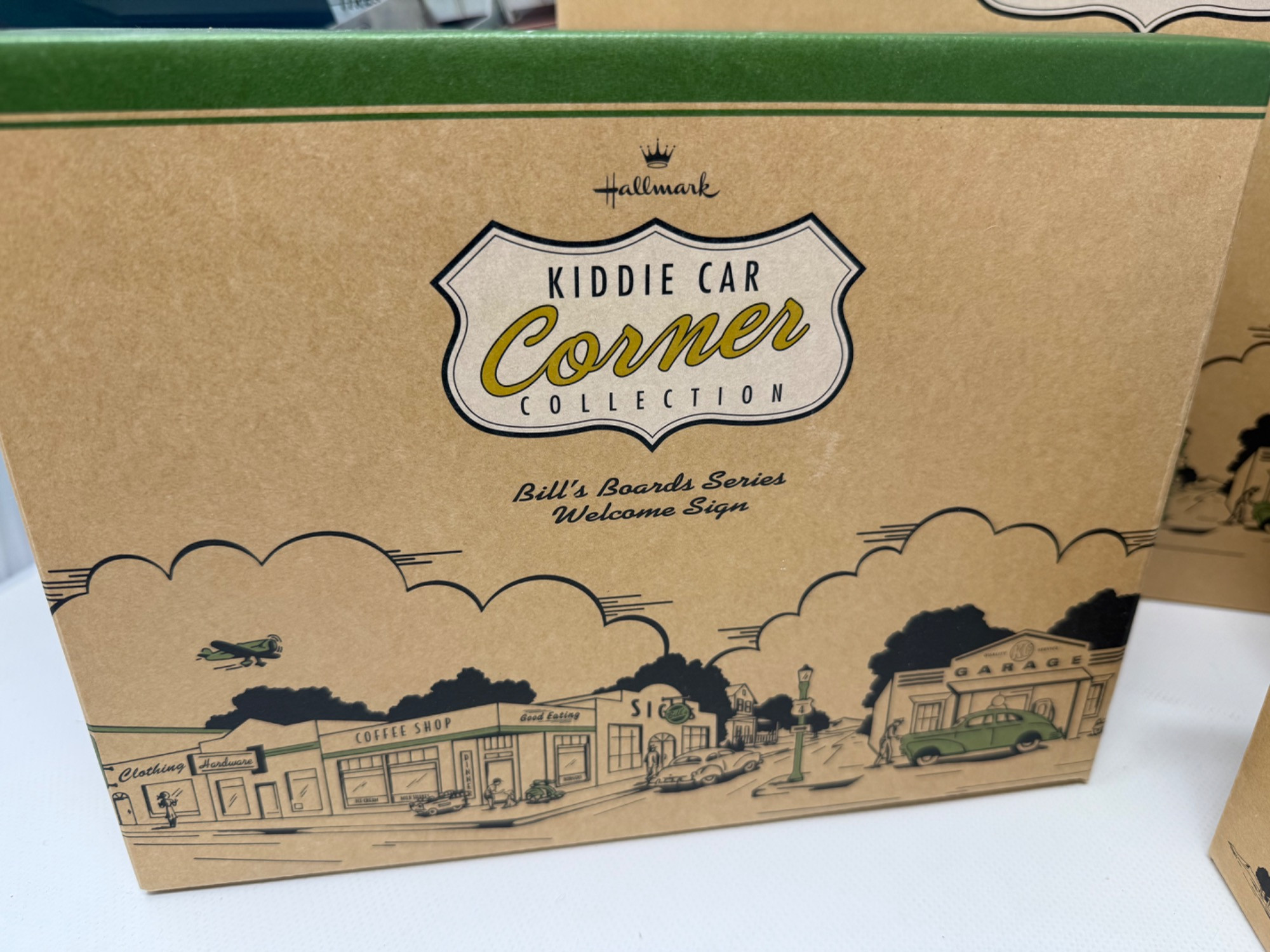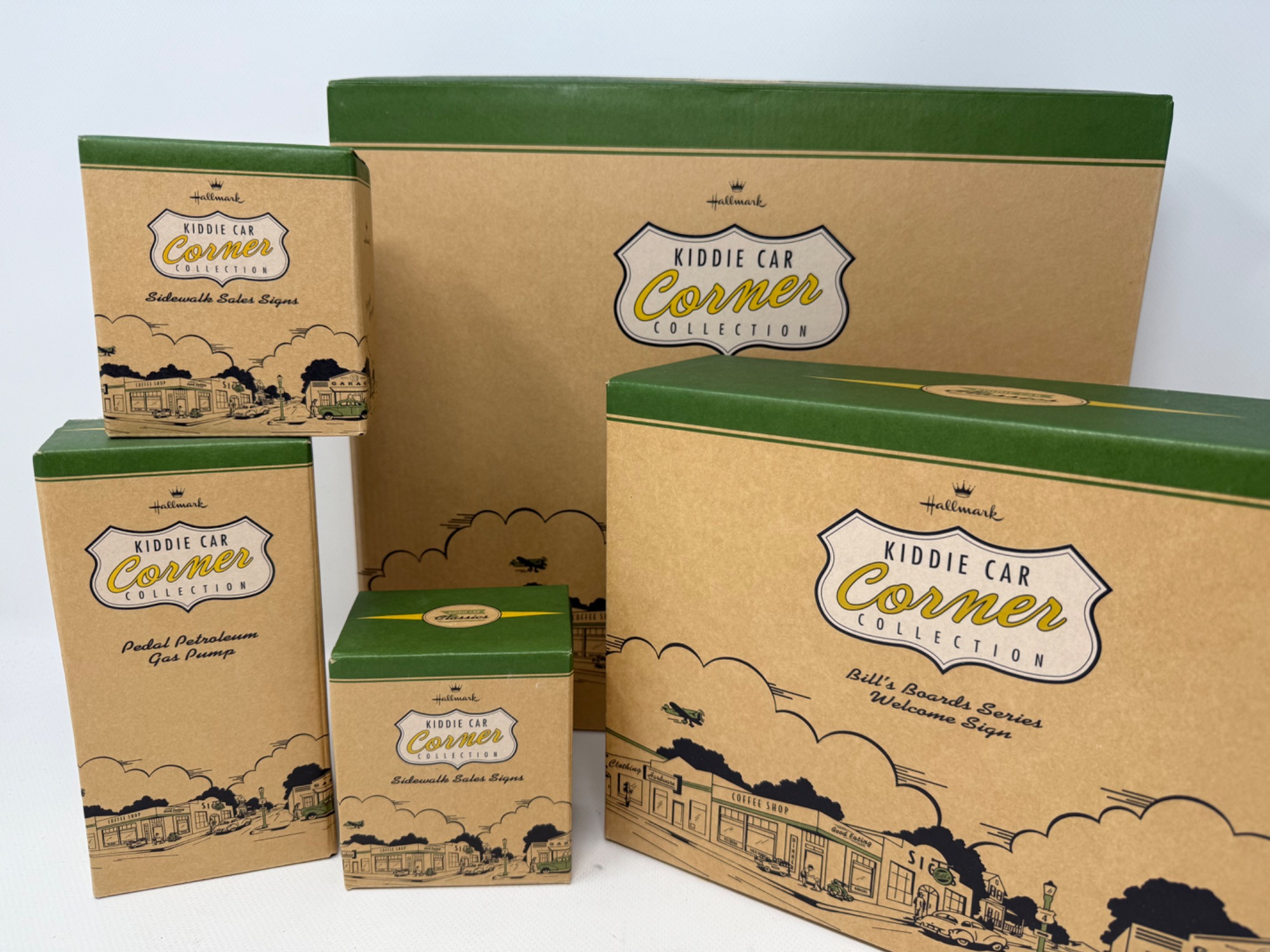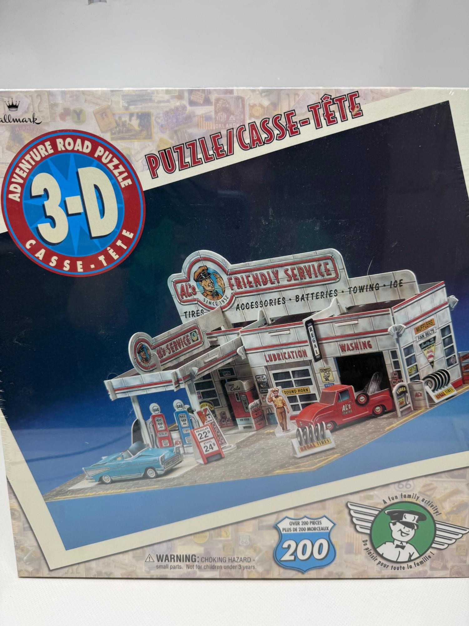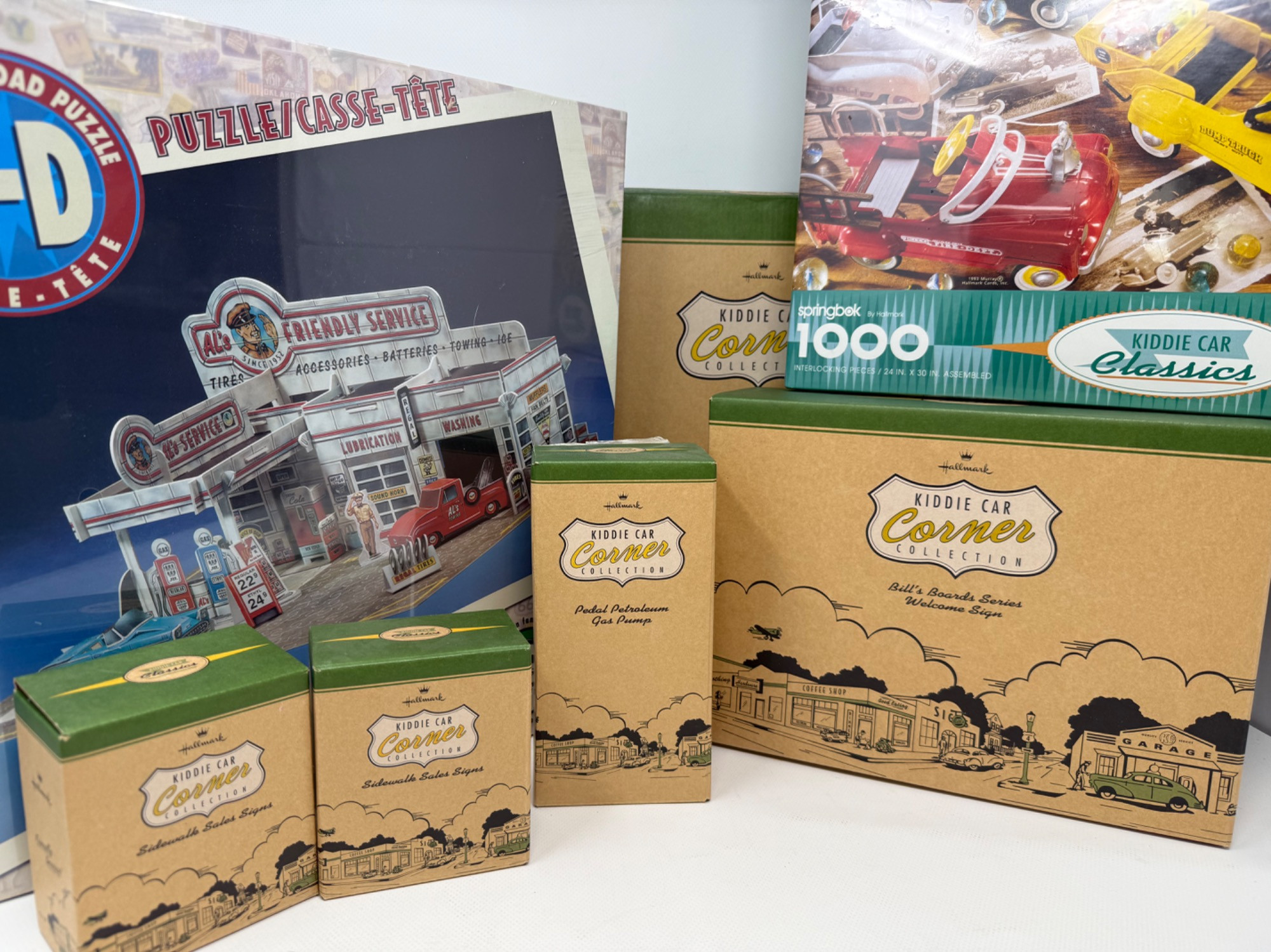 Fun NIB collectibles from Hallmarks Kiddie Classics series. 3-D puzzle, 1000 puzzle, tin road signs, garage, pumps and more.