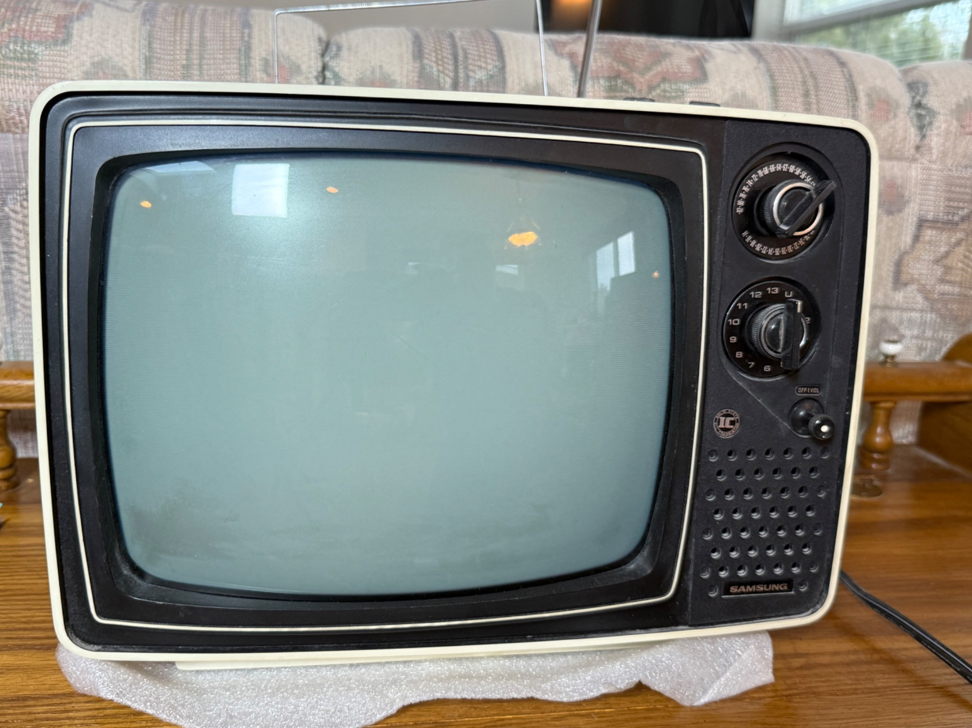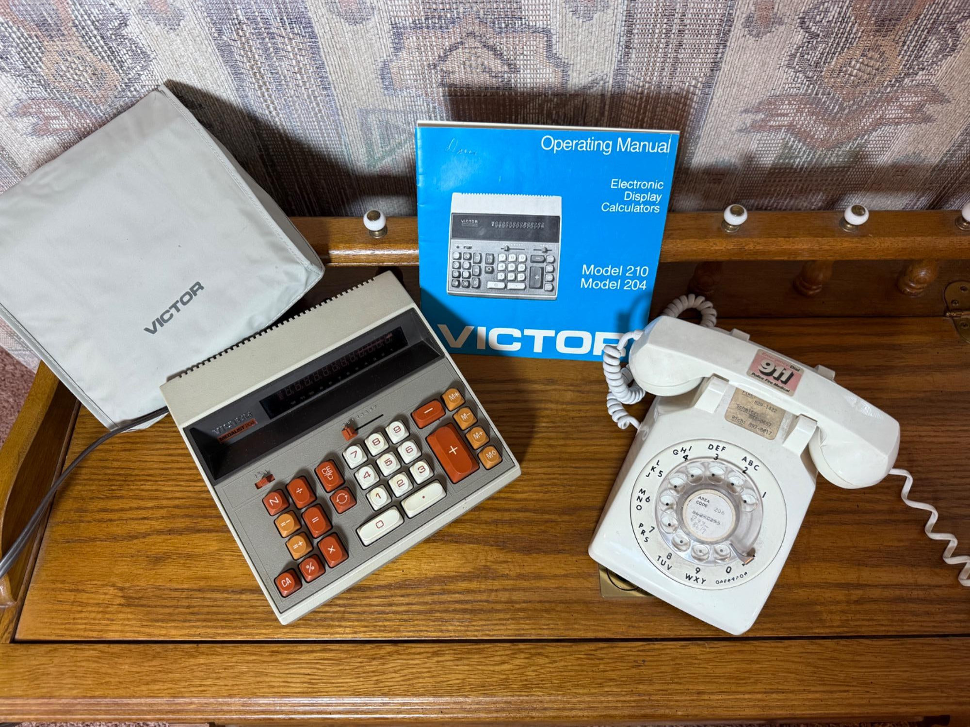 Bring a little nostalgia to your home, office, theater, playhouse. The TV did power up and has been used in recent years. Adding machine powered up and includes cover and manuals.