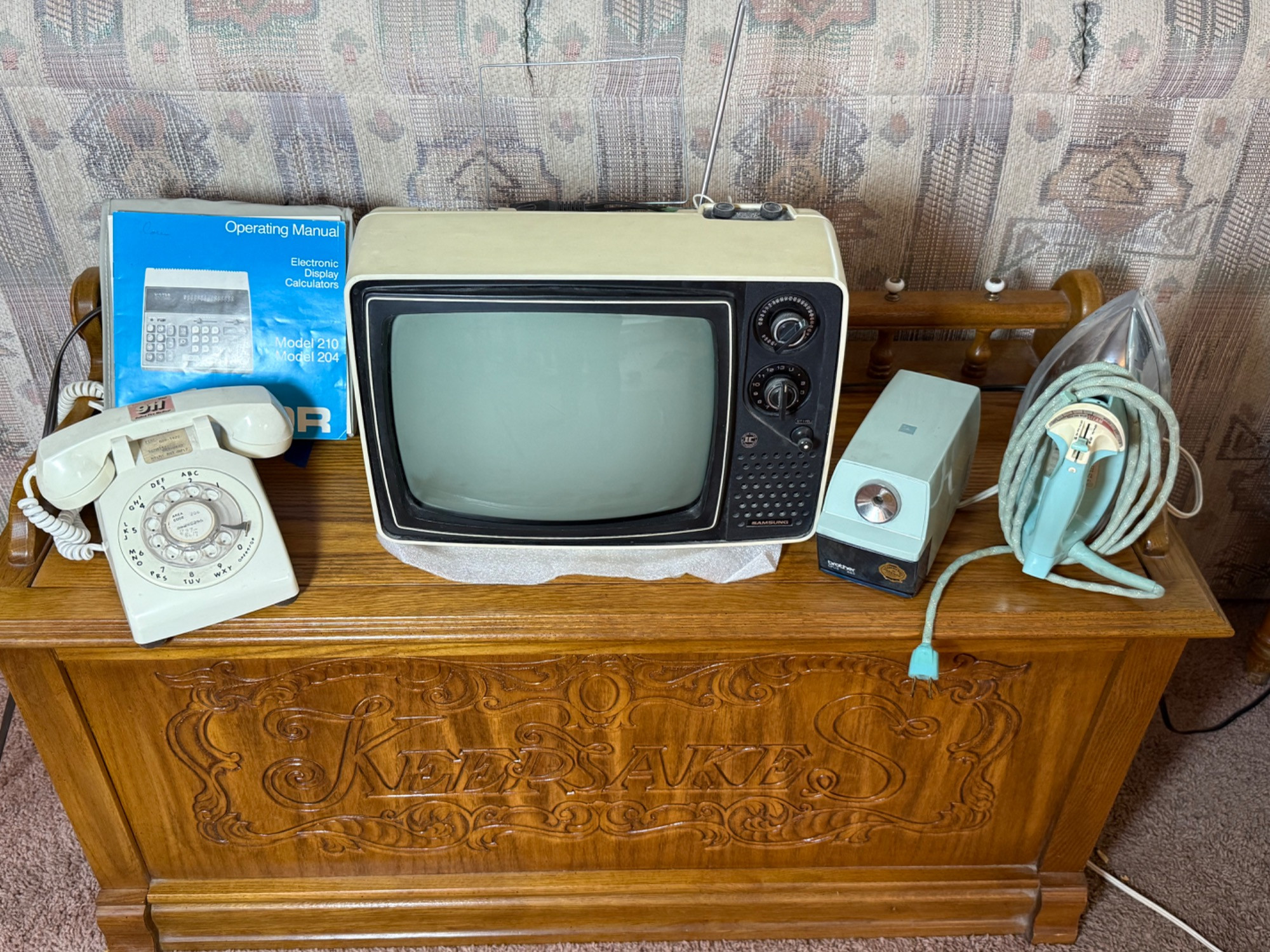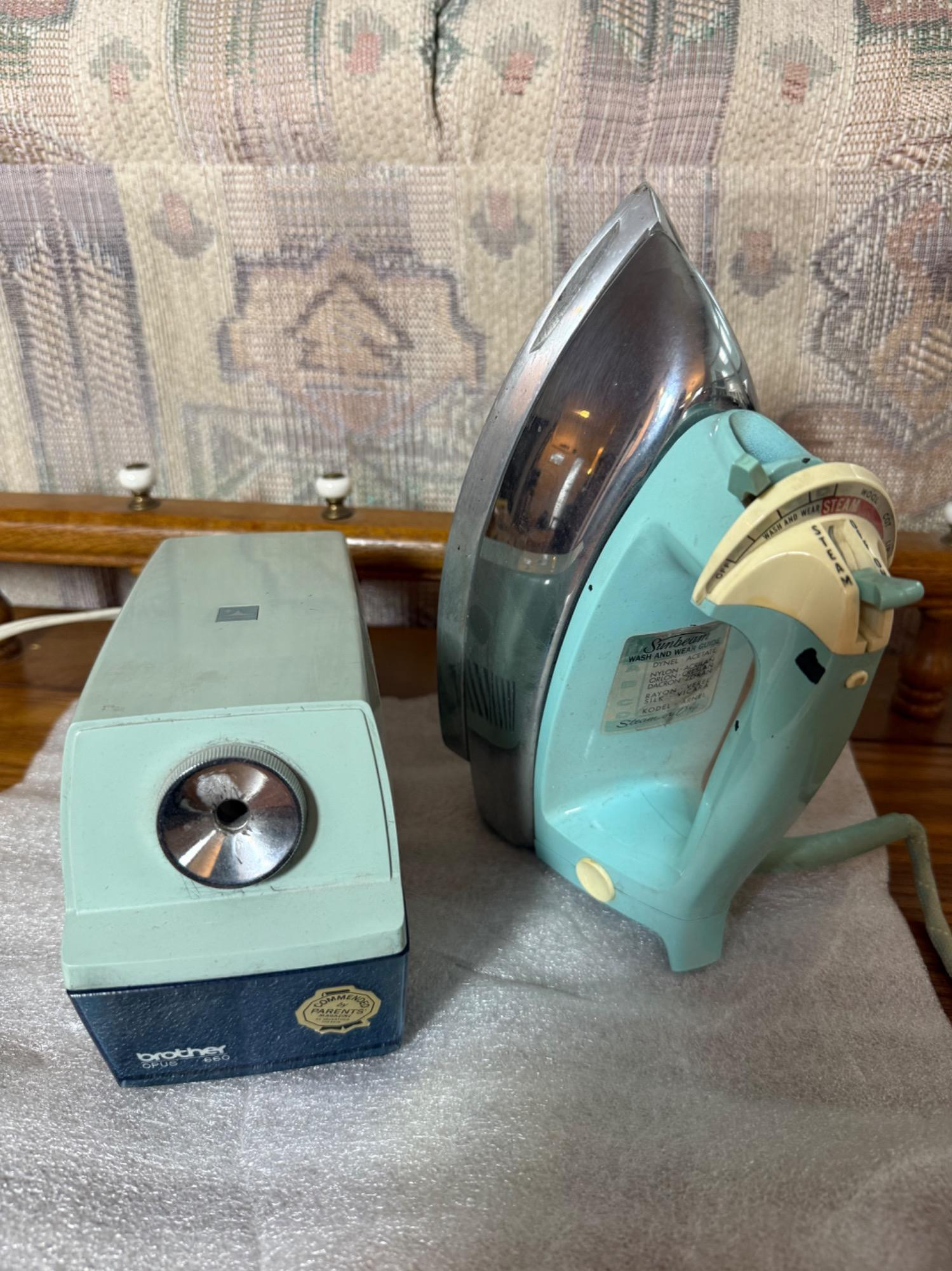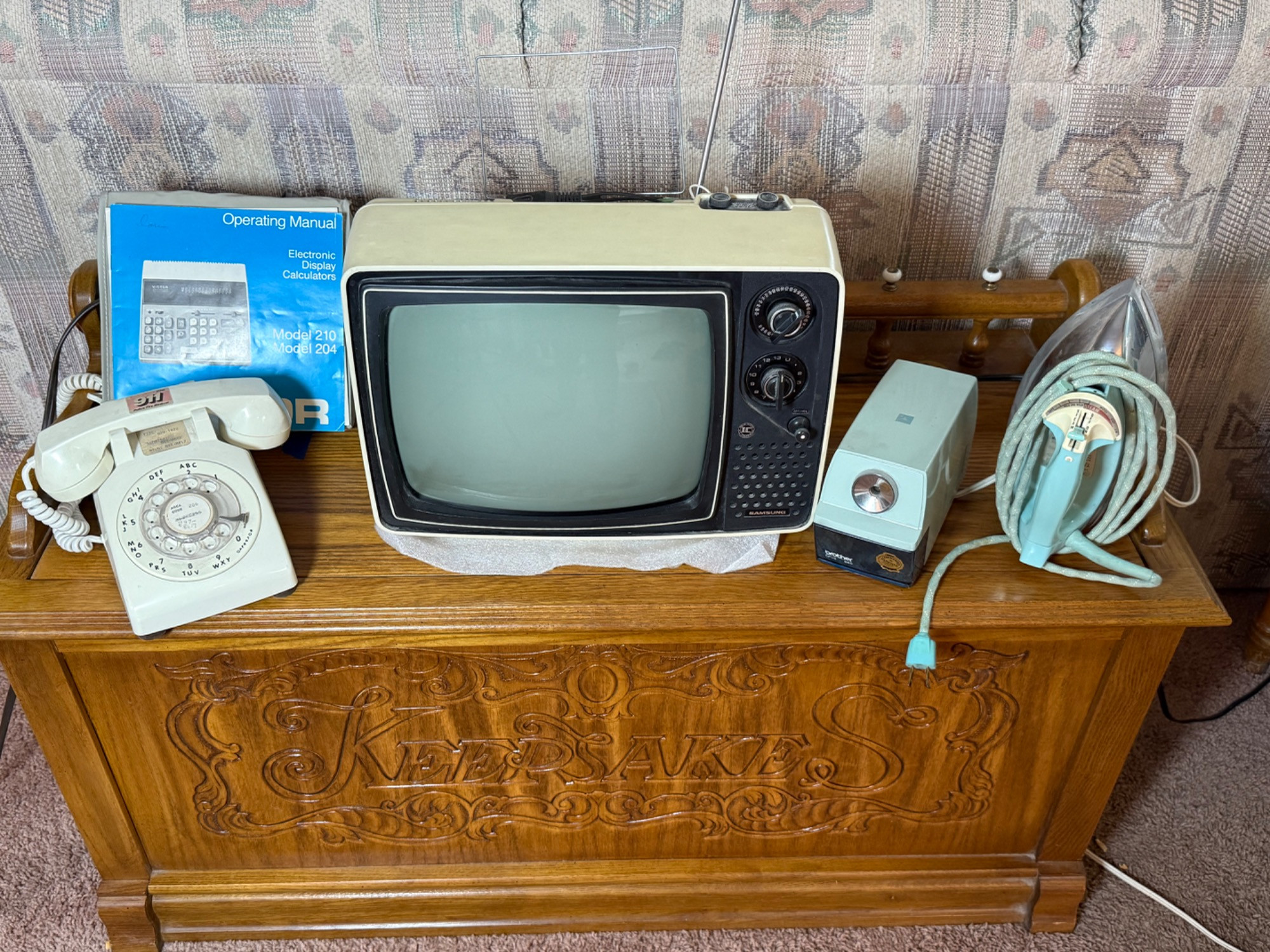 Lot # 120 - Vintage Samsung TV, Phone, Adding Machine, Iron and Sharpner