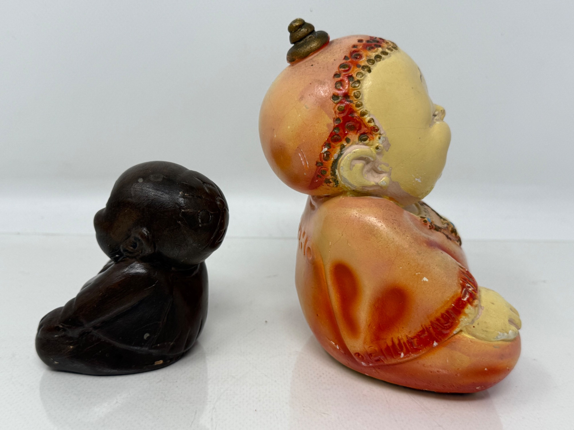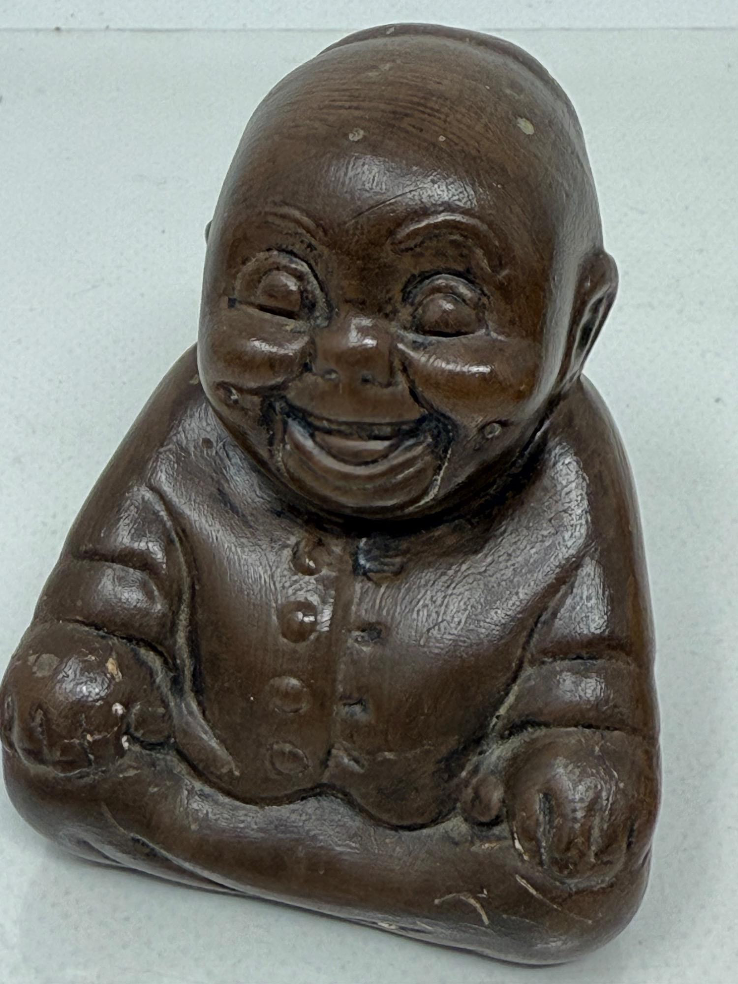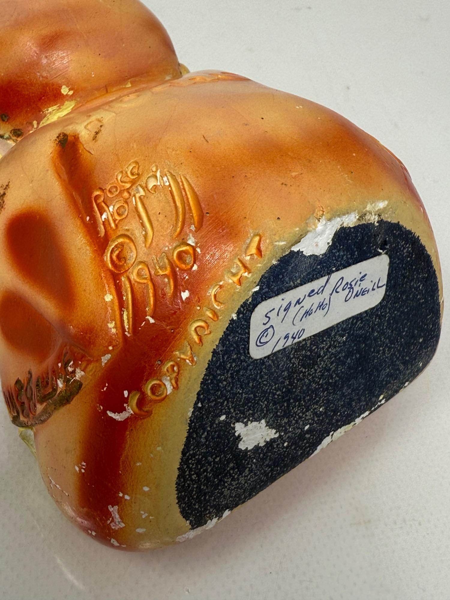 Rosie O'Neill created the Kewpie doll and crafted the Ho-Ho doll. Ceramic and rubber mediums. Dark brown and colored ones are heavy, solid ceramic. Signed ceramic doll, circa 1940