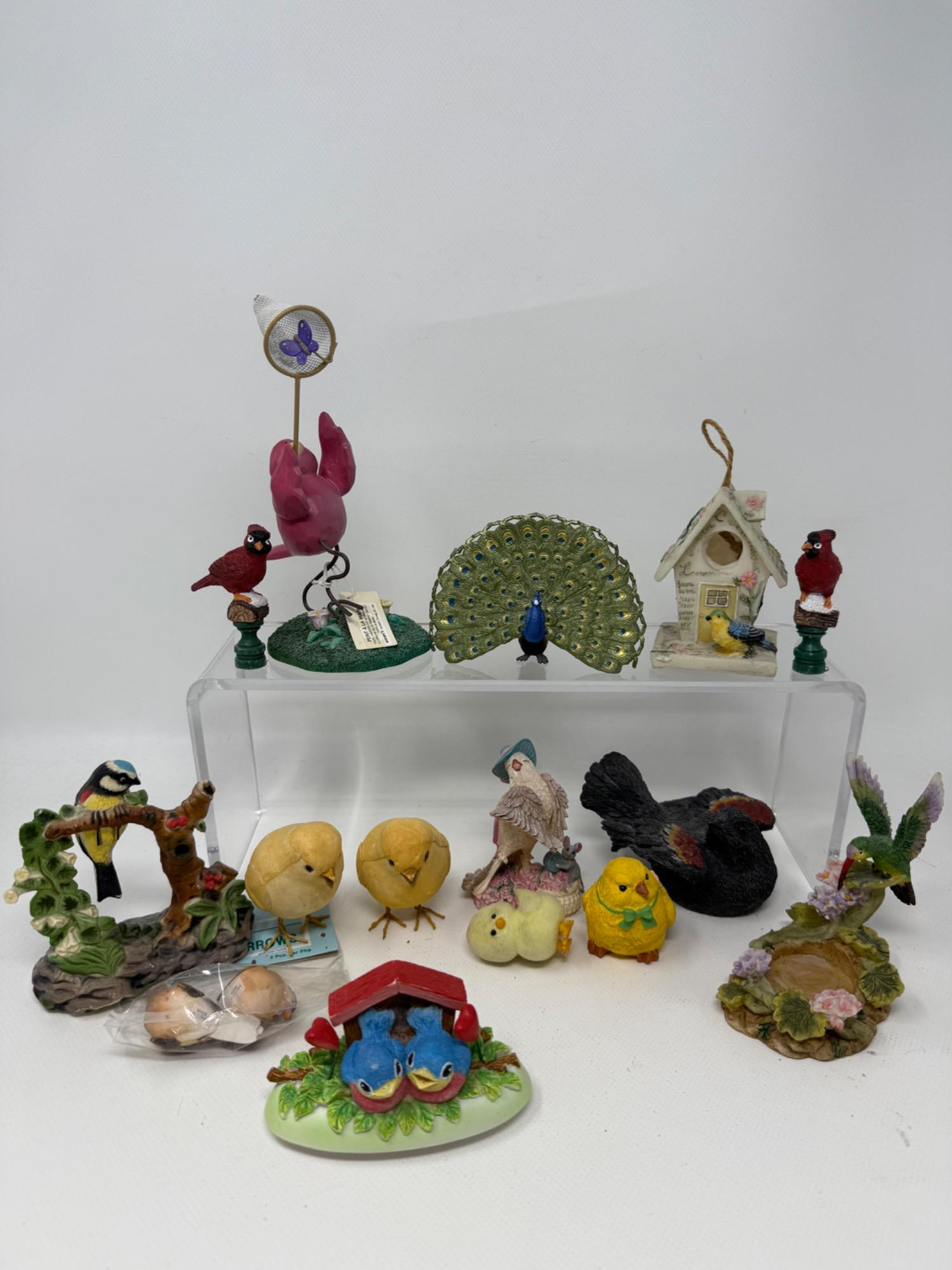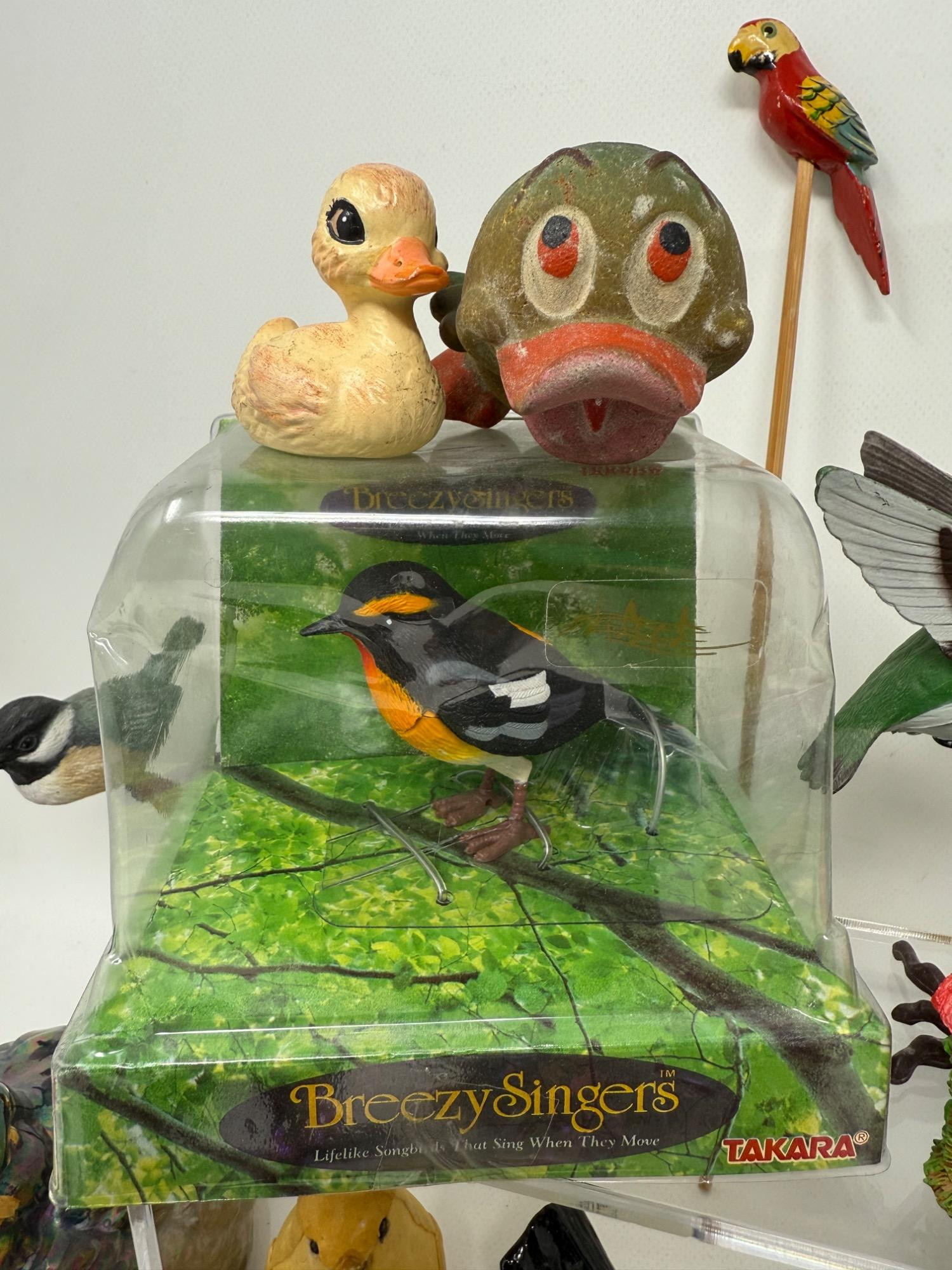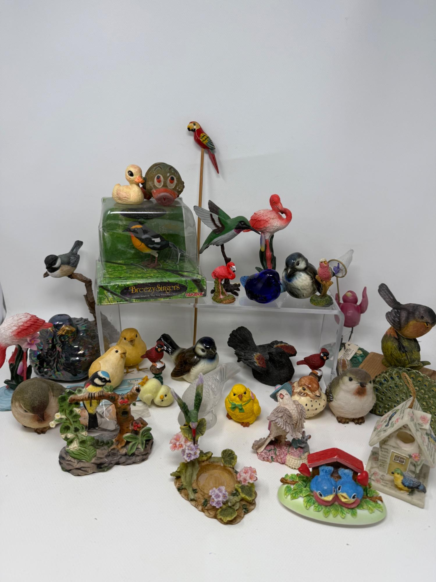 Enormous Bird Collection-Goebel and Many More Brands Glass, Ceramic, Plastic, wood and other materials. One has the look of carnival glass, frosted glass and resin. Vintage rubber duck is fragile