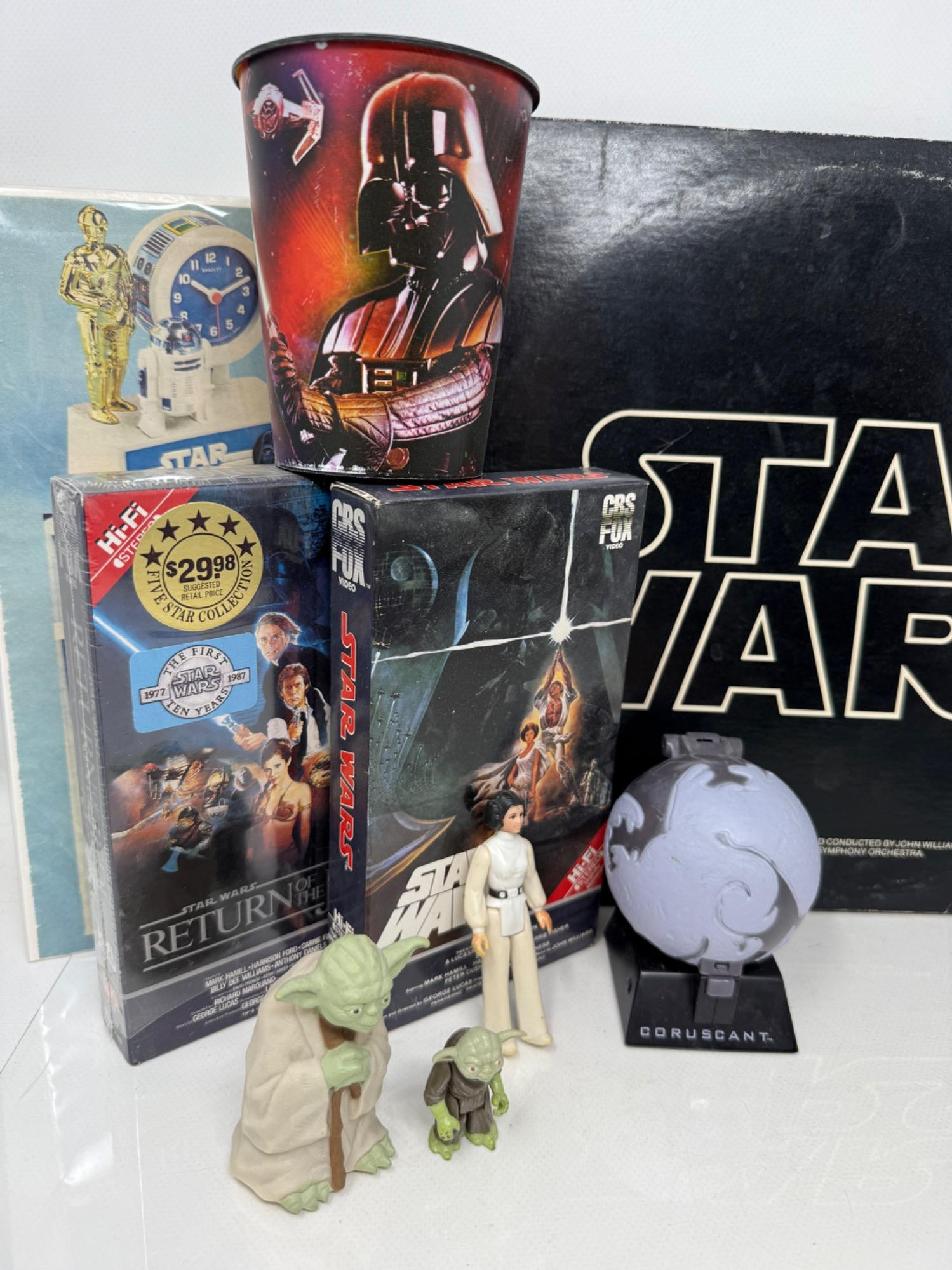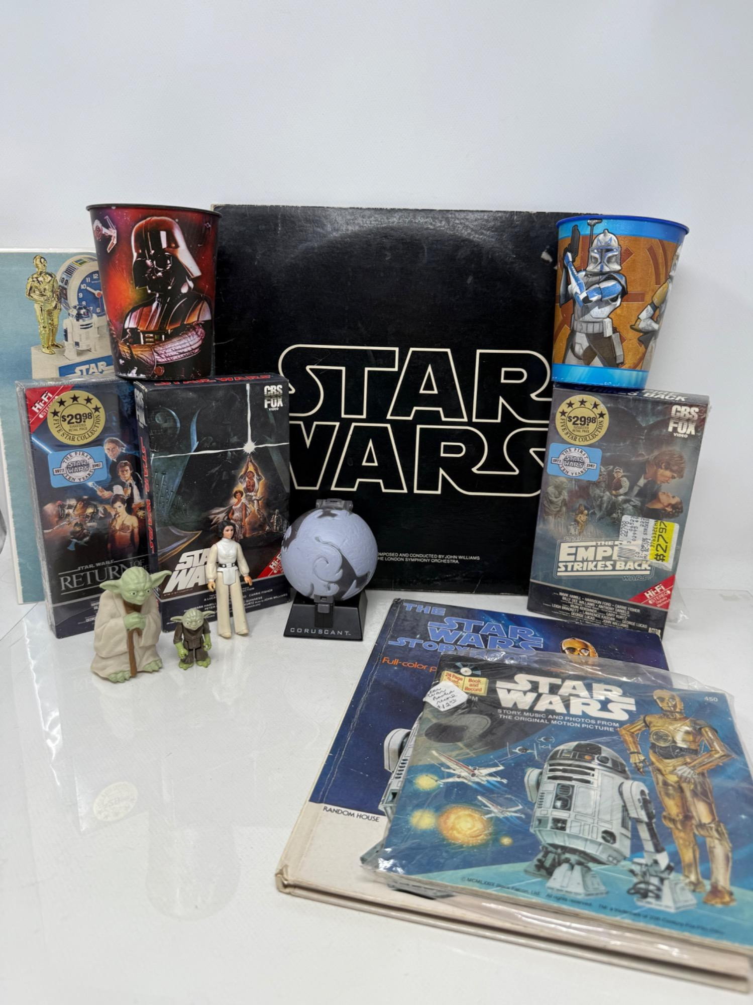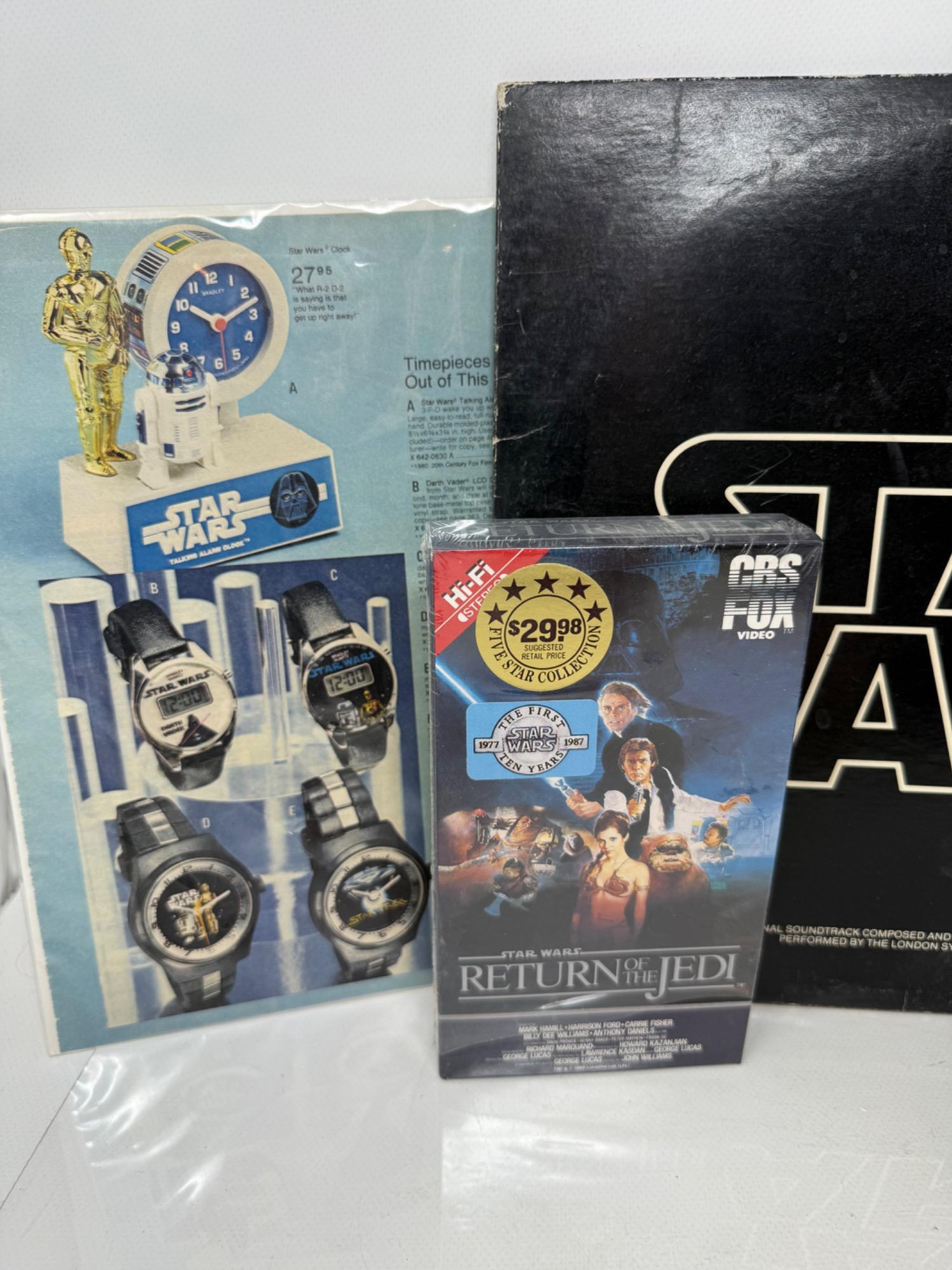 Step back in time to the era of original Star Wars collectibles. Soundtrack album, VHS, Book and collectibles.