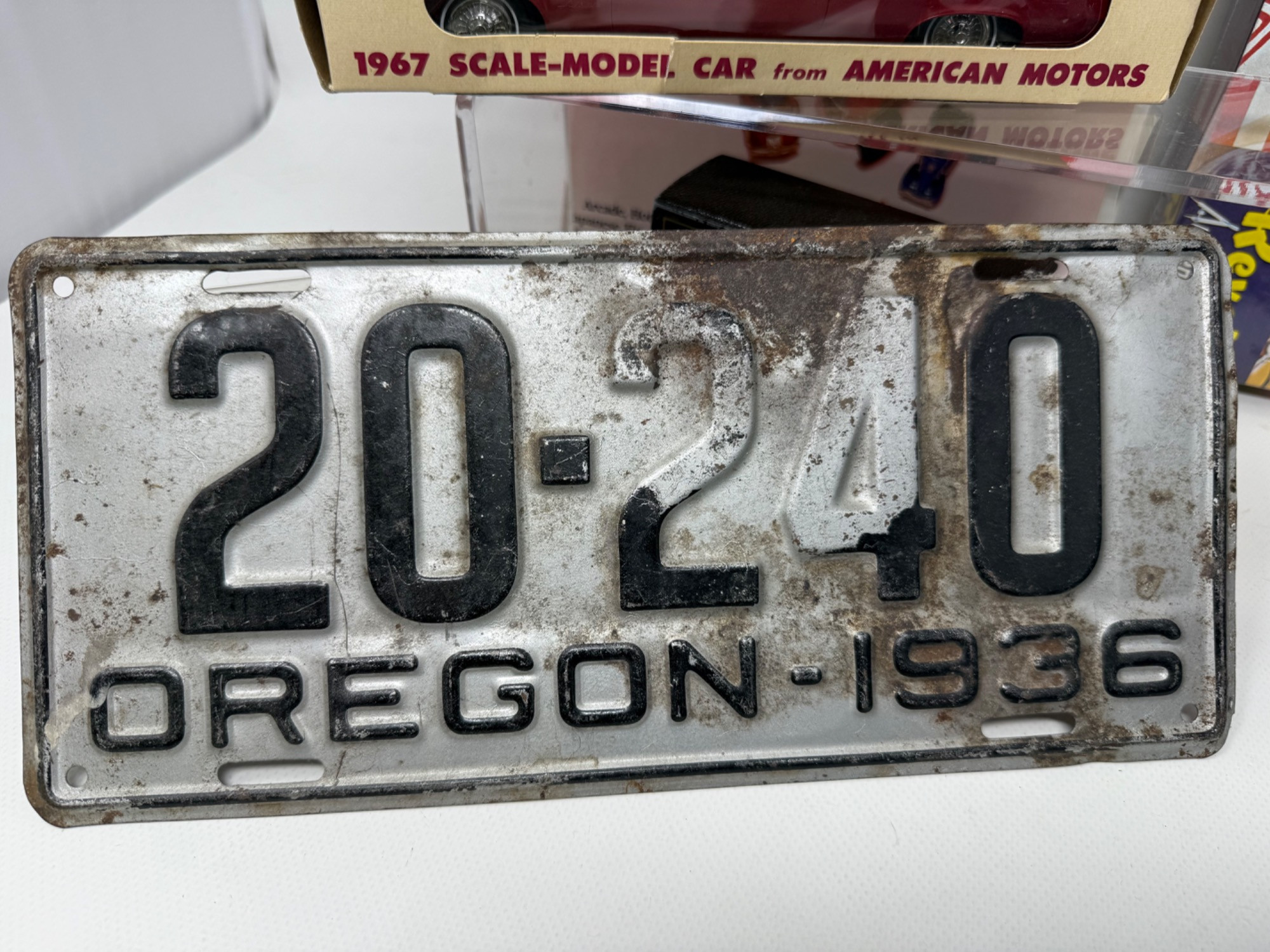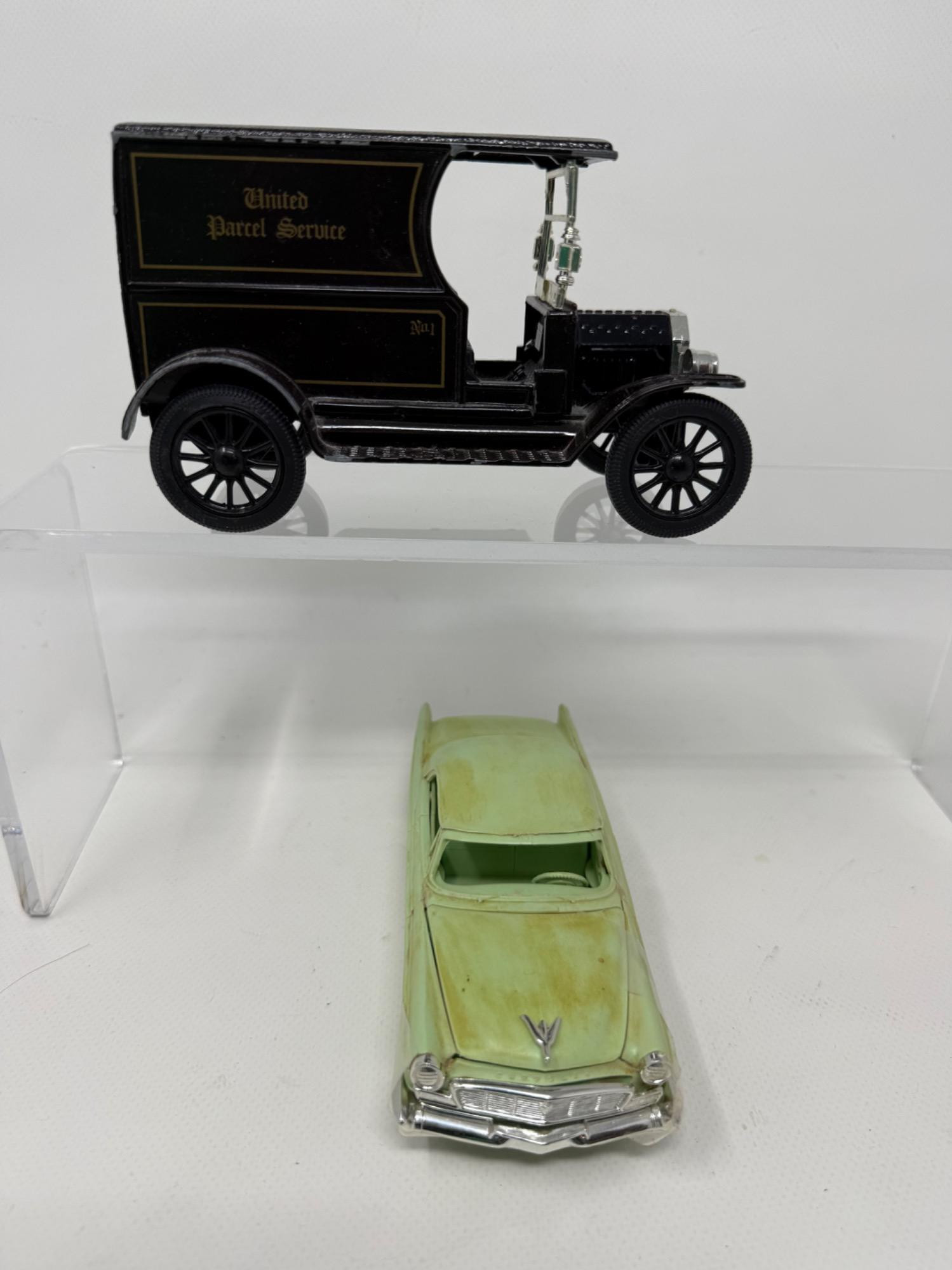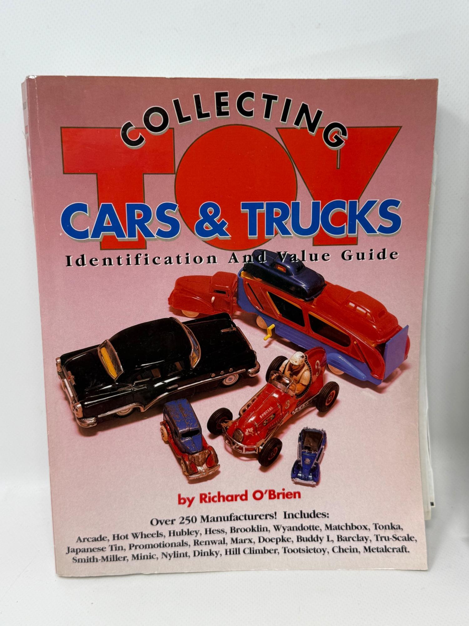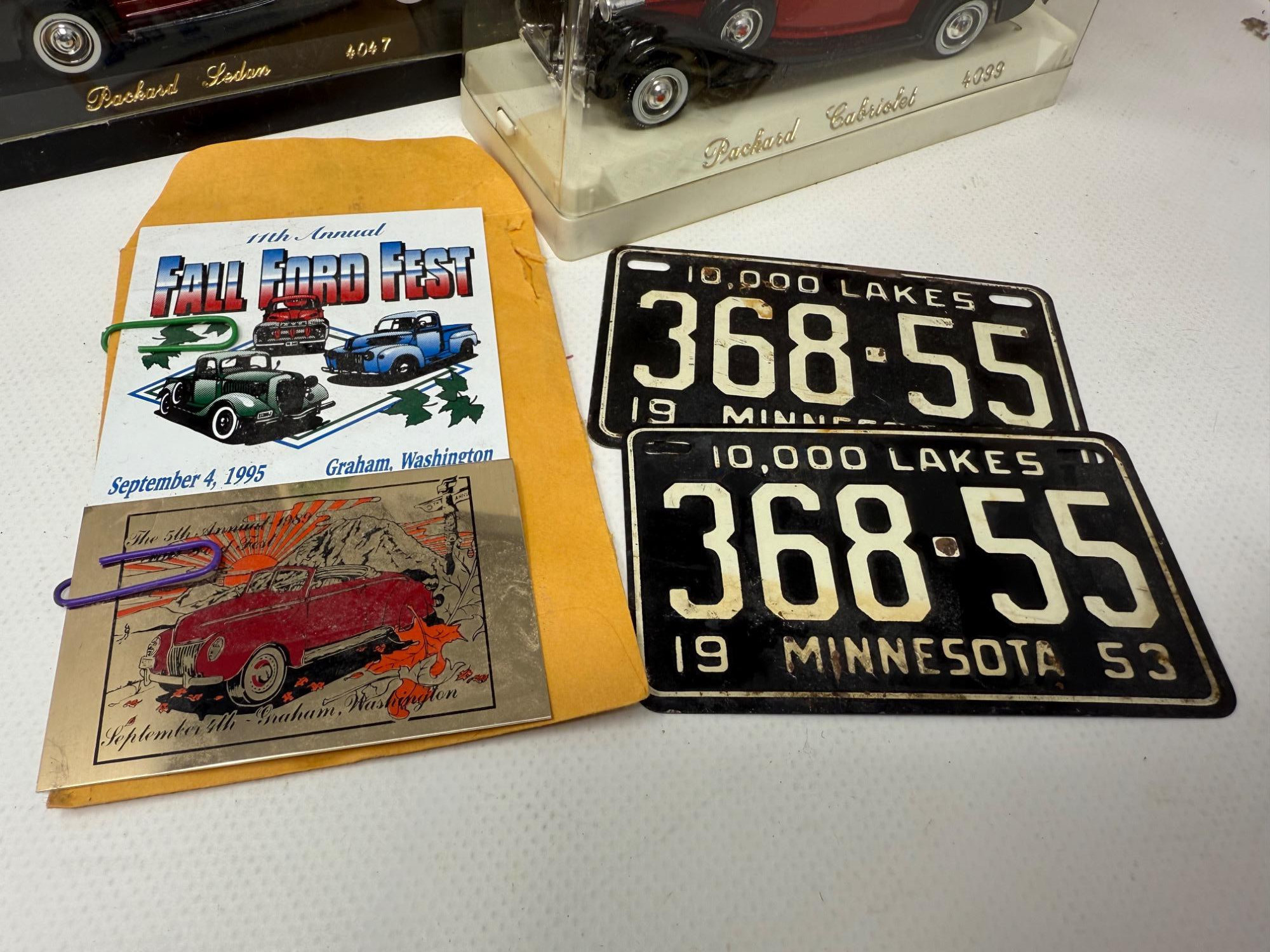Car toy collectors' catalog. Regular and Small license plates. Plastic and metal cars, kits. Vintage tool box and MG pedal.