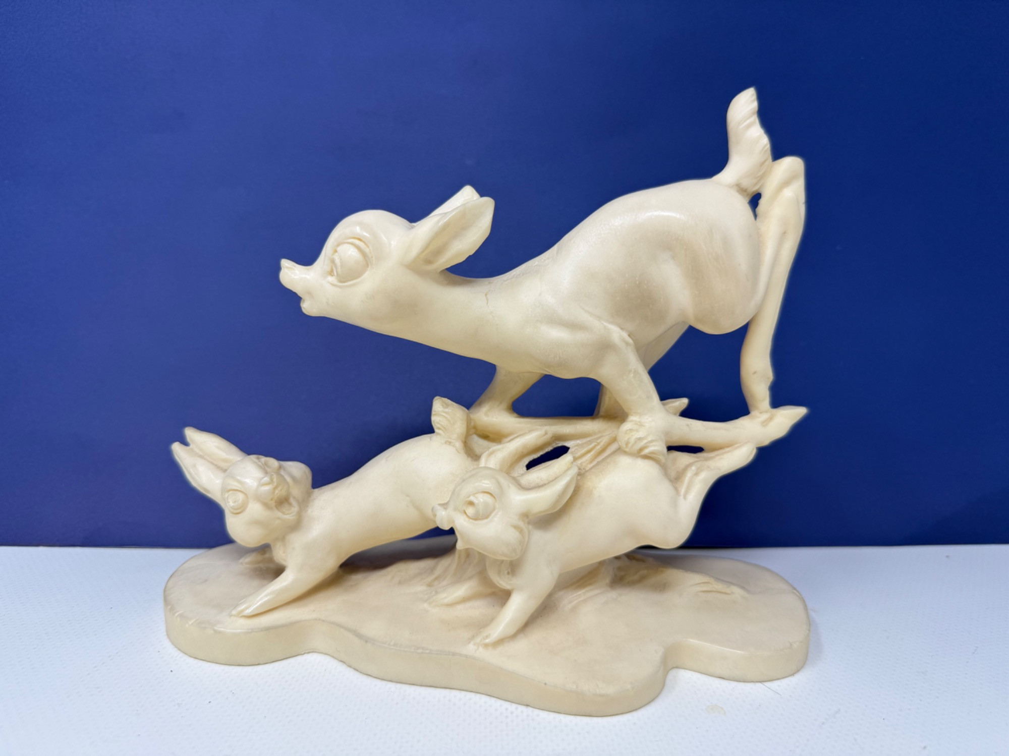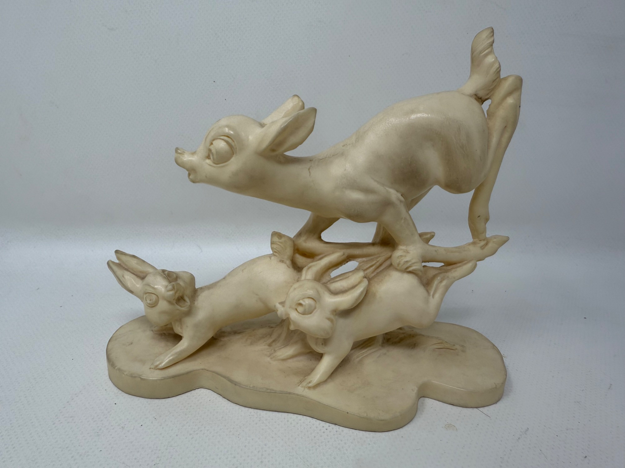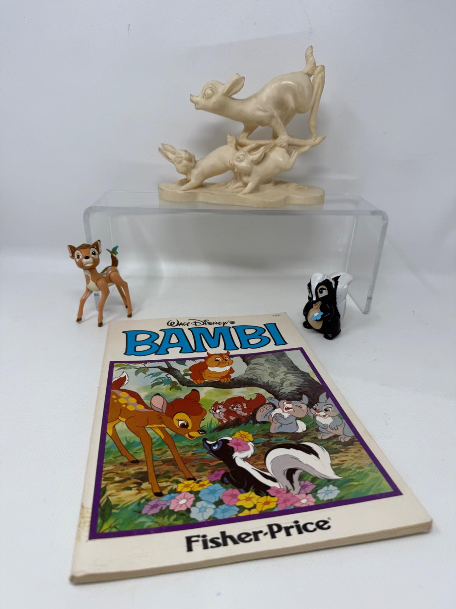 Vintage Bambi items. Books, small toys. Carved composite material of Bambi and friends. Artist is A. Santini
