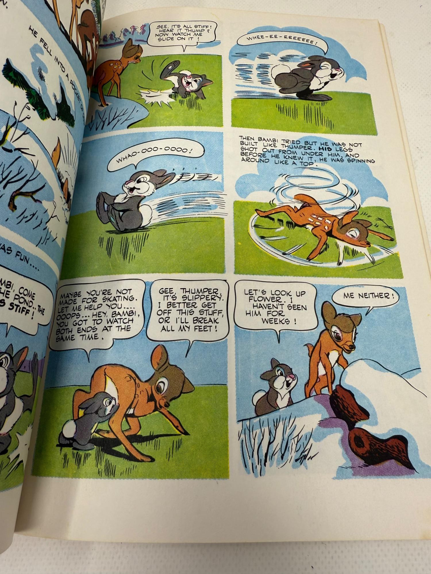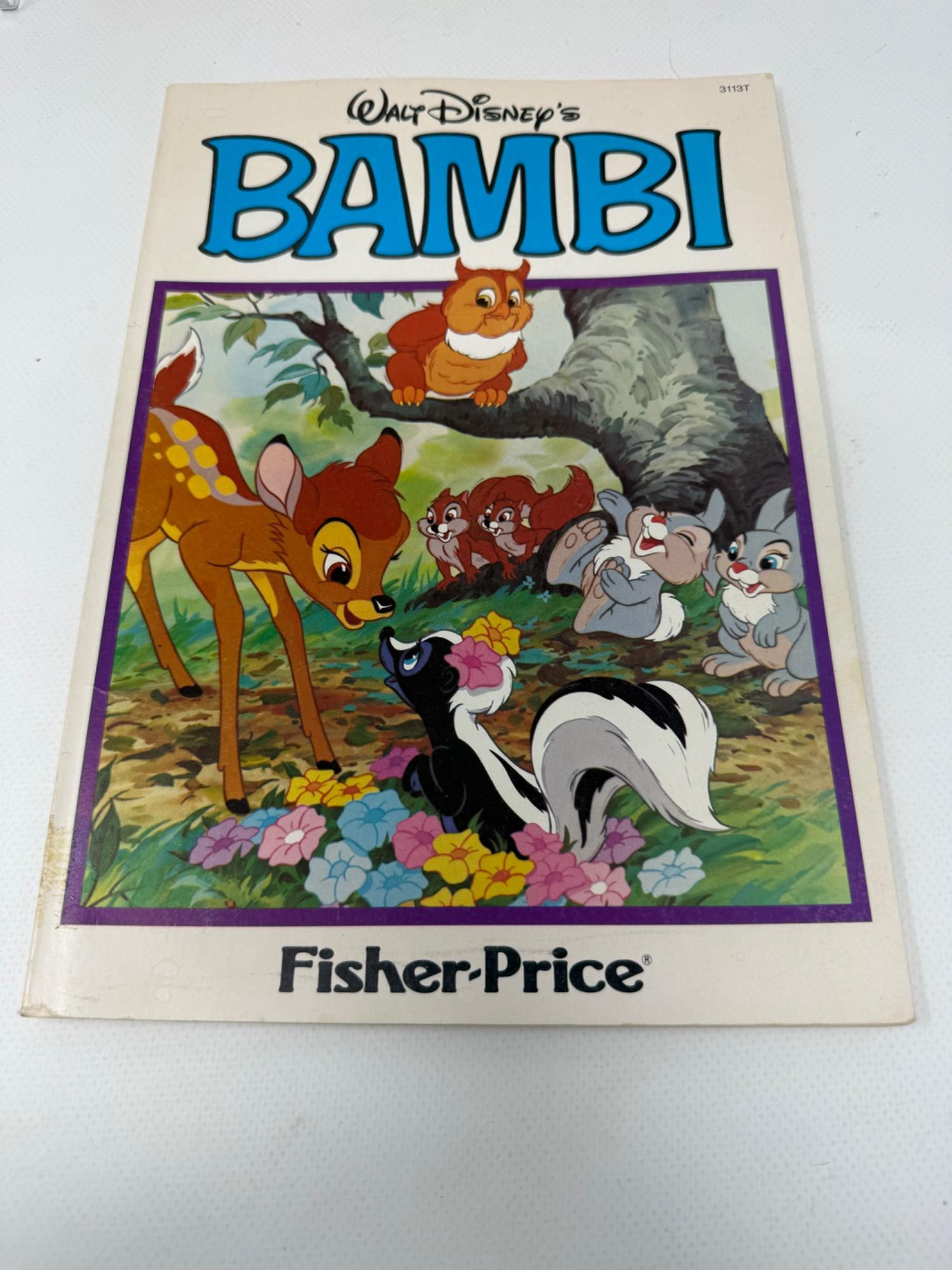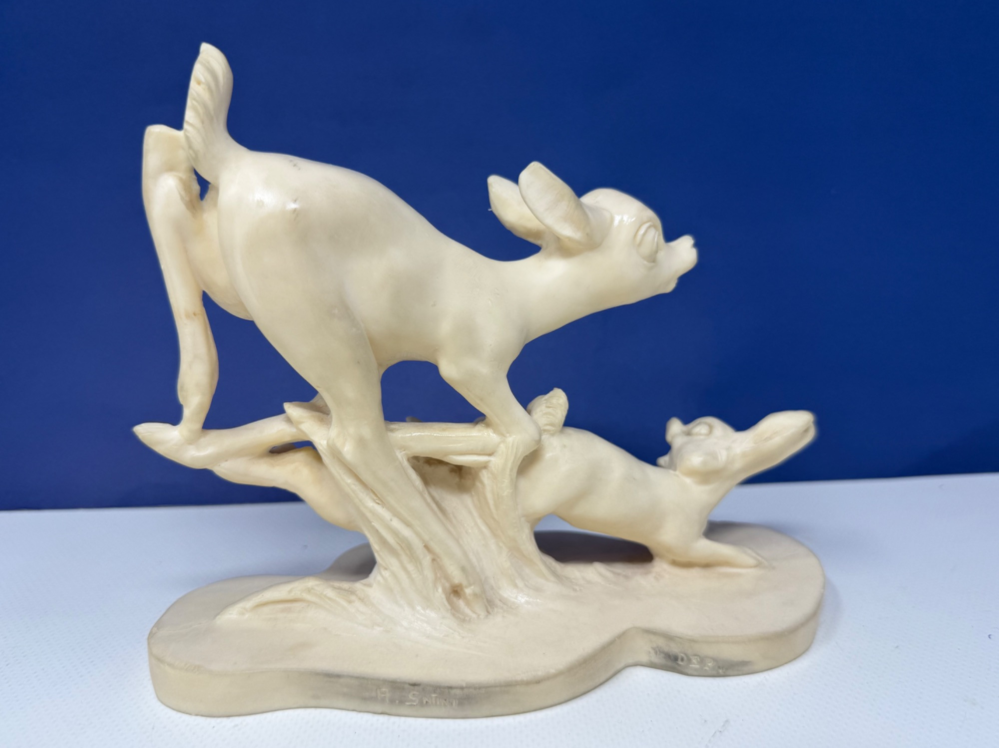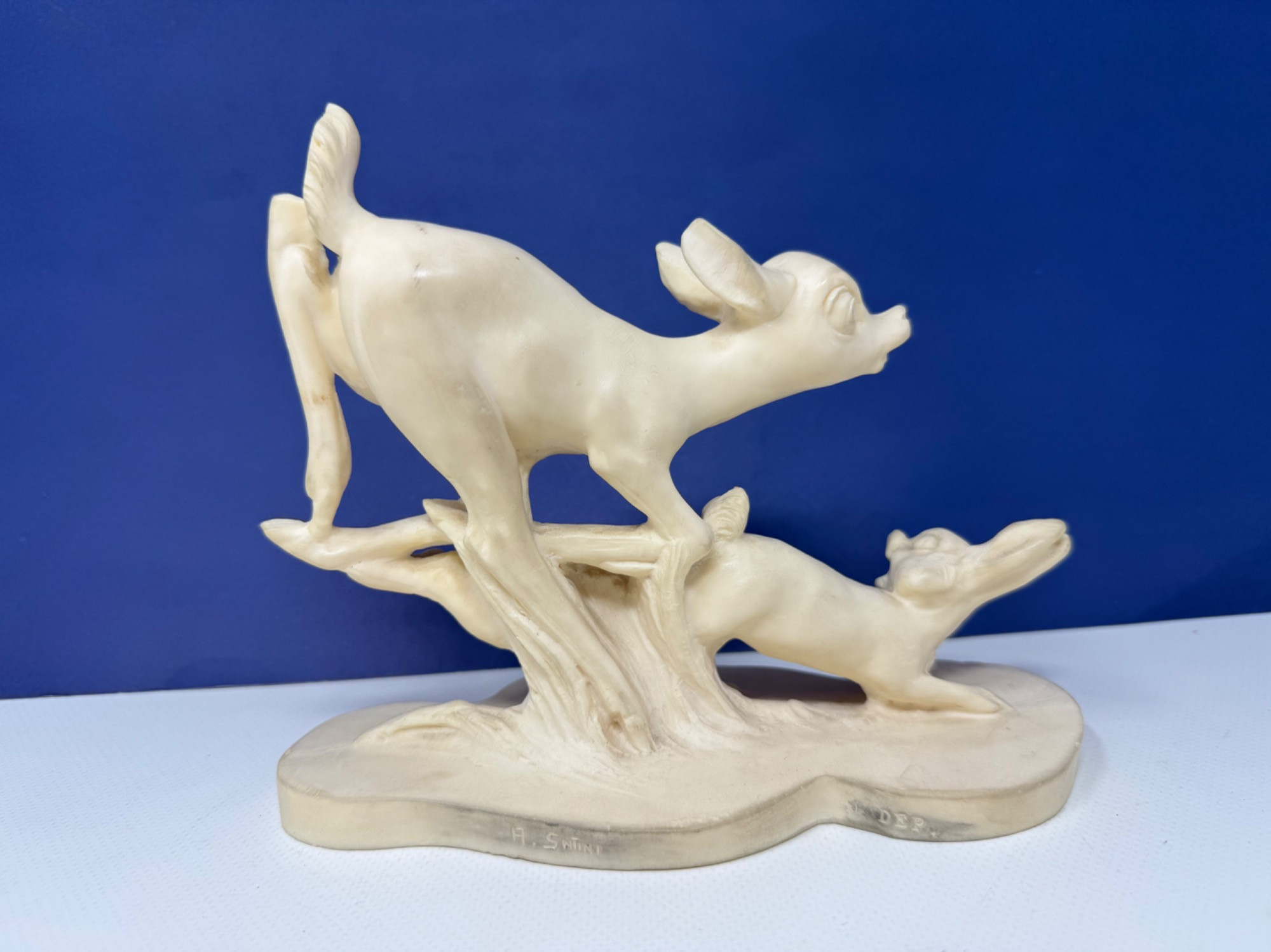 Vintage Bambi items. Books, small toys. Carved composite material of Bambi and friends. Artist is A. Santini