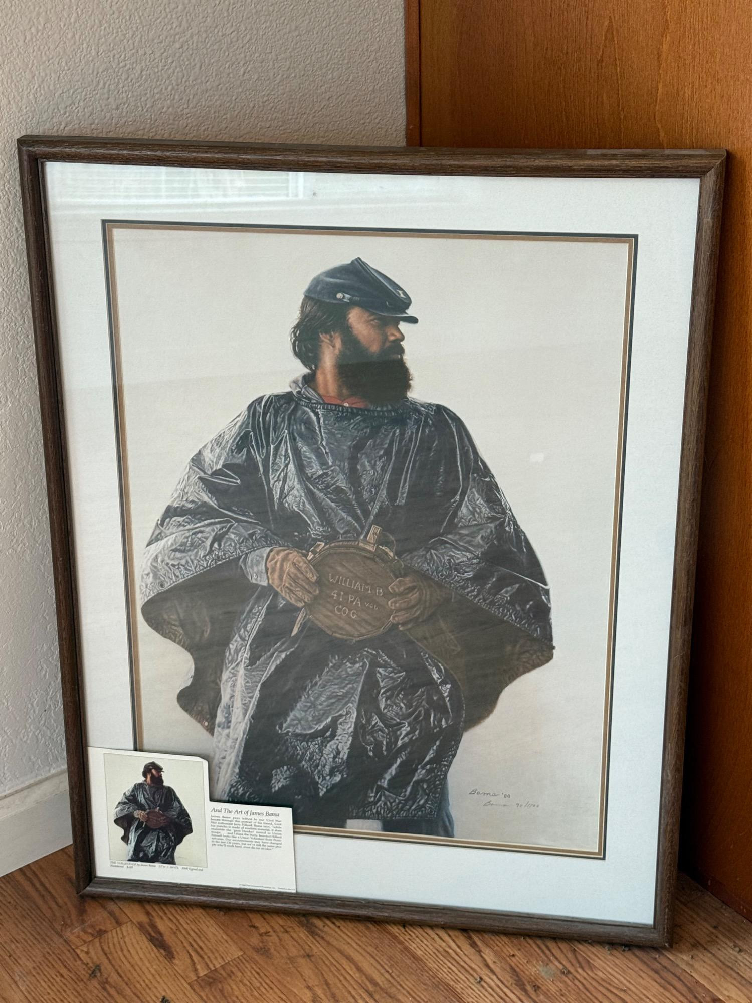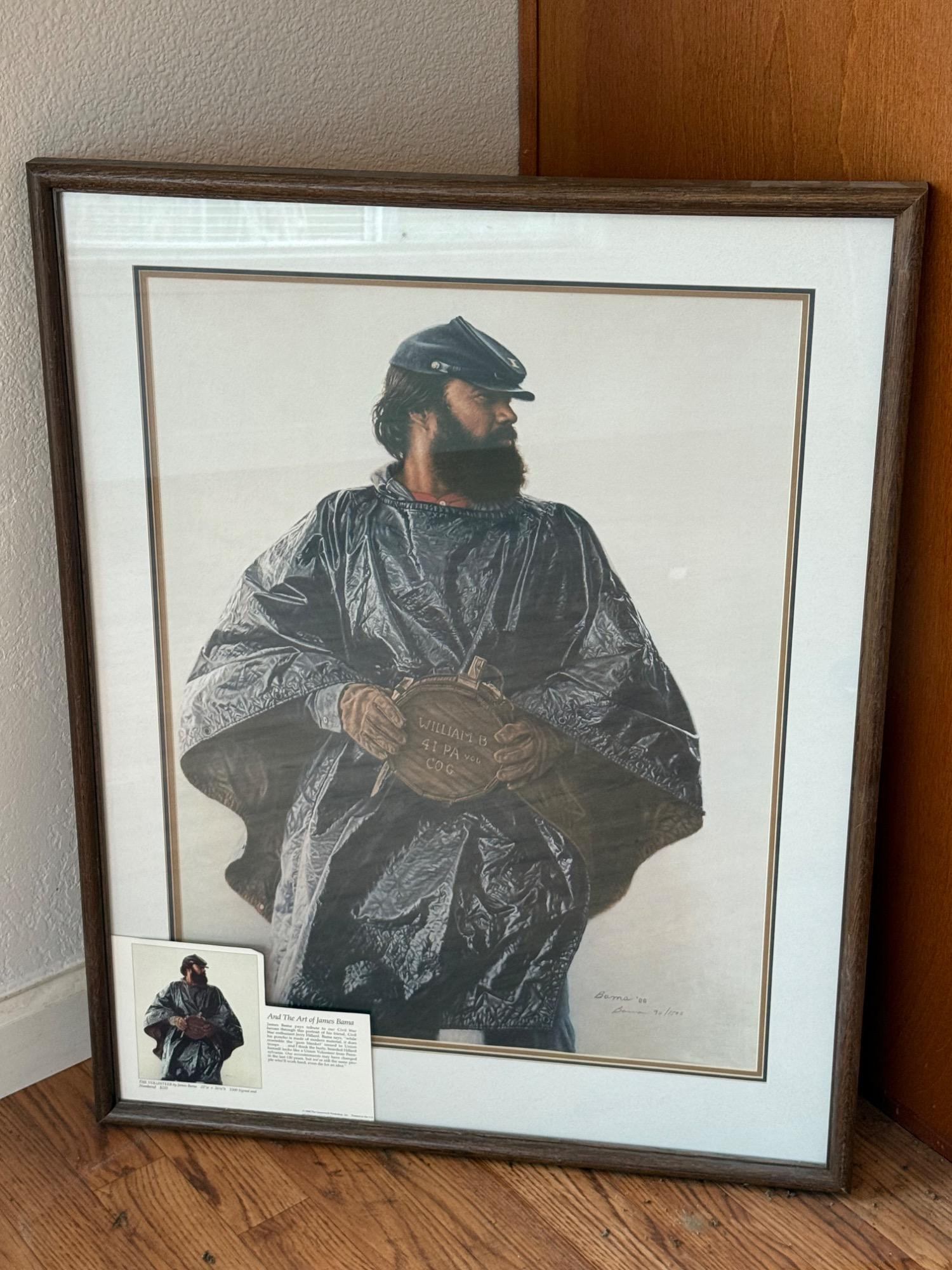 Signed and numbered print by James Bama Numbered 90/1500 Nicely framed and matted. "The Volunteer" 23in Long, 29.5in Tall
