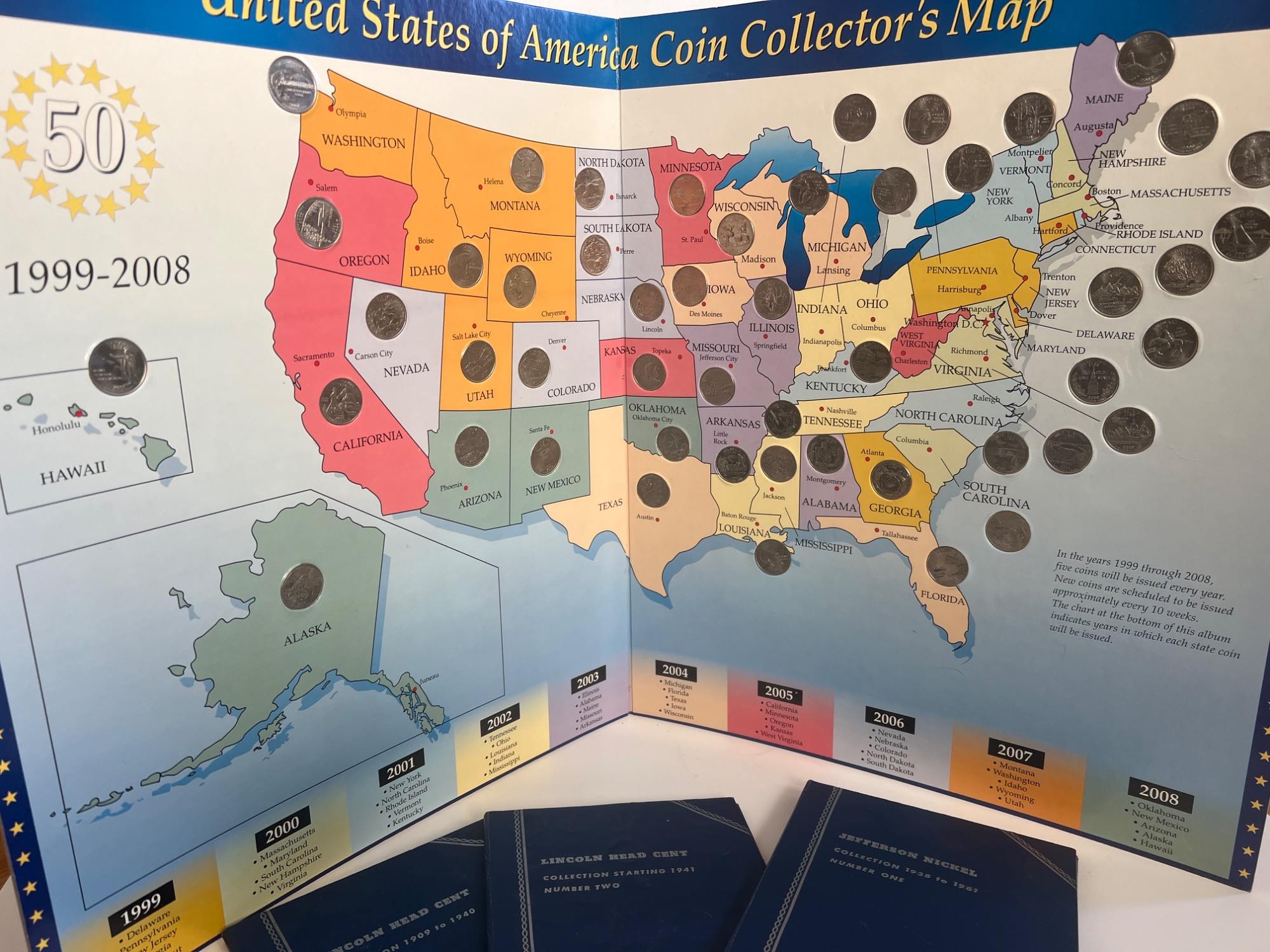 Lot # 17 - 50 States Jumbo Quarter Map & Penny Nickel Books