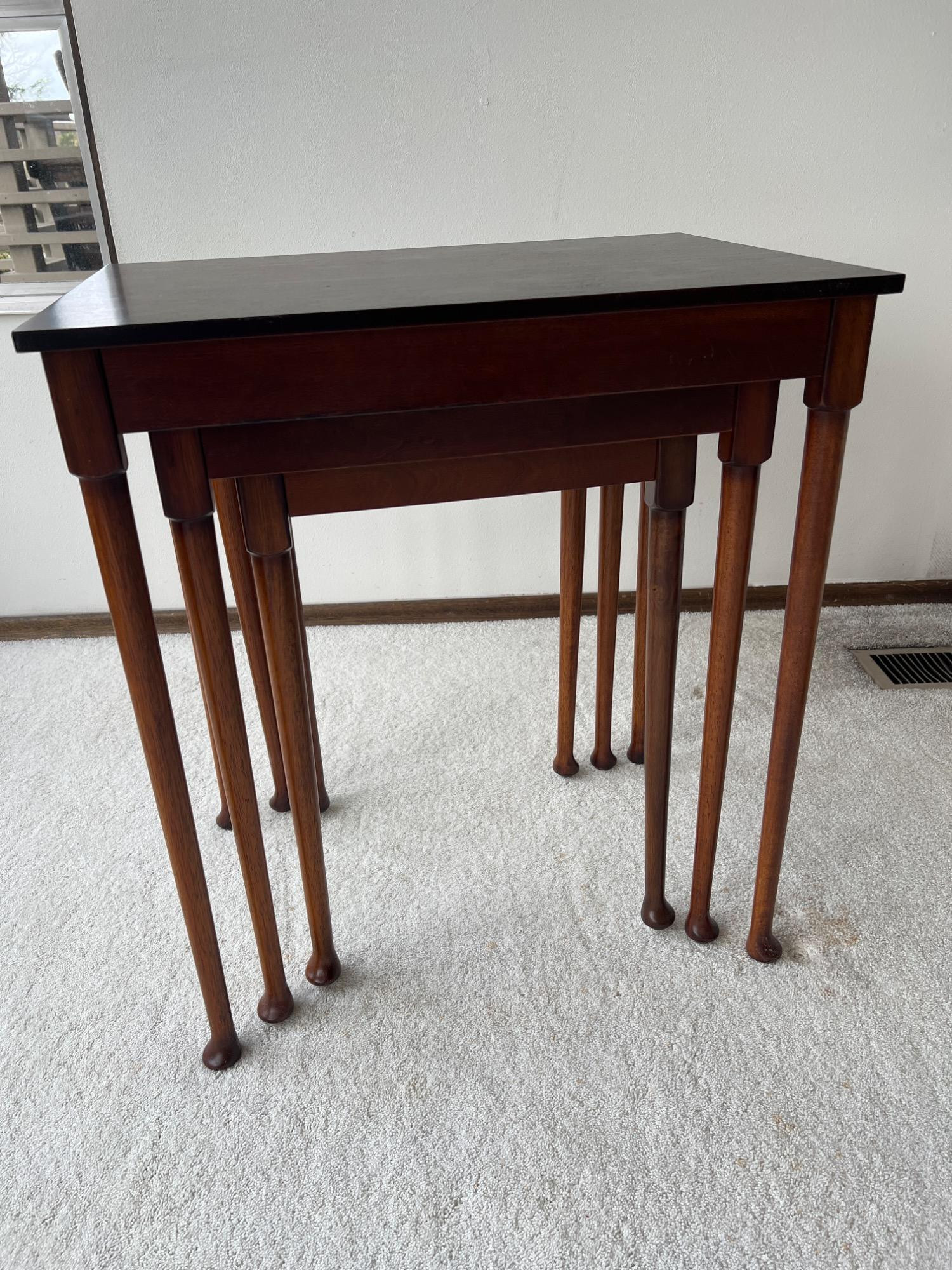 Three vintage tables that can be used separately or "nested" to conserve space. Dated 1998.