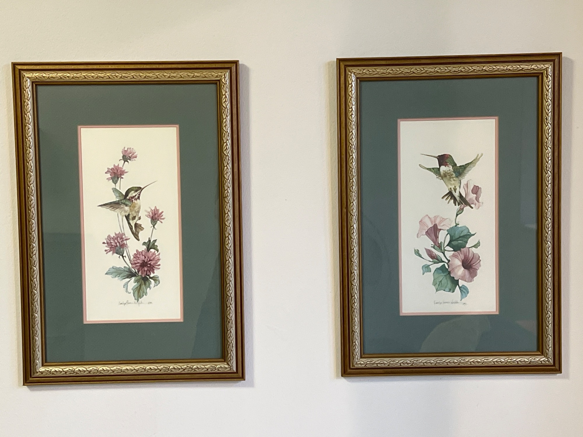 Pair of Carolyn Shores Write 1992 prints (hummingbirds). Highly collectible.