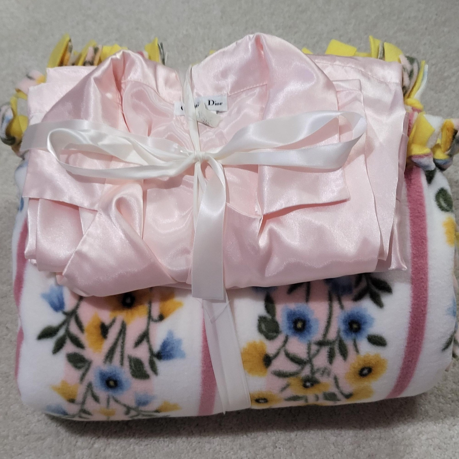 Lot # 158 - Christian Dior Satin Pajamas & Fleece Throw