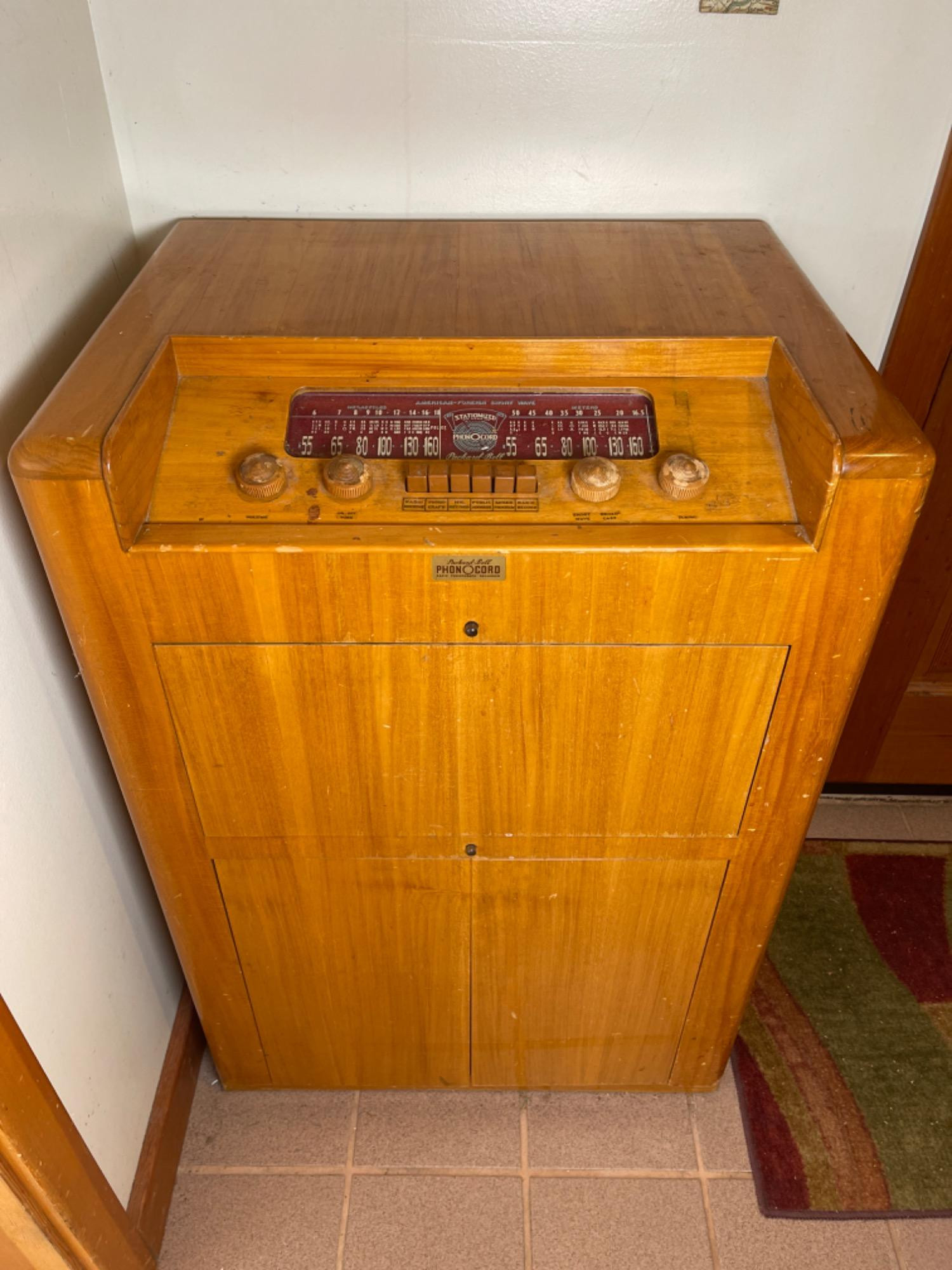 Vintage Packard Bell Phonocord – Radio, Phonograph & Recorder Console A rare Packard Bell Phonocord vintage radio, phonograph, and recorder console, beautifully housed in a mid-century wooden cabinet. This collectible piece was designed for radio playback, phonograph recordings, and even public address functions, making it a unique and versatile piece of audio history. All pieces UNTESTED. Bidding on this lot is an agreement that: (1.) You will have 2 capable, able-bodied persons to lift and load at a minimum. (2.) You will bring a hand truck and/or any other tools needed to remove this item. If these steps are not followed your item will be forfeited and no refund given.