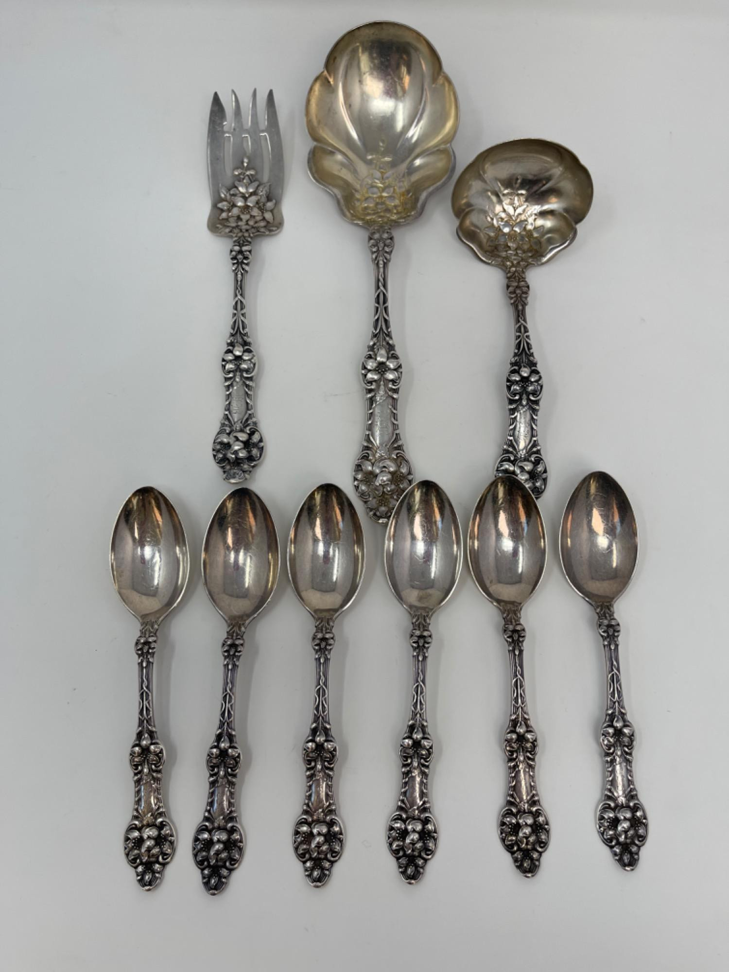 Lot # 17 - Antique Art Nouveau Sterling Silver Flatware – Lily Pattern - 403g