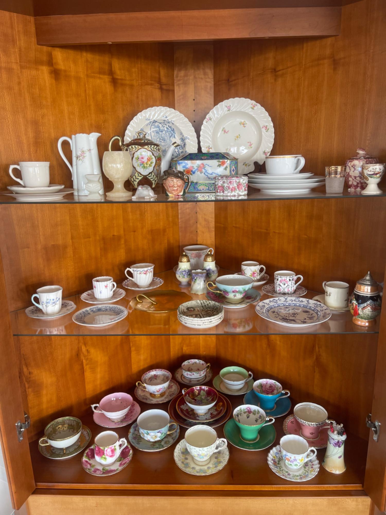 Assorted Vintage China & Trinkets – Elegant Collectible Lot This assorted collection of vintage china and decorative trinkets features a variety of delicate teacups, saucers, plates, pitchers, and ornate keepsake boxes, showcasing timeless craftsmanship and elegant designs. Many pieces include floral patterns, gilded edges, and intricate detailing, making them perfect for collectors or vintage decor enthusiasts. Not all pieces have been examined individually, so some cracks and chips may be present.