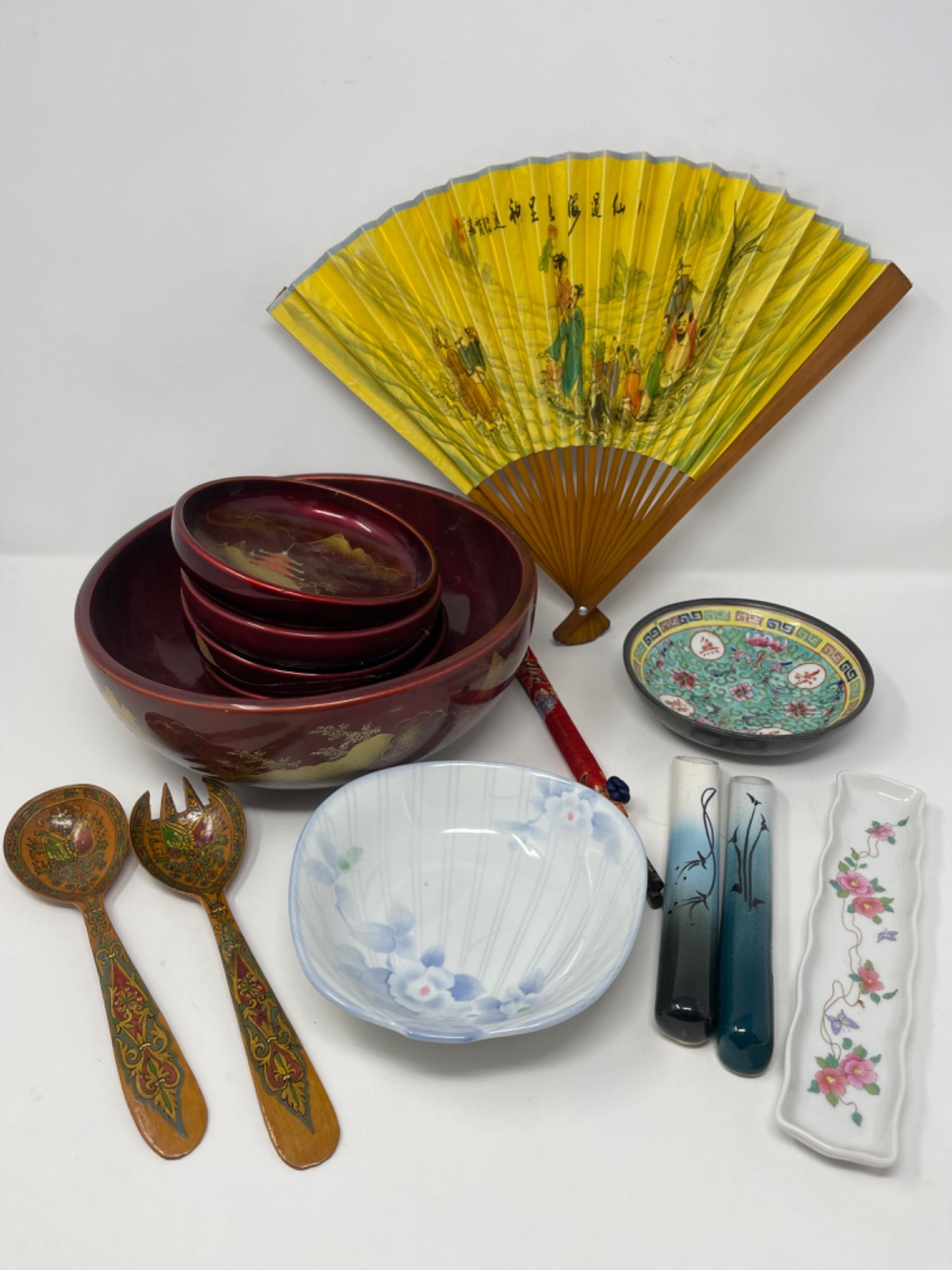 Lot # 94 - Asian-Inspired Assorted Items – Fans, Bowls & More