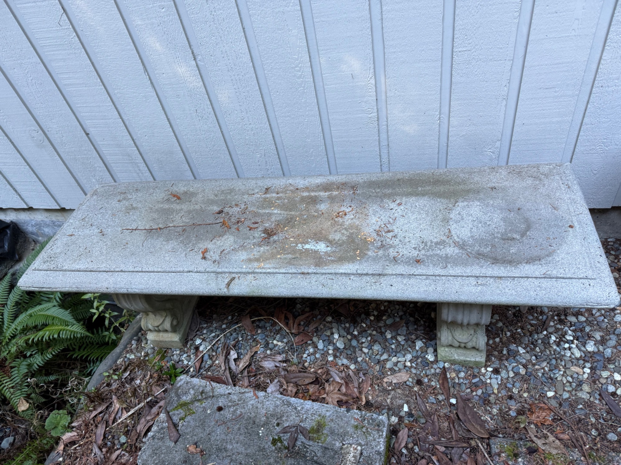 #1 Ornate Cement Garden Bench. This classic ornate cement garden bench is a beautiful and durable addition to any garden, patio, or outdoor space. Measuring 17 inches high, 59 inches wide, and 18 inches deep, this bench features decorative scrollwork legs and a solid stone slab seat, offering both style and stability. Crafted from heavy-duty cement, this bench is designed to withstand outdoor elements while maintaining its elegant, antique charm. The weathered patina and mossy accents add to its timeless aesthetic, making it a perfect statement piece for a landscaped setting or peaceful garden retreat. Bidding on this lot is an agreement that: (1.) You will have 2 capable, able-bodied persons to lift and load at a minimum. (2.) You will bring a hand truck and/or any other tools needed to remove this item. If these steps are not followed your item will be forfeited and no refund given.