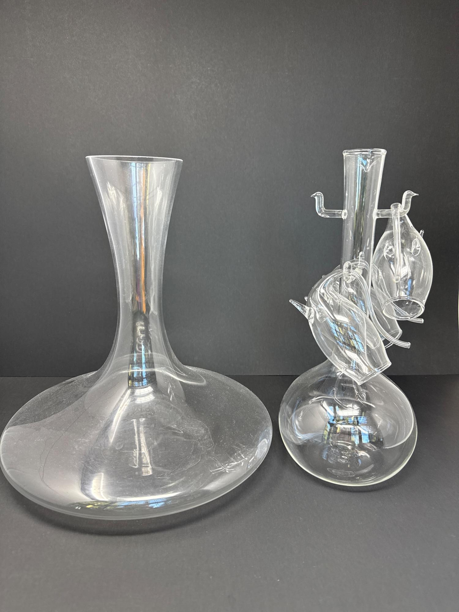 Lot # 31 - Two Mid-Century Modern (MCM) Glass Decanters – One with Hanging Cups