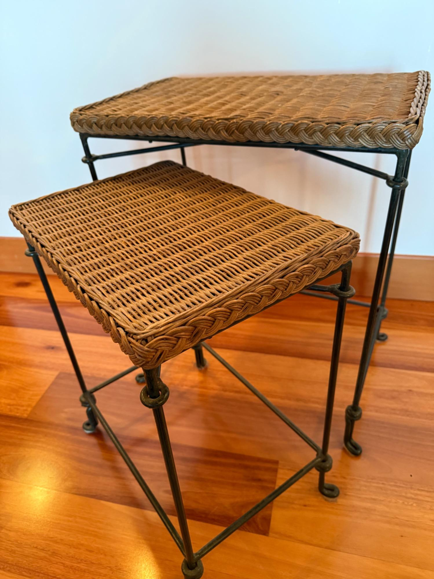 Lot # 46 - Set of Two Wicker Nesting Tables – Metal Frame