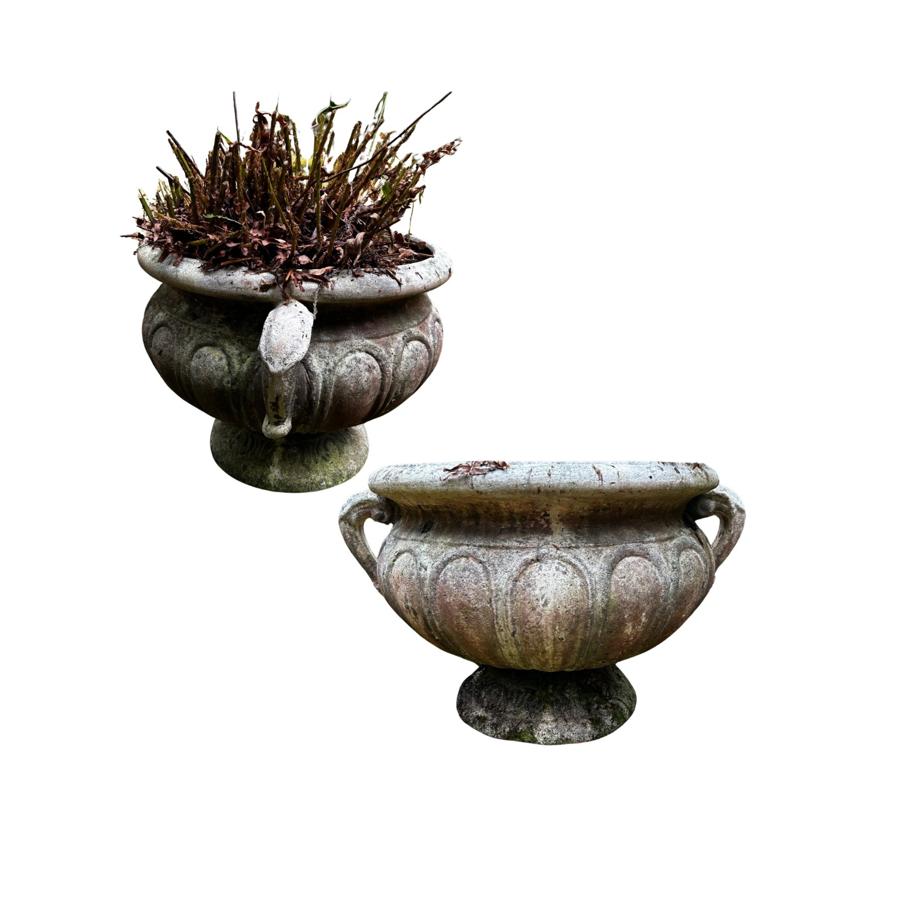 Lot # 72 - Pair of Aged Cement Urns with Ferns