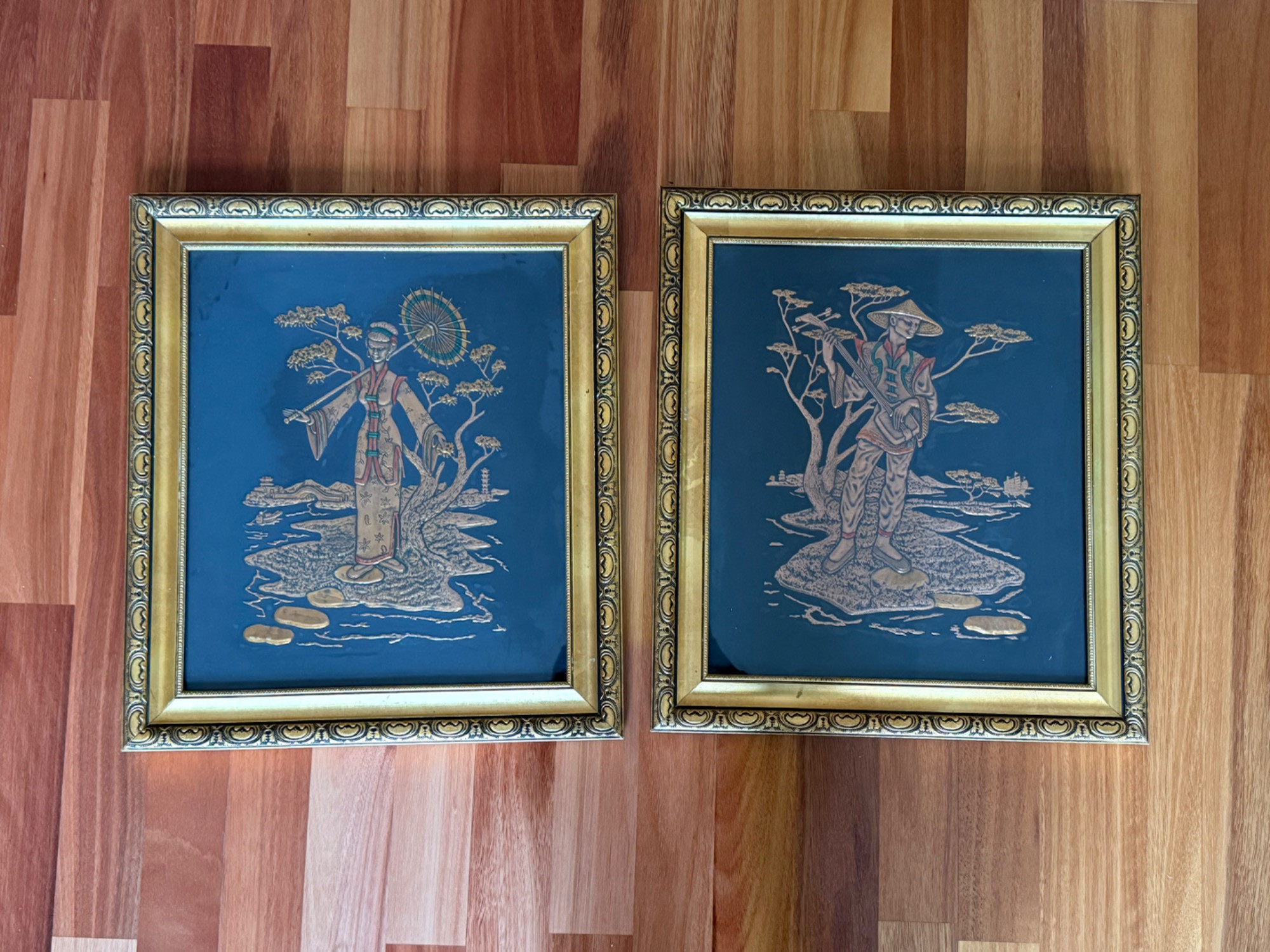 Lot # 119 - Vintage Redloy Metal Art – Framed Asian-Inspired Artwork (Set of 2)