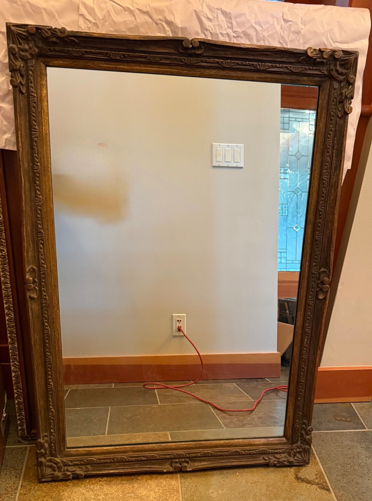 Vintage Ornate Framed Mirror – 24” x 36” – Made in Korea. This stunning vintage mirror features an intricately carved ornate frame with beautiful detailing, adding an elegant touch to any space. Measuring 24” x 36”, this piece was made in Korea (Model No. SM 310) and showcases a timeless antique-style finish. Perfect for a statement wall, entryway, or vanity area, this mirror offers a classic design with vintage character.