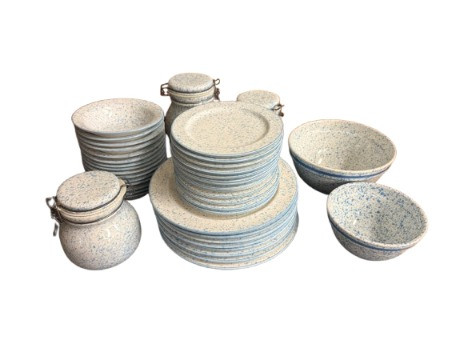 Lot # 227 - Vintage Mervyn's Stoneware - Full Dinnerware Set, Blue Splatter Design