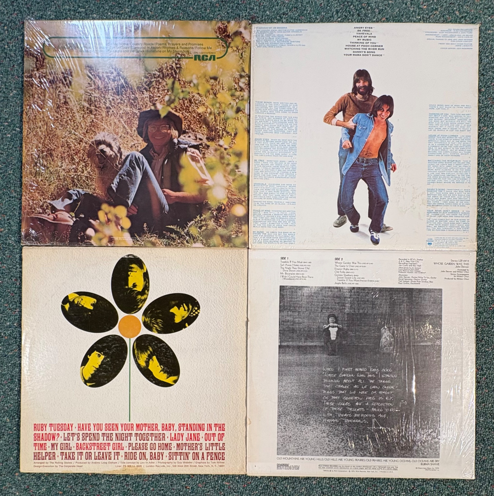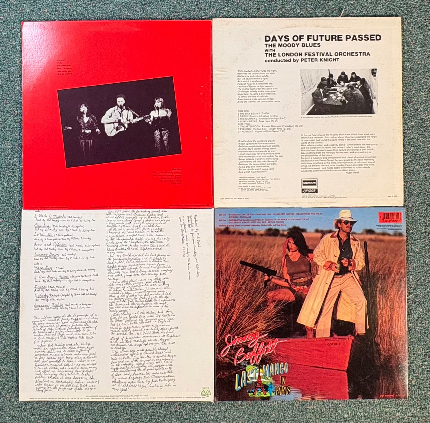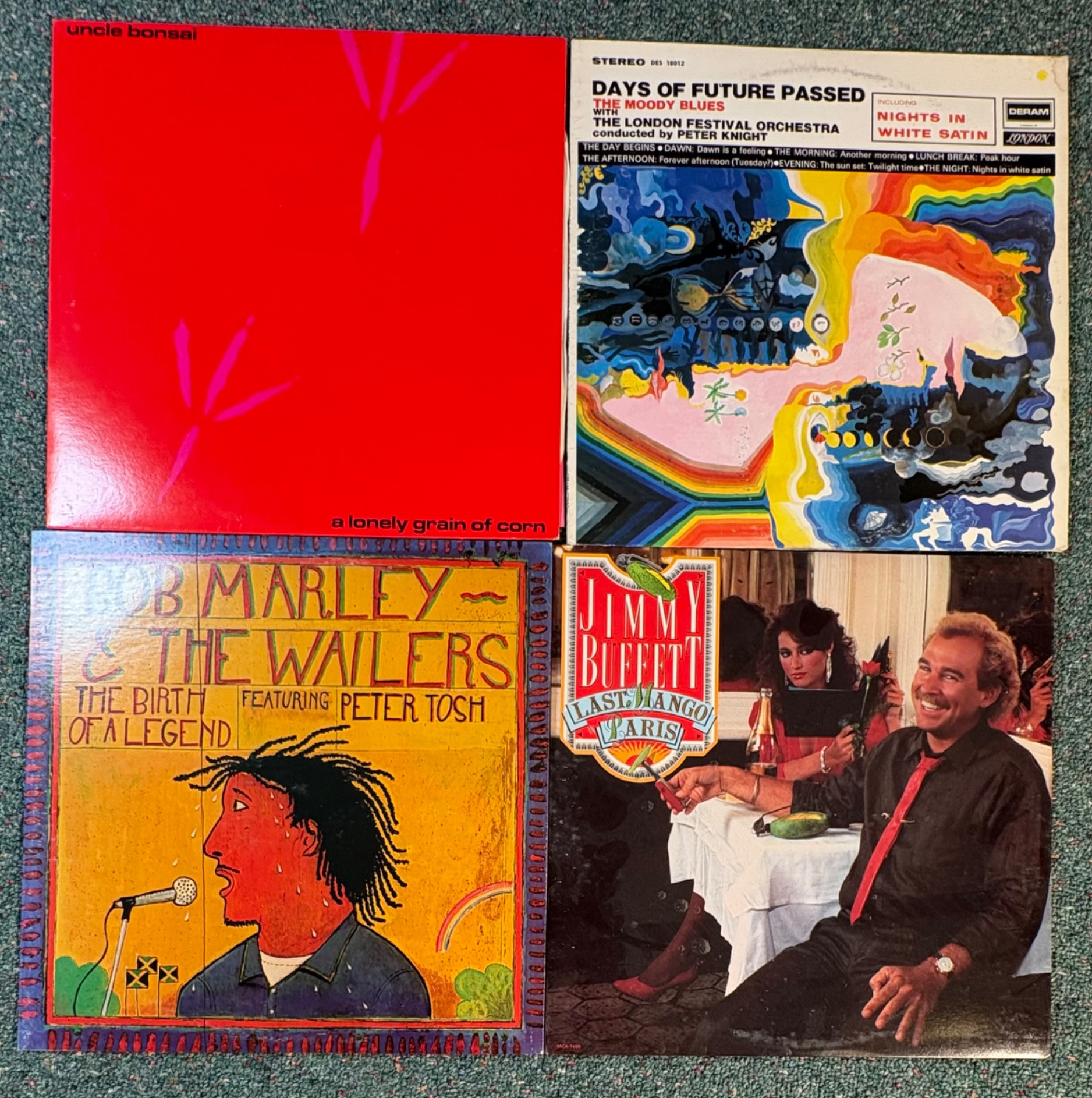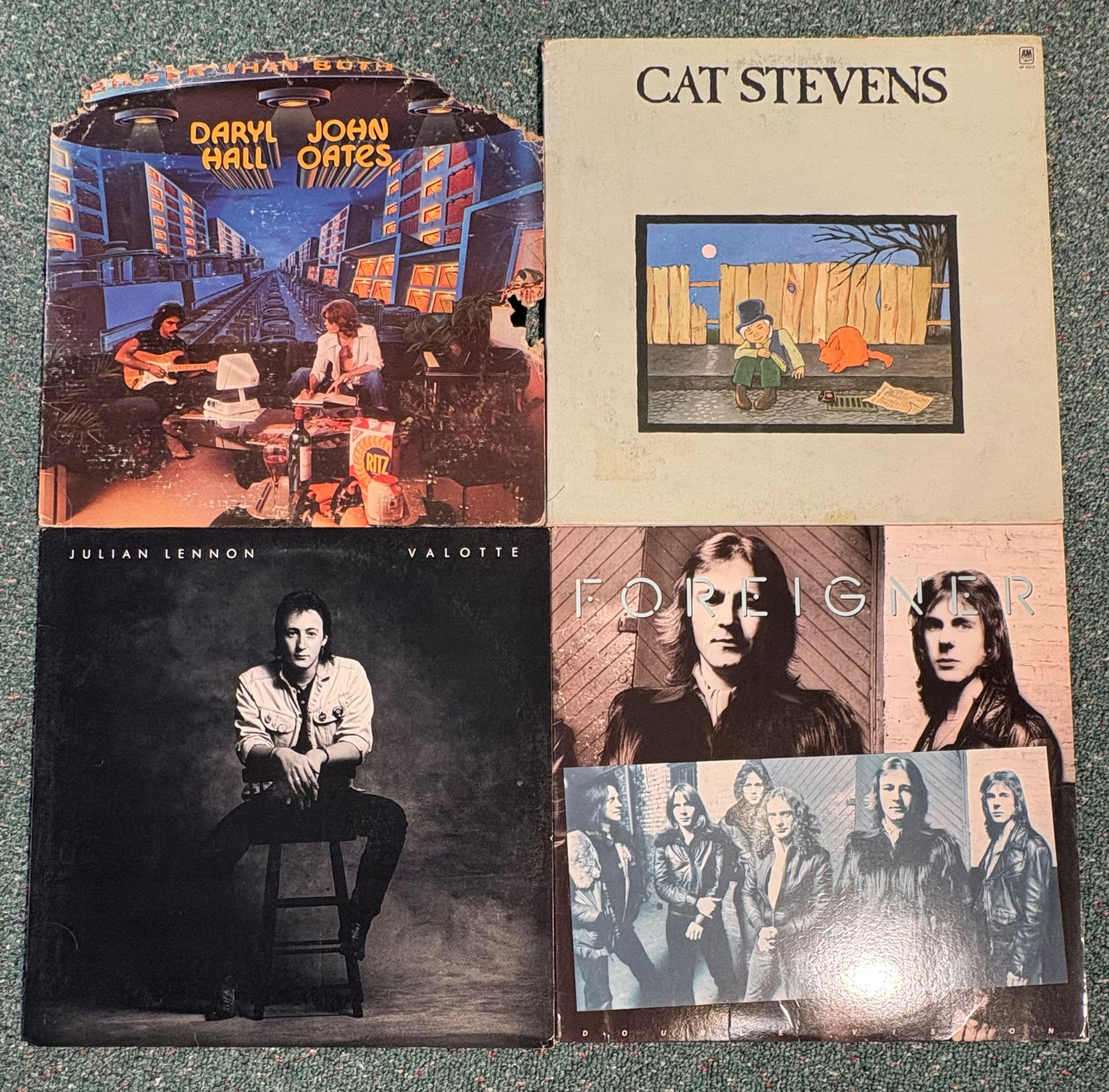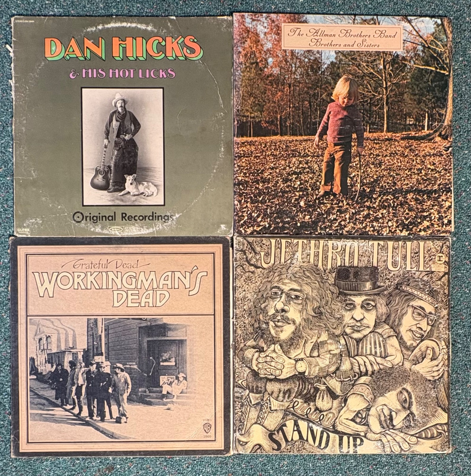 16 vintage vinyl LPs! Our client had eclectic taste and loved his albums - thus, most of these have been lovingly played over the years. We checked to make sure the correct album was in the correct cover and did a cursory glance for any egregious scratches. Some covers reflect heavy use and are worn/split in places/have names written on them. However, the majority are in good used shape. Artists/Bands in this lot include: John Denver (2 albums) Flowers Loggins & Messina Hall & Oates Julian Lennon Cat Stevens Dan Hicks & His Hot Licks Foreigner Grateful Dead The Allman Brothers Band Jimmy Buffett Moody Blues Bob Marley & The Wailers Jethro Tull Uncle Bonsai Note: Flowers inner sleeve is missing. Hall & Oates album cover is REALLY BAD - it has been torn away.