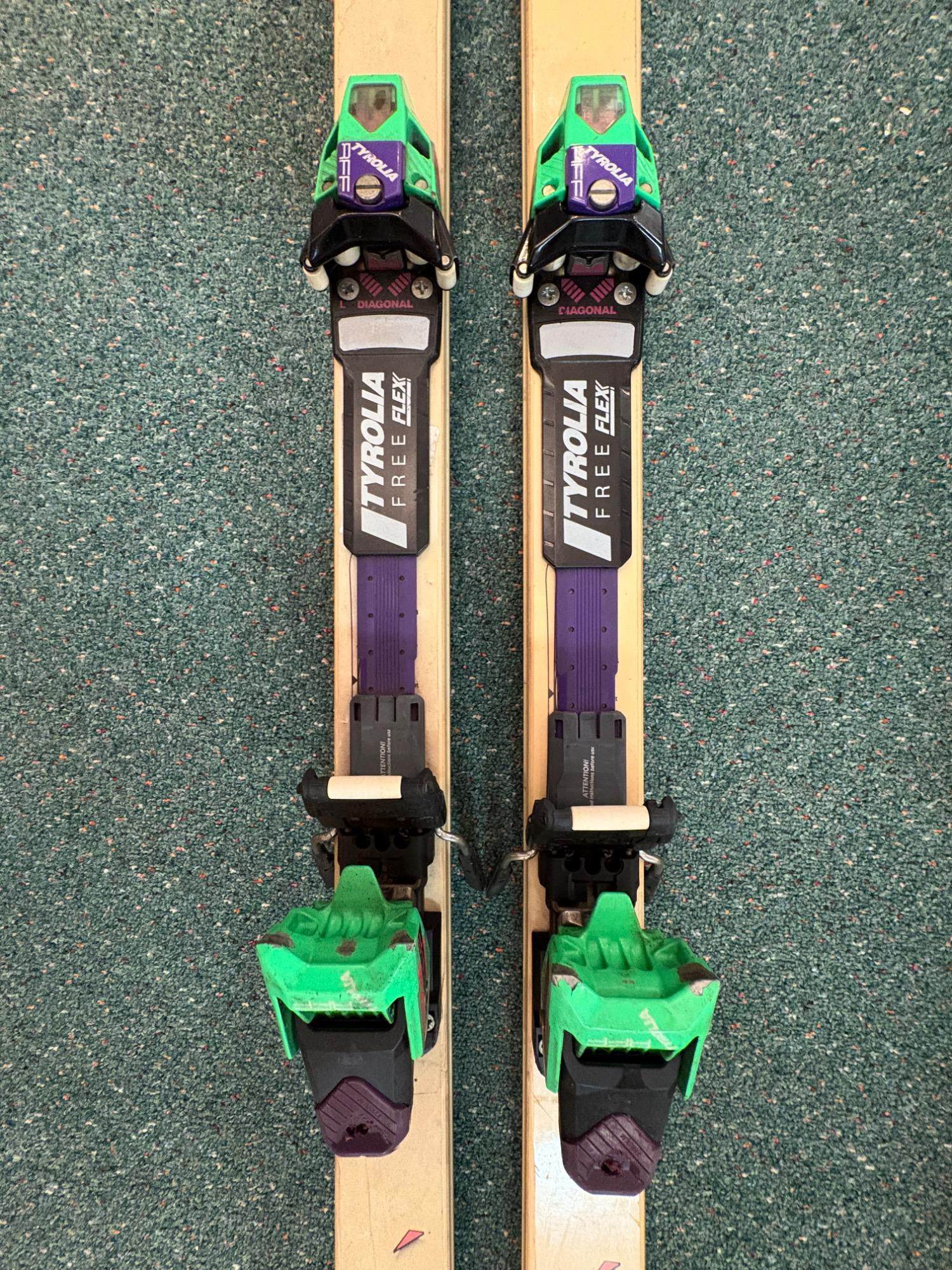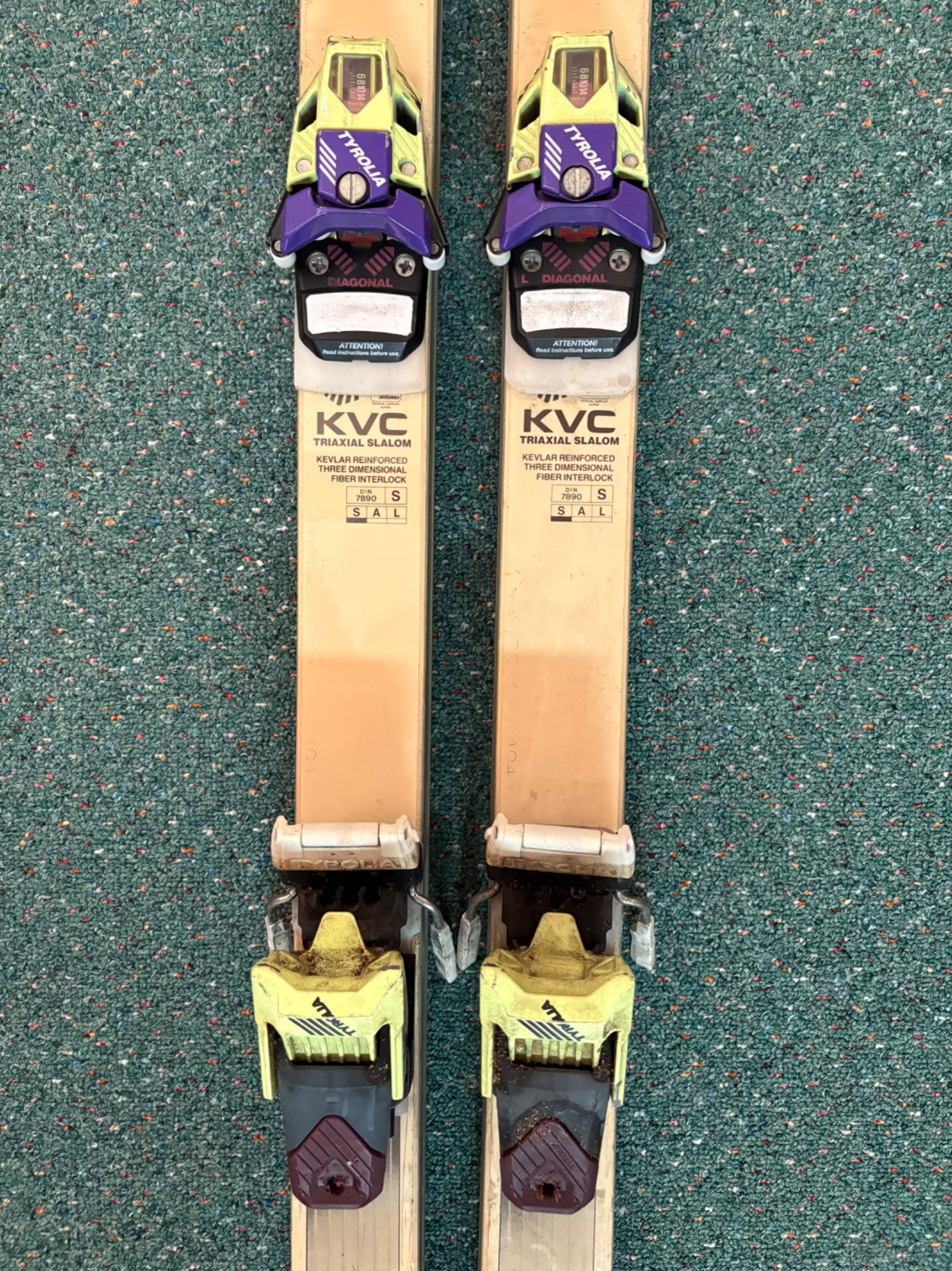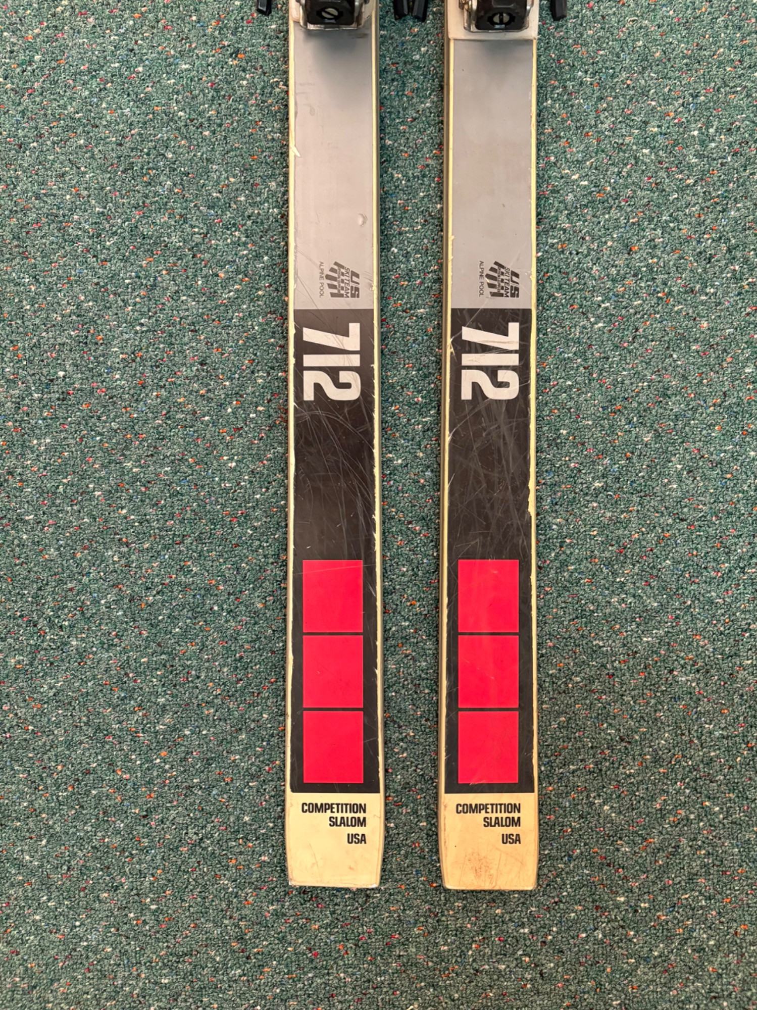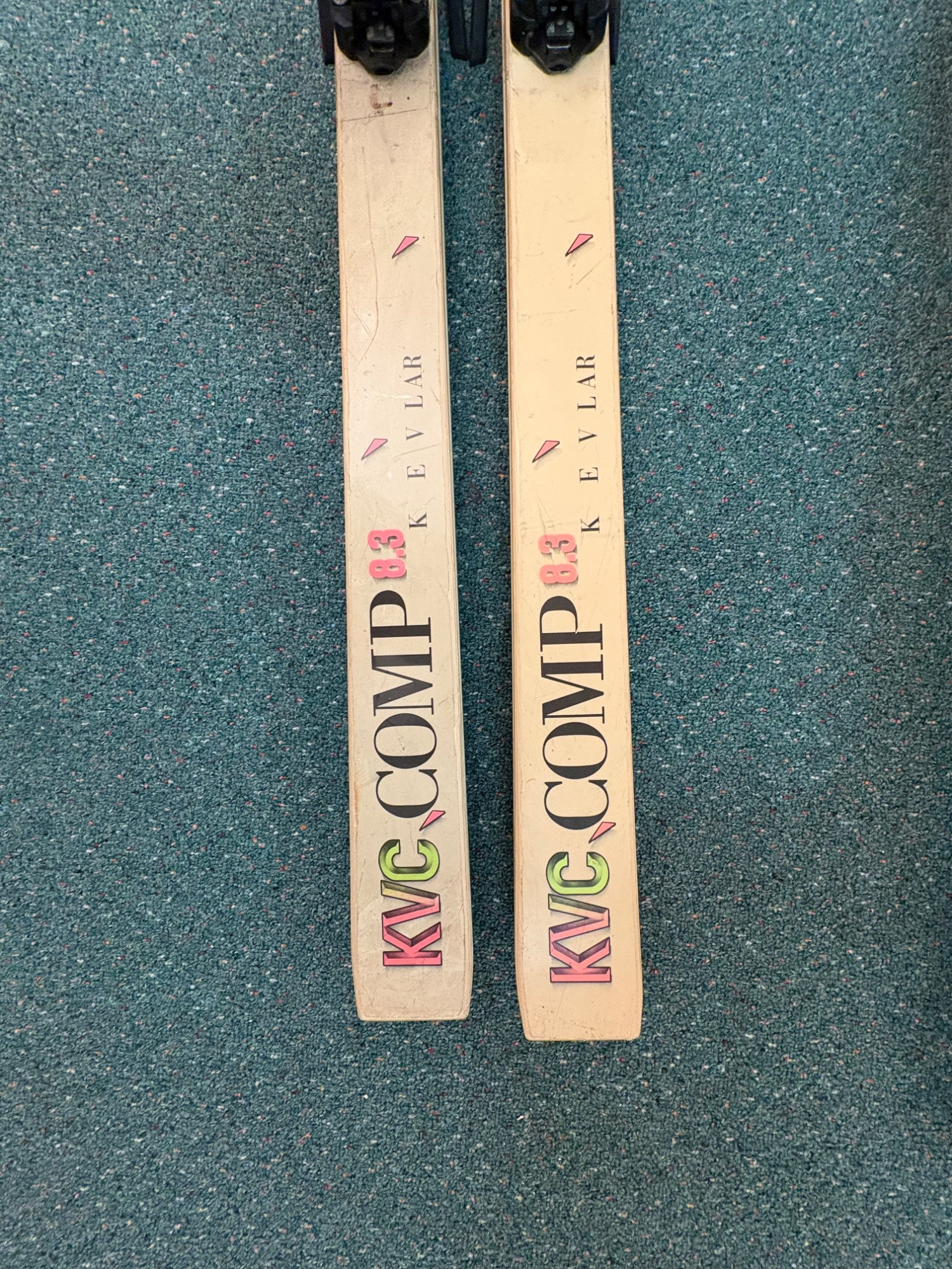 Three pairs of vintage K2 skis. All are white and edges show a bit of rust, but no divots or major flaws noted other than normal wear. All have various Tyrolia bindings. - Left pair measures approximately 80" L. - Center white and gray pair measures approximately 81" L. - Right pair measures approximately 81" L.. 3 vintage VCR ski tapes BONUS: we are also including a vintage zip-close ski bag not pictured. It very much needs a good wash.