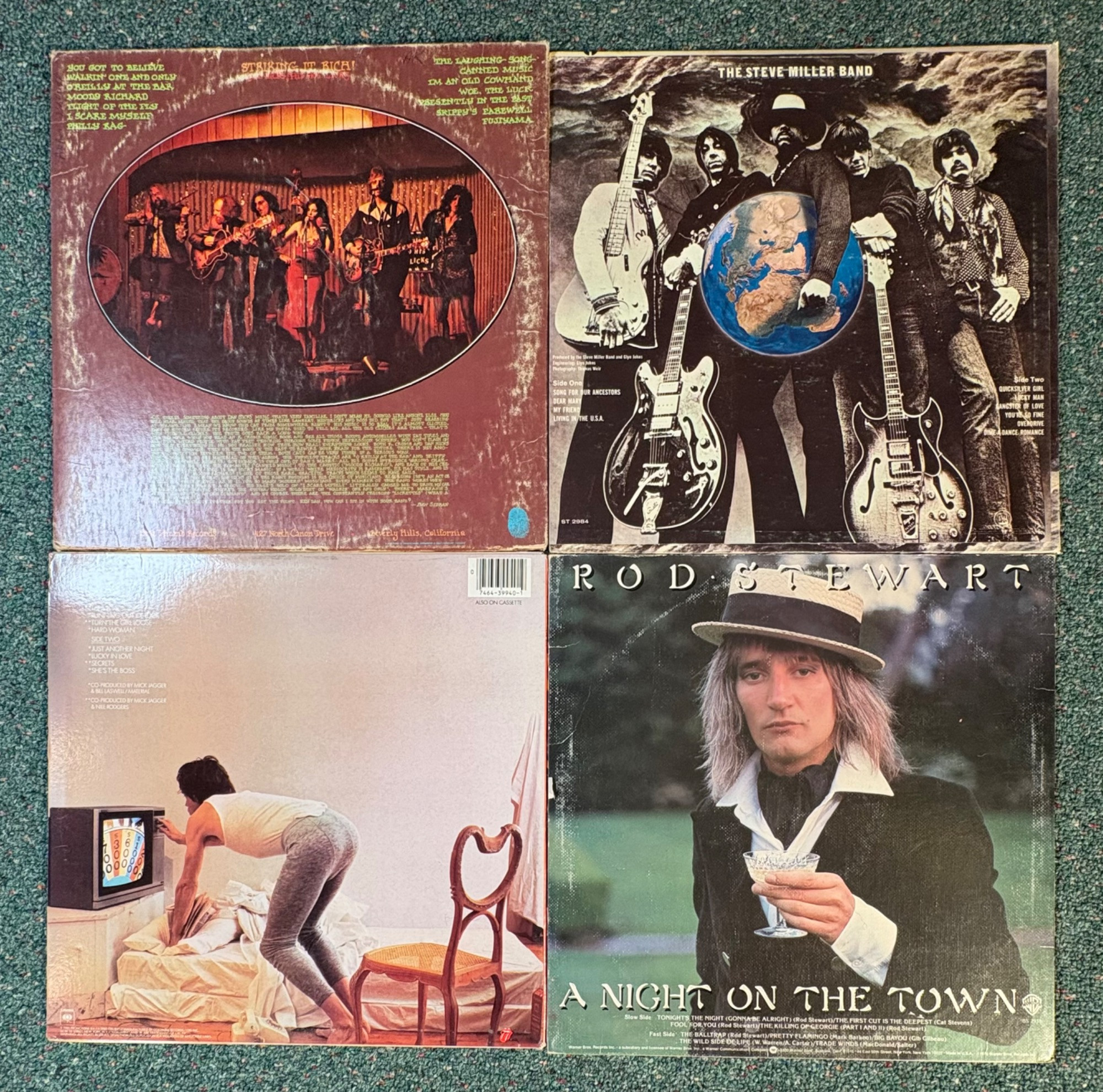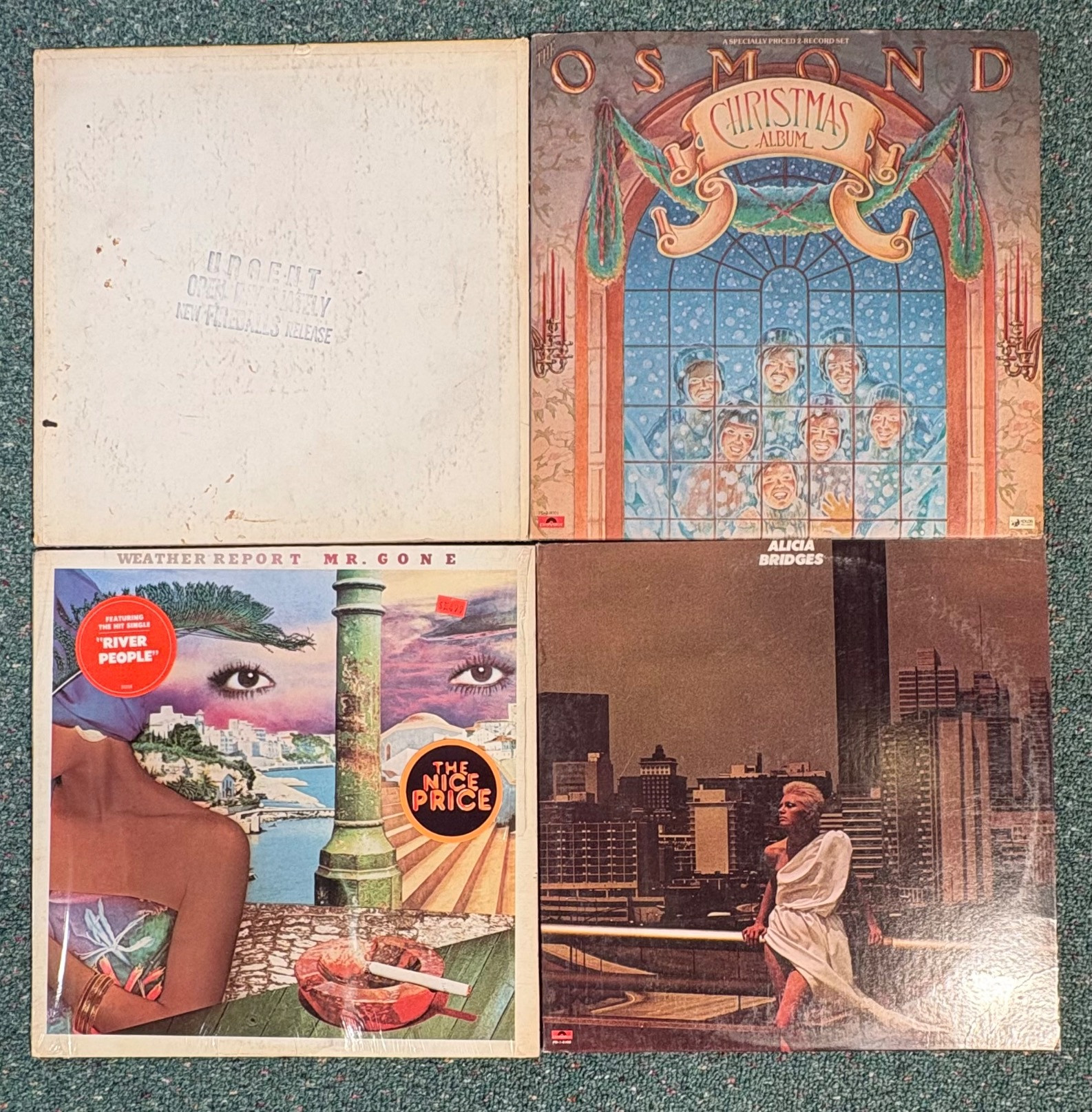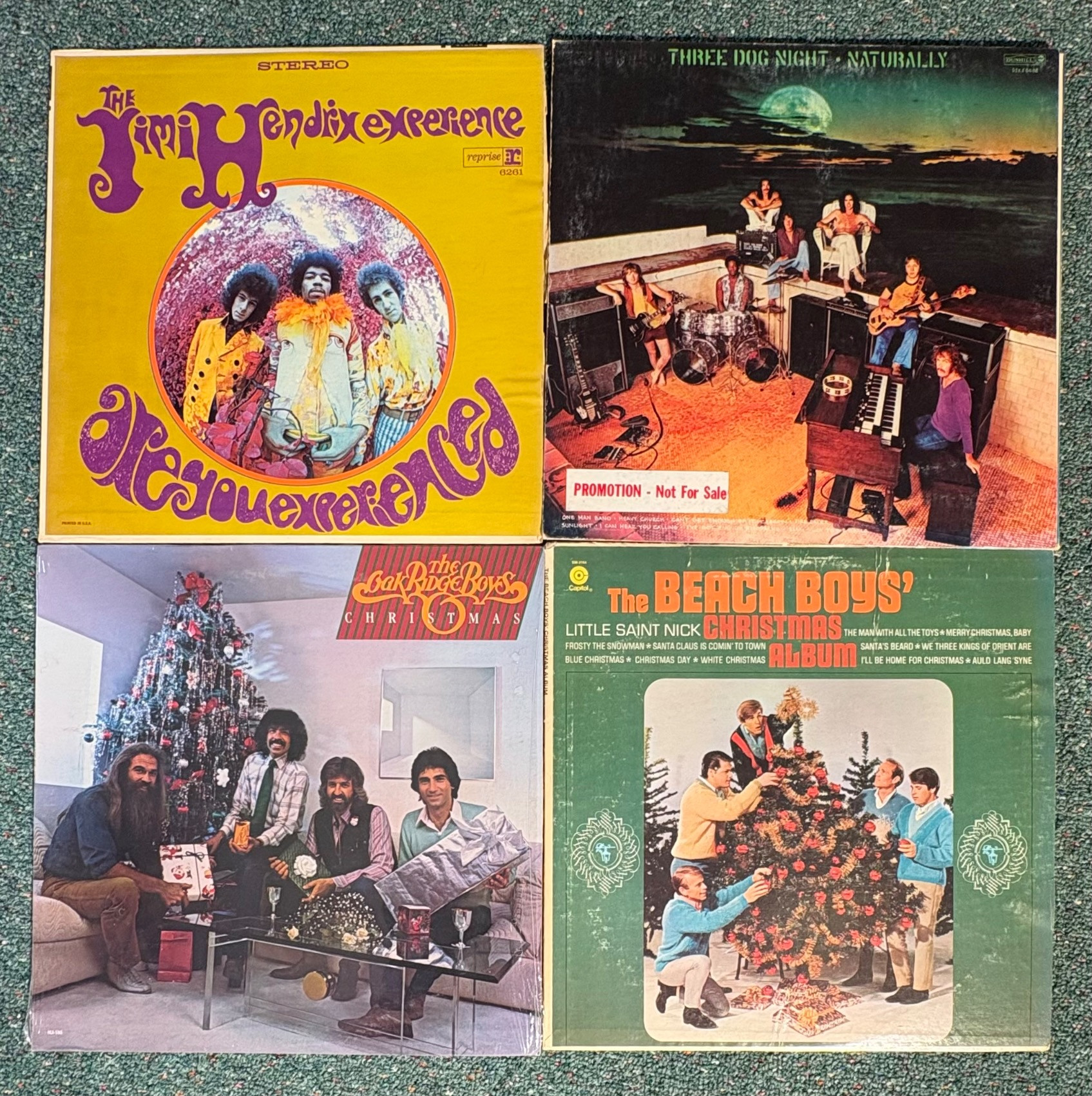 16 vintage vinyl LPs! Our client had eclectic taste and loved his albums - thus, most of these have been lovingly played over the years. We checked to make sure the correct album was in the correct cover and did a cursory glance for any egregious scratches. Some covers reflect heavy use and are worn/split in places/have names written on them. However, the majority are in good used shape. Artists/Bands in this lot include: Fleetwood Mac Mick Jagger Rod Stewart Dan Hicks & His Hot Licks Steve Miller Band Jimi Hendrix Experience The Oak Ridge Boys Three Dog Night The Beach Boys The Fireballs Alicia Bridges Osmonds Weather Report (4 albums)