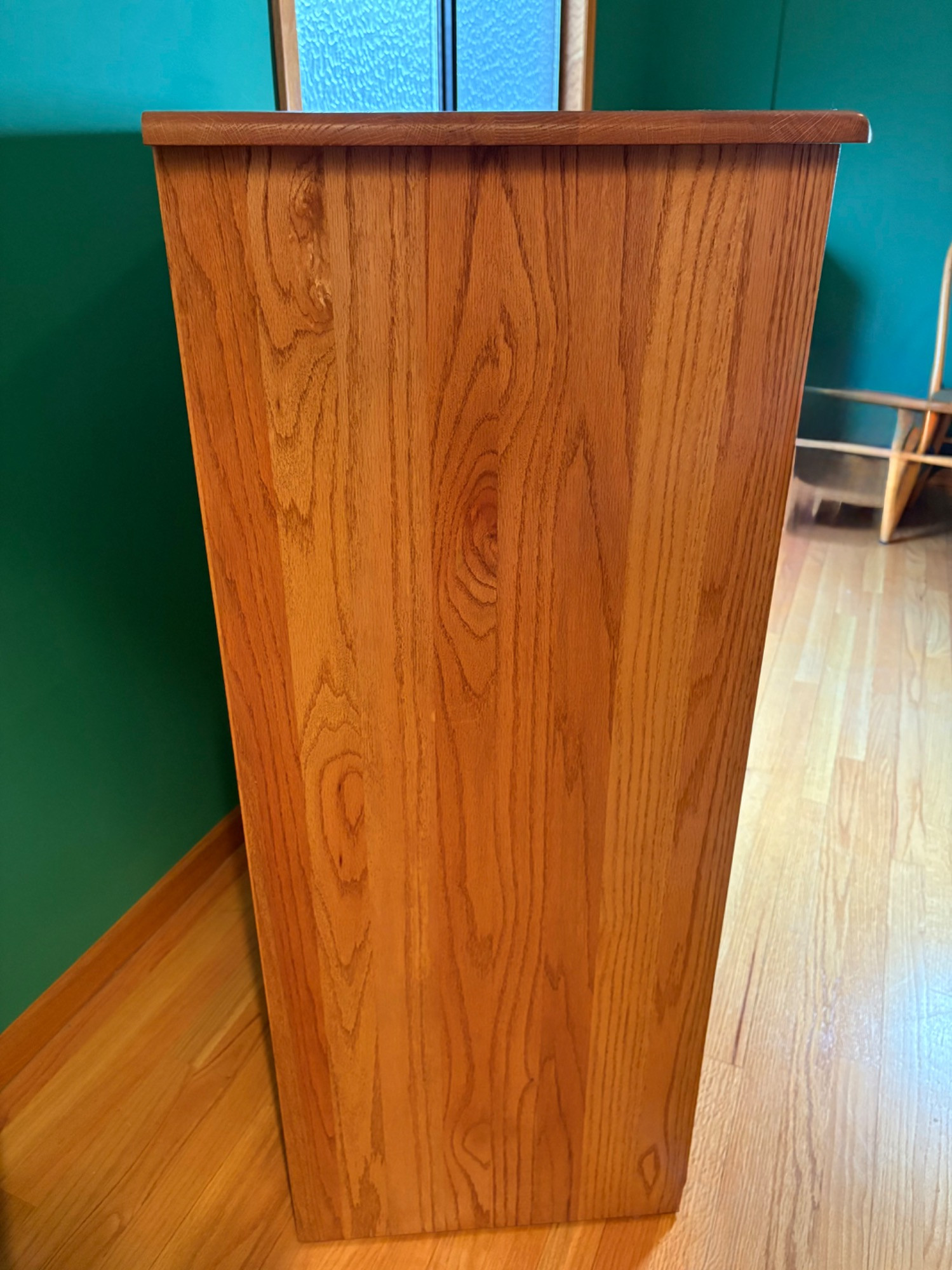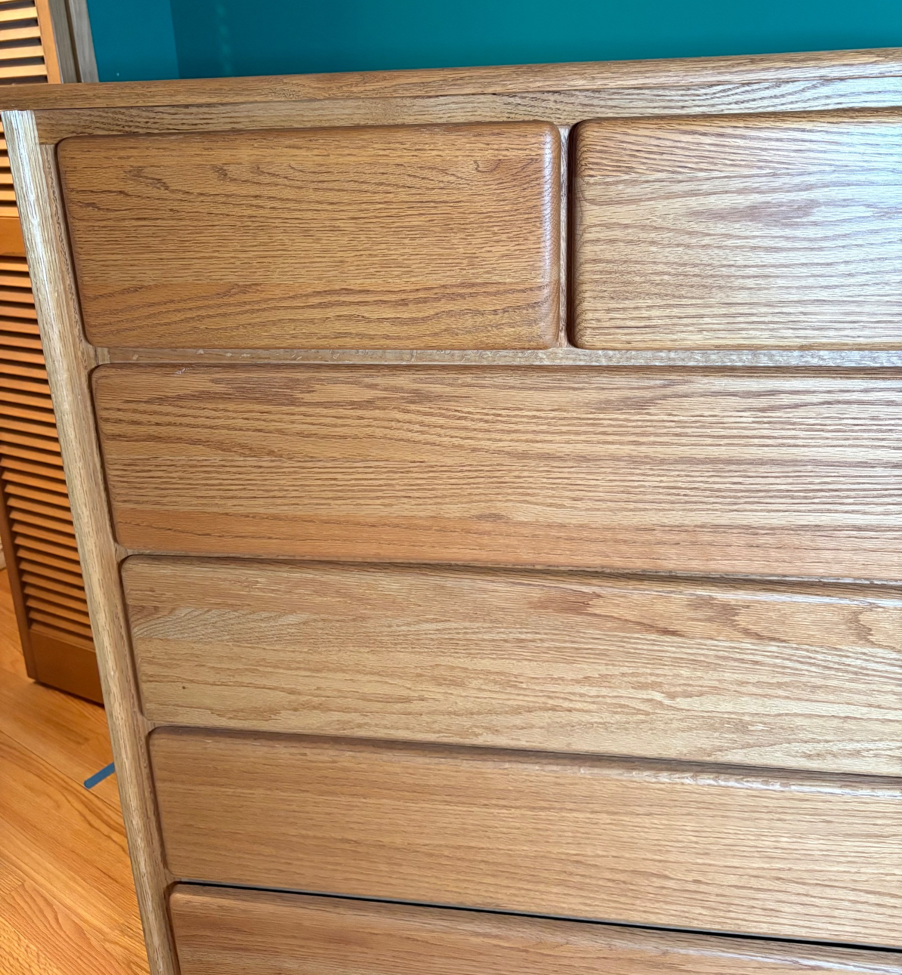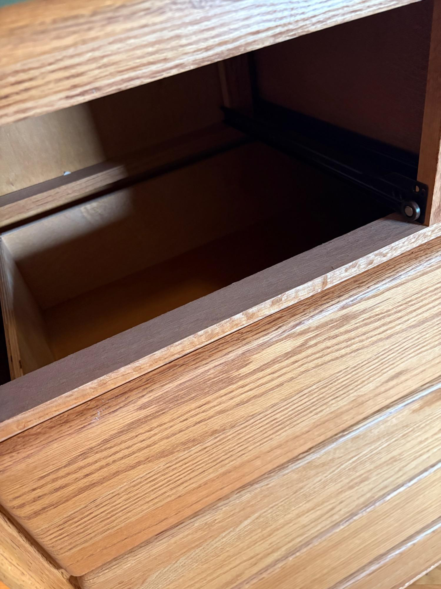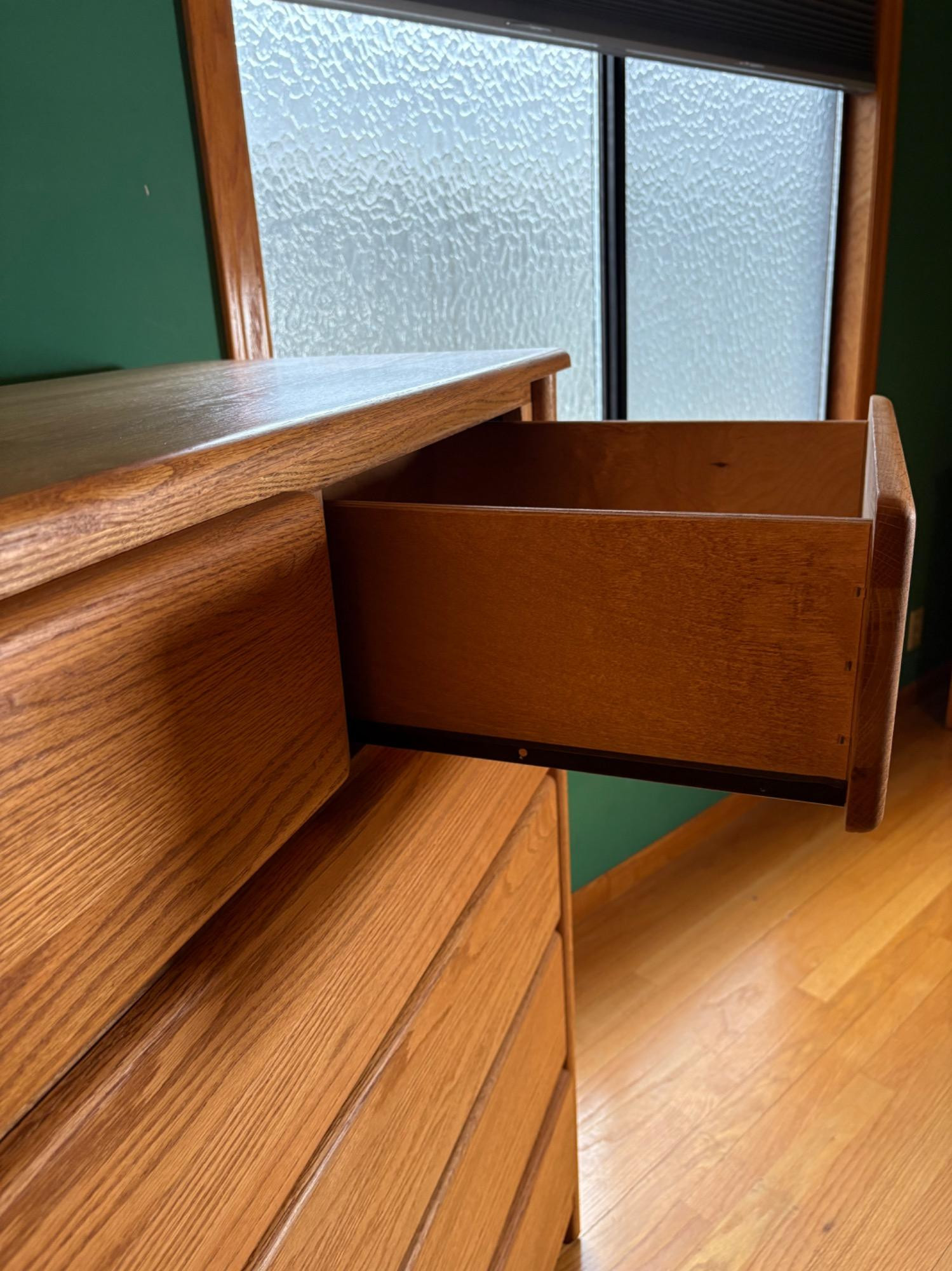 Wooden tall chest of drawers with curved drawer edges and cut-out finger channel at bottom of drawers. Four large drawers on the bottom with two smaller ones at the top. In perfect condition - including the top surface - with the exception of one small scratch on the right hand side - see last photo for details. Purchased at long-time local furniture store Don Willis Furniture (now closed, alas!). Made in USA. Marching chests of drawers in Lots #27 & #199. Local Pickup Only. Bidding on this lot is an agreement that: (1.) You will have 2 capable, able-bodied persons to lift and load at a minimum. (2.) You will bring a hand truck and/or any other tools needed to remove this item. If these steps are not followed your item will be forfeited and no refund given.