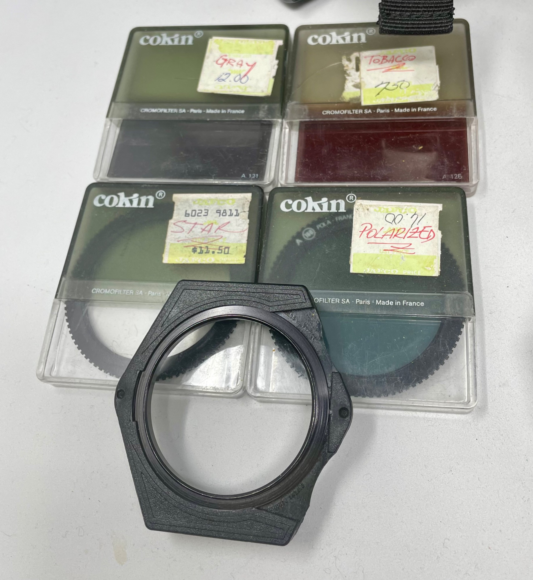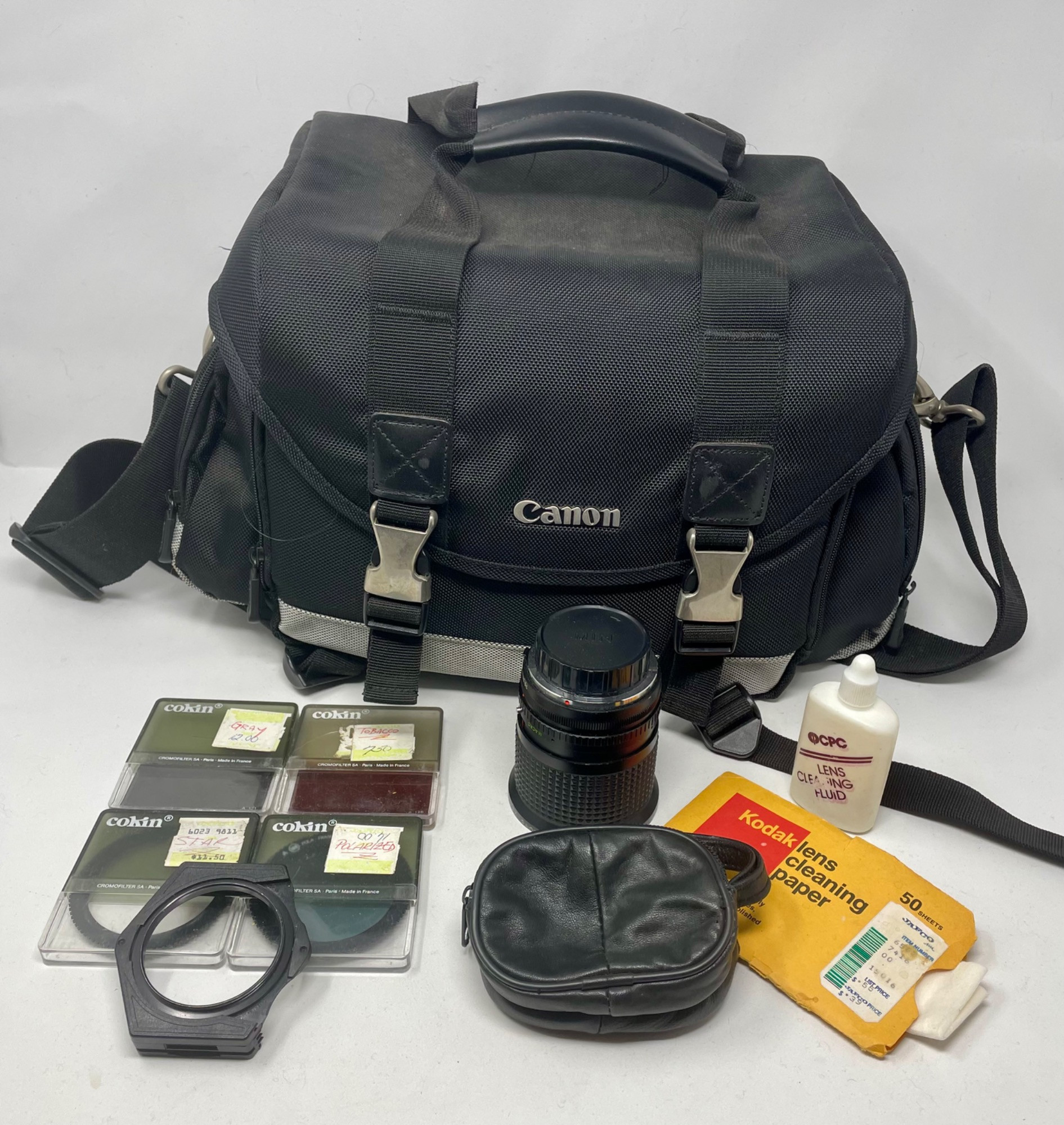 Photo accessories galore! Canon photography bag 4 Cokin Chromofilter filters (polarized, tobacco brown, star, and gray) Albinar AGD Auto Zoom lens 1:3.5-4.5mm No. 8409611 Plus anything you see here