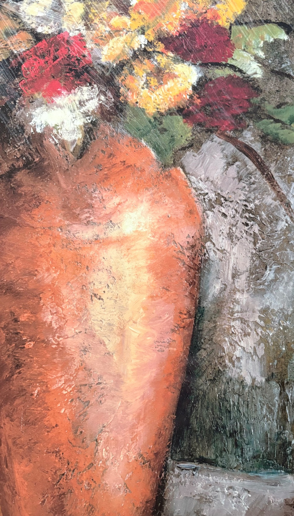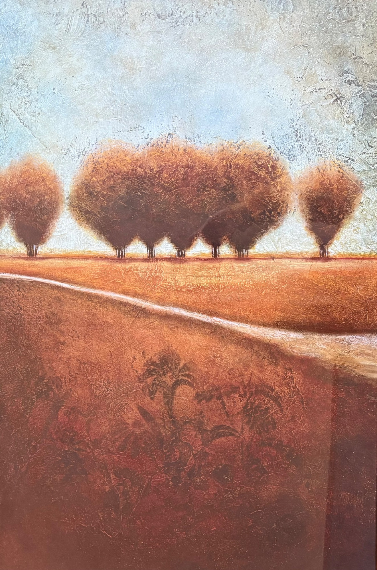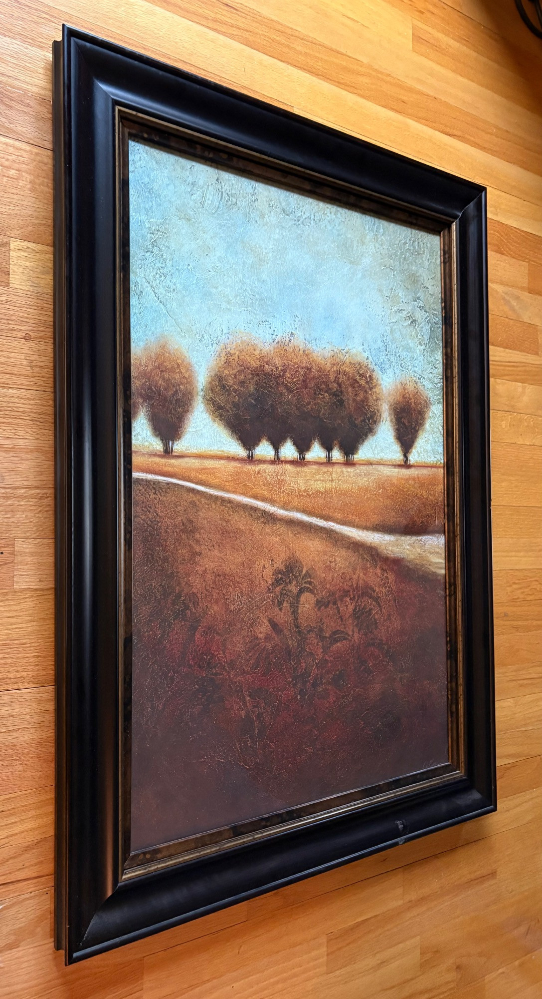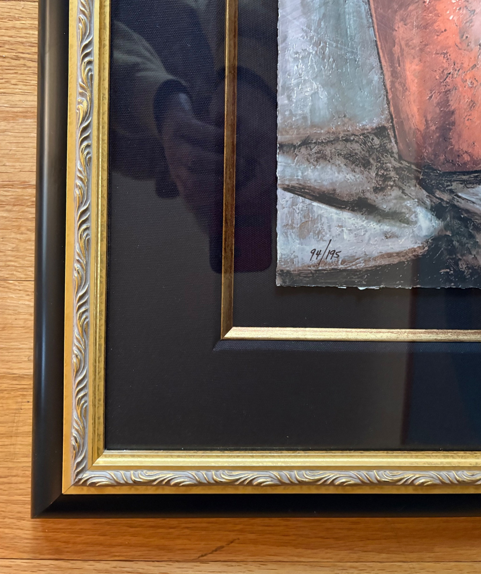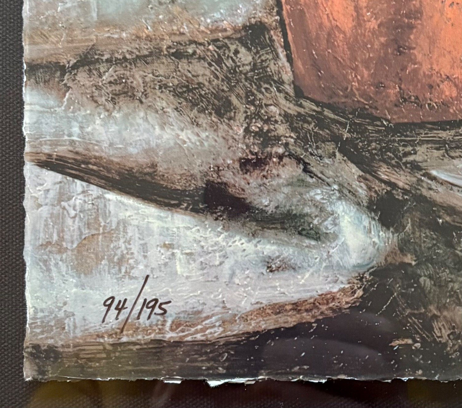 Pair of contemporary reproduction paintings. Alice Qubini "Vase of Flowers". Reproduction painting of a vase of flowers. Editioned 94/195. Measures 31" H x 21" W x 1.5" D. Susan Osbourne’s "Abstract Landscape II". Photo reproduction of original painting. Measures 41.25" H x 29.5" W x 1.75" D. Damage to lower right side of frame - see last photo.