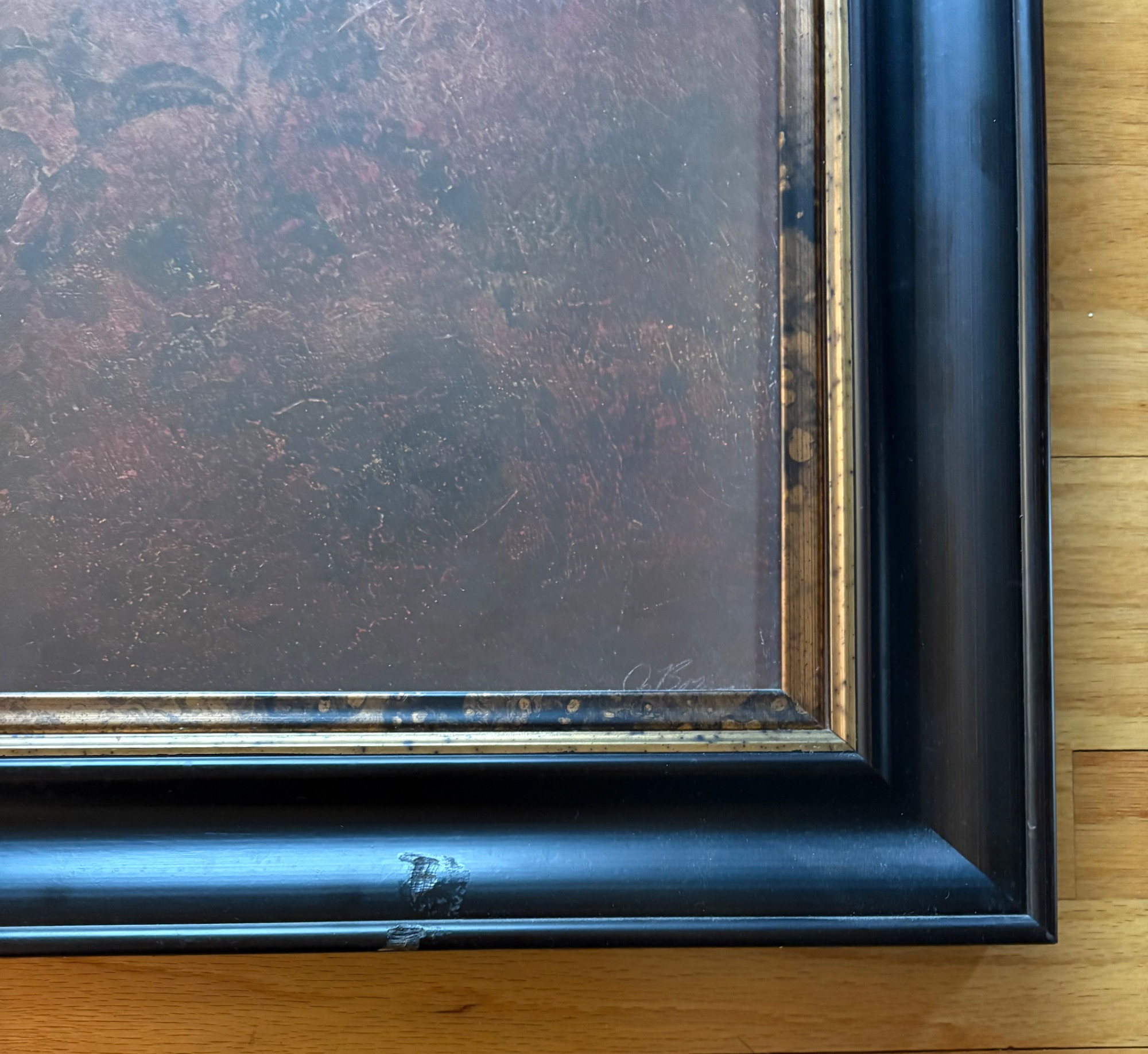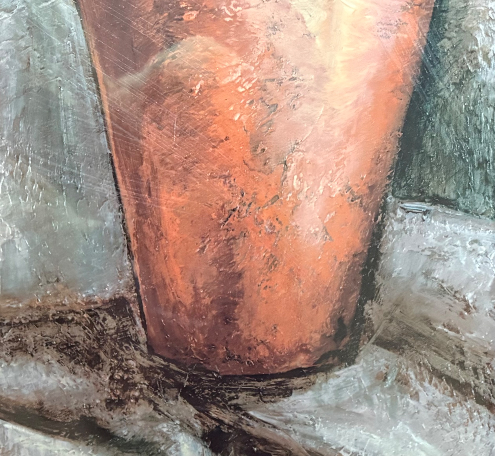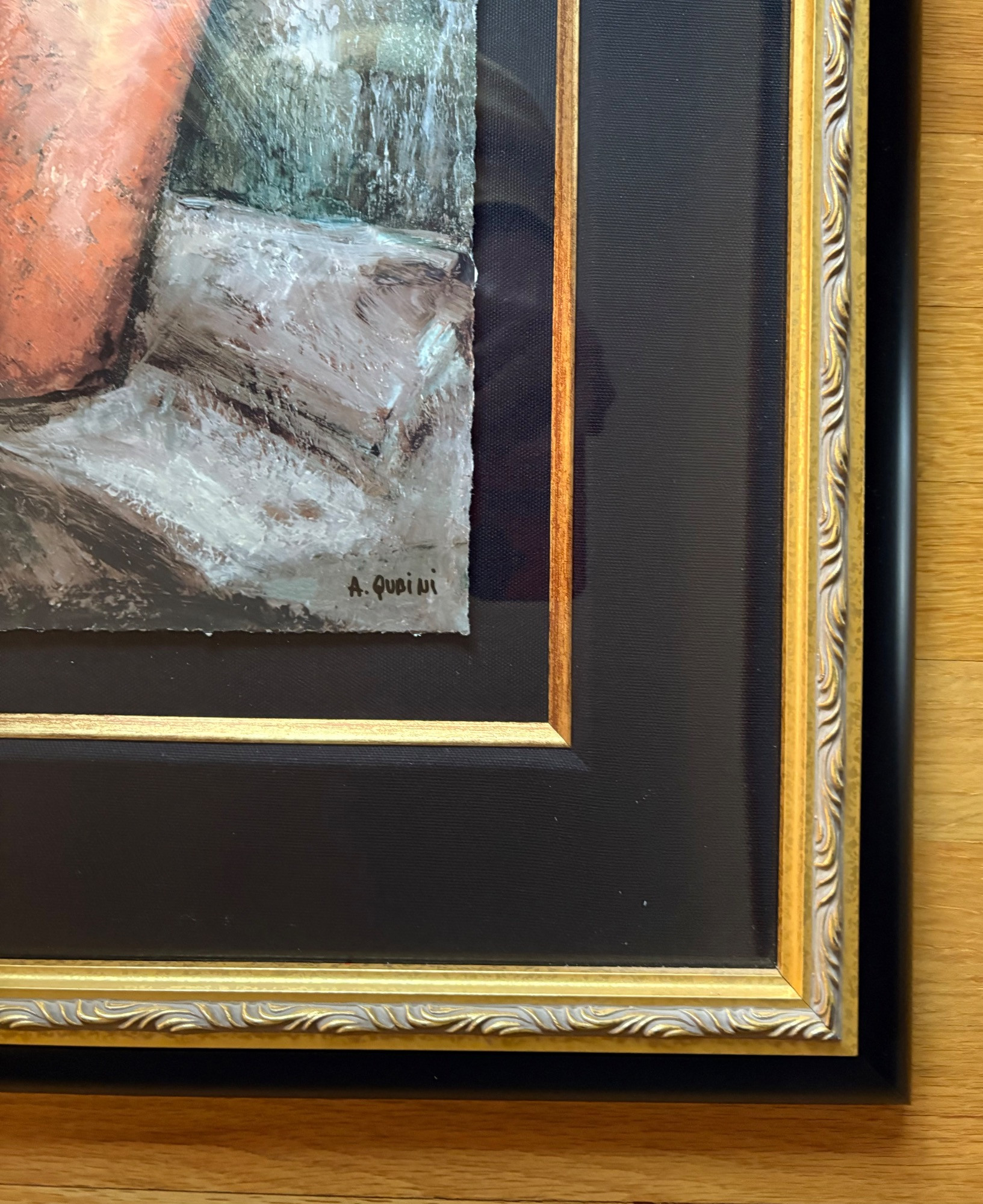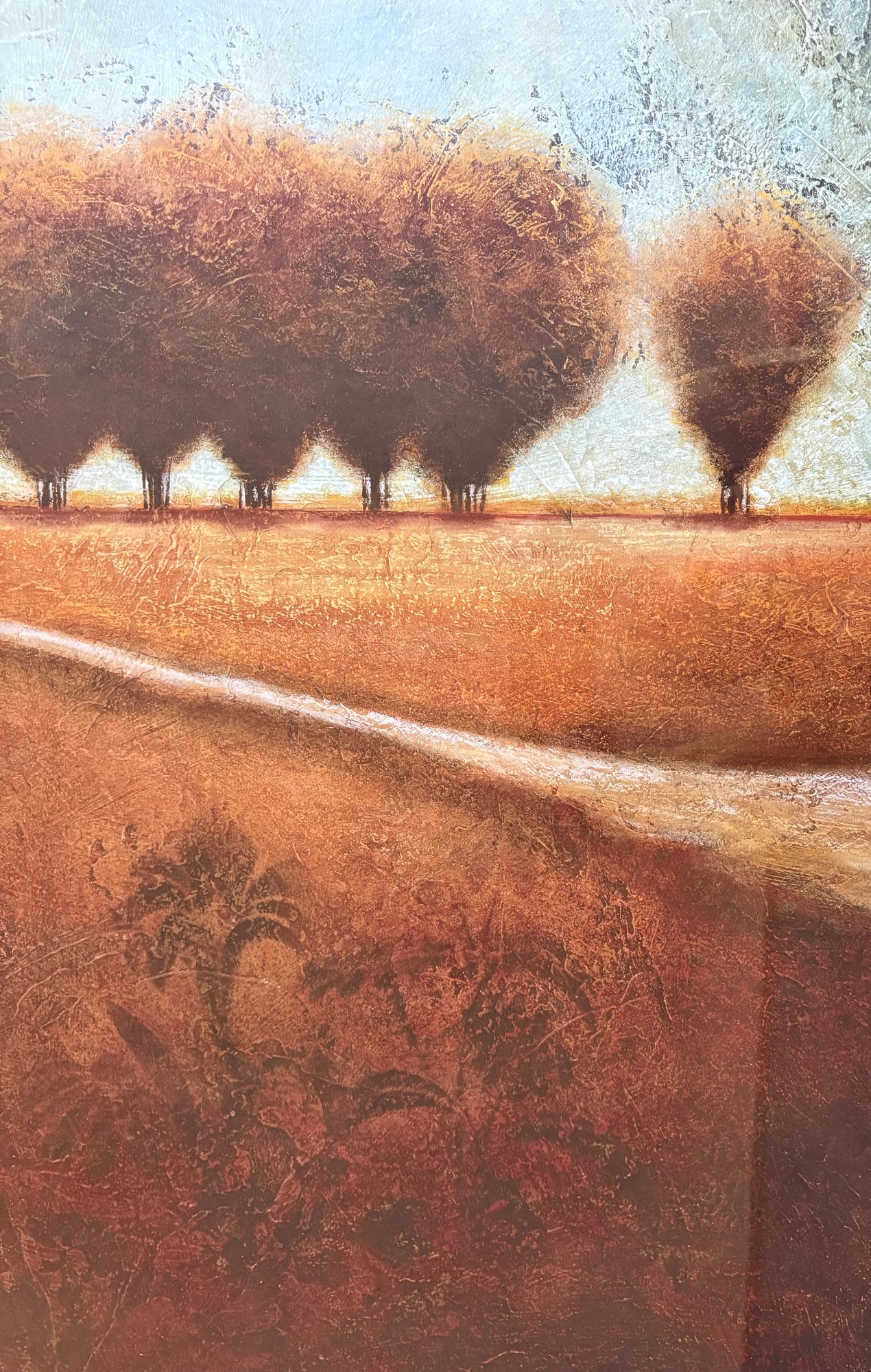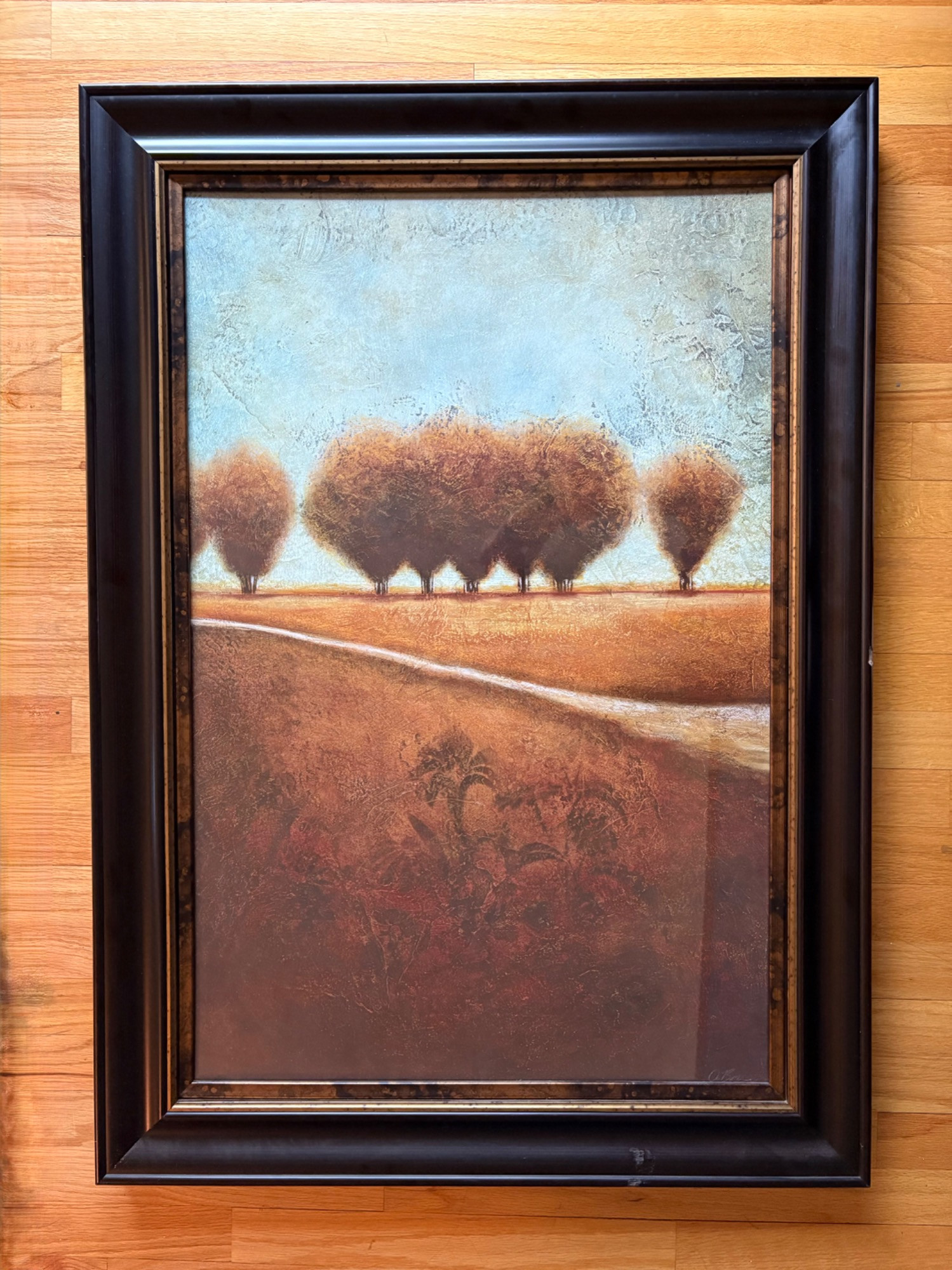 Pair of contemporary reproduction paintings. Alice Qubini "Vase of Flowers". Reproduction painting of a vase of flowers. Editioned 94/195. Measures 31" H x 21" W x 1.5" D. Susan Osbourne’s "Abstract Landscape II". Photo reproduction of original painting. Measures 41.25" H x 29.5" W x 1.75" D. Damage to lower right side of frame - see last photo.