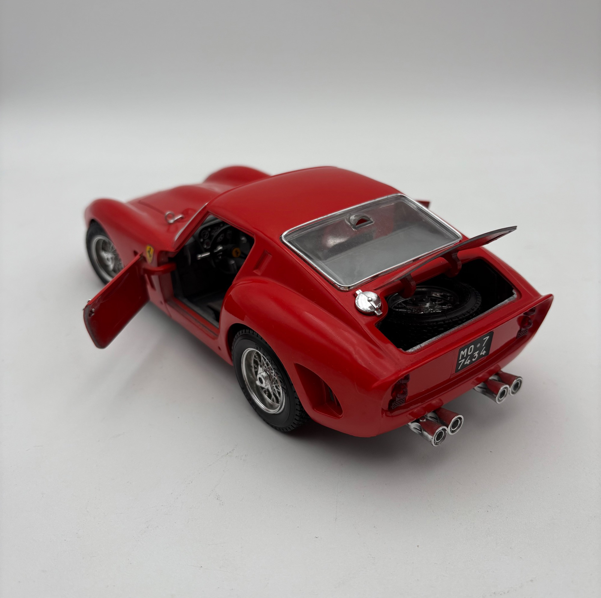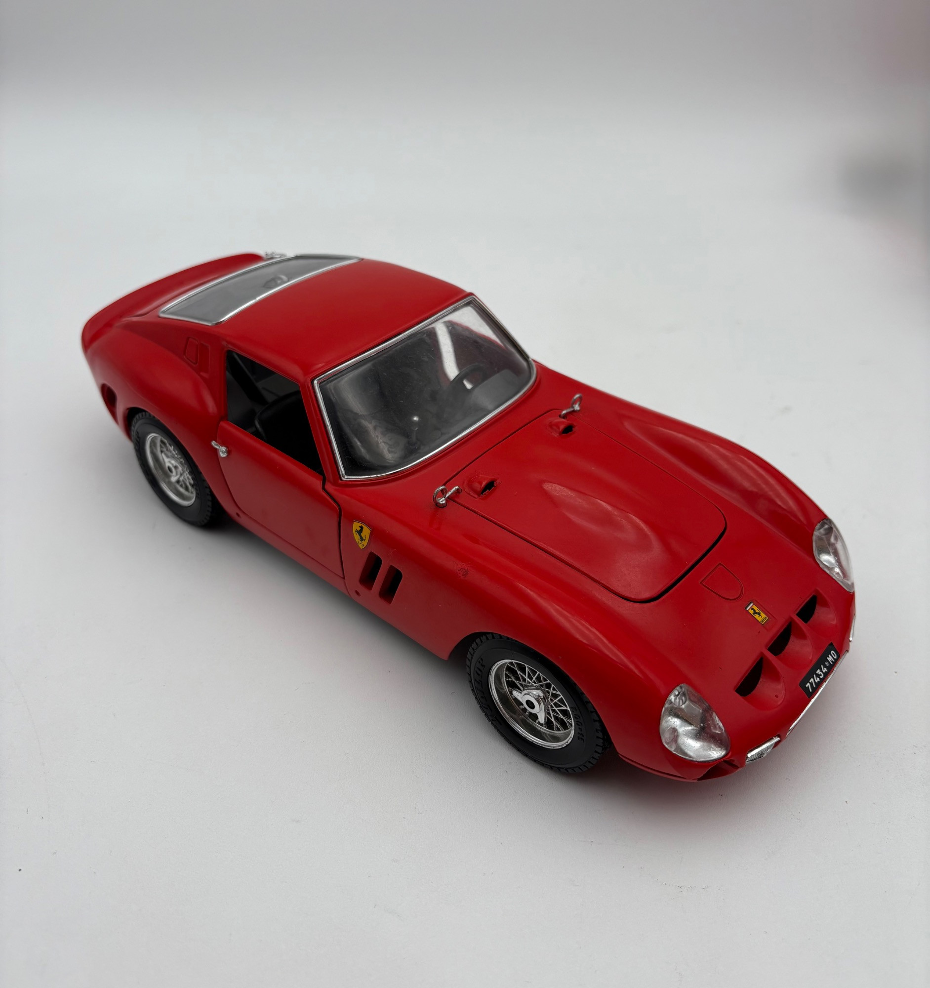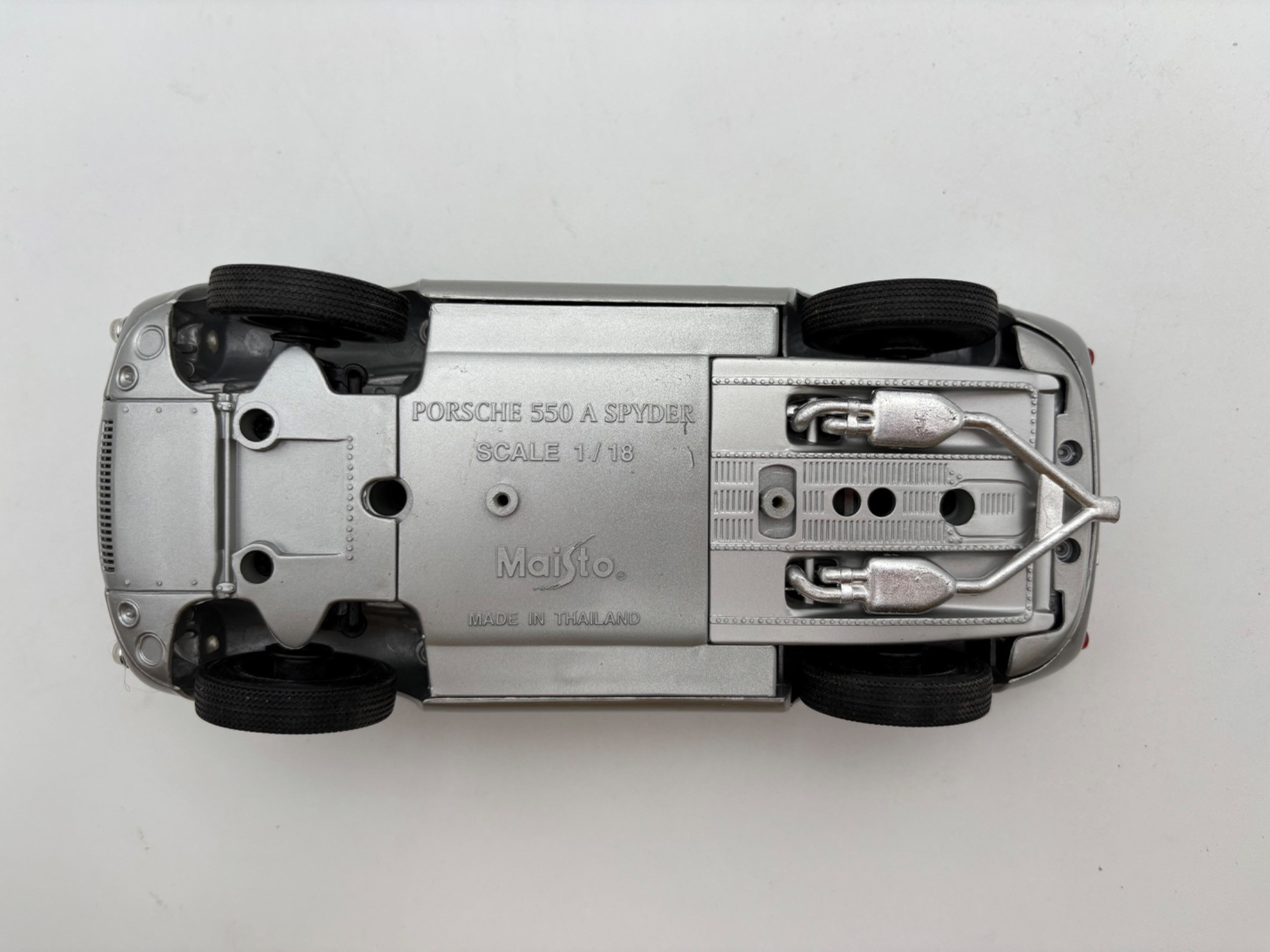 Six quality model cars from various makers. Largest measures 10" L. Smallest measures 7" L. Burago Ferrari GTO - 1/18 scale - made in Italy Hot Wheels Enzo Ferrari - made in China Burago Ferrari GTO - made in Italy Maisto Porsche 55A Spyder - scale 1/18 - made in Thailand (in silver color) Burago Ferrari F310 - scale 1/24 - made in Italy