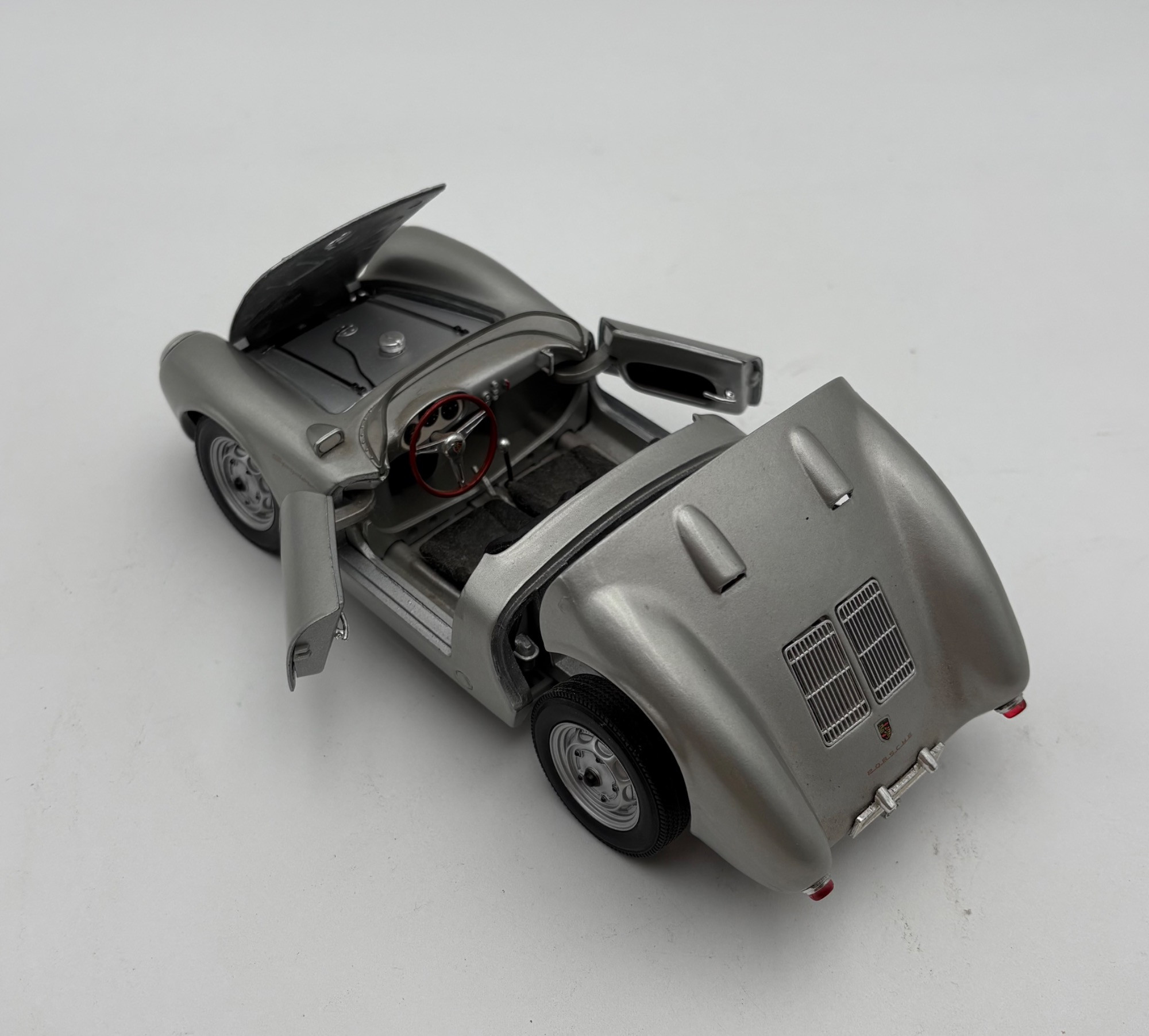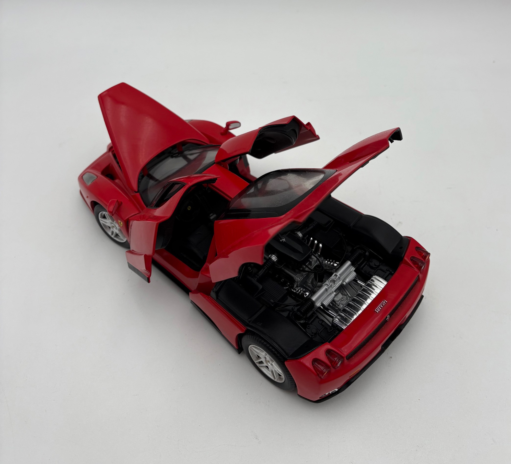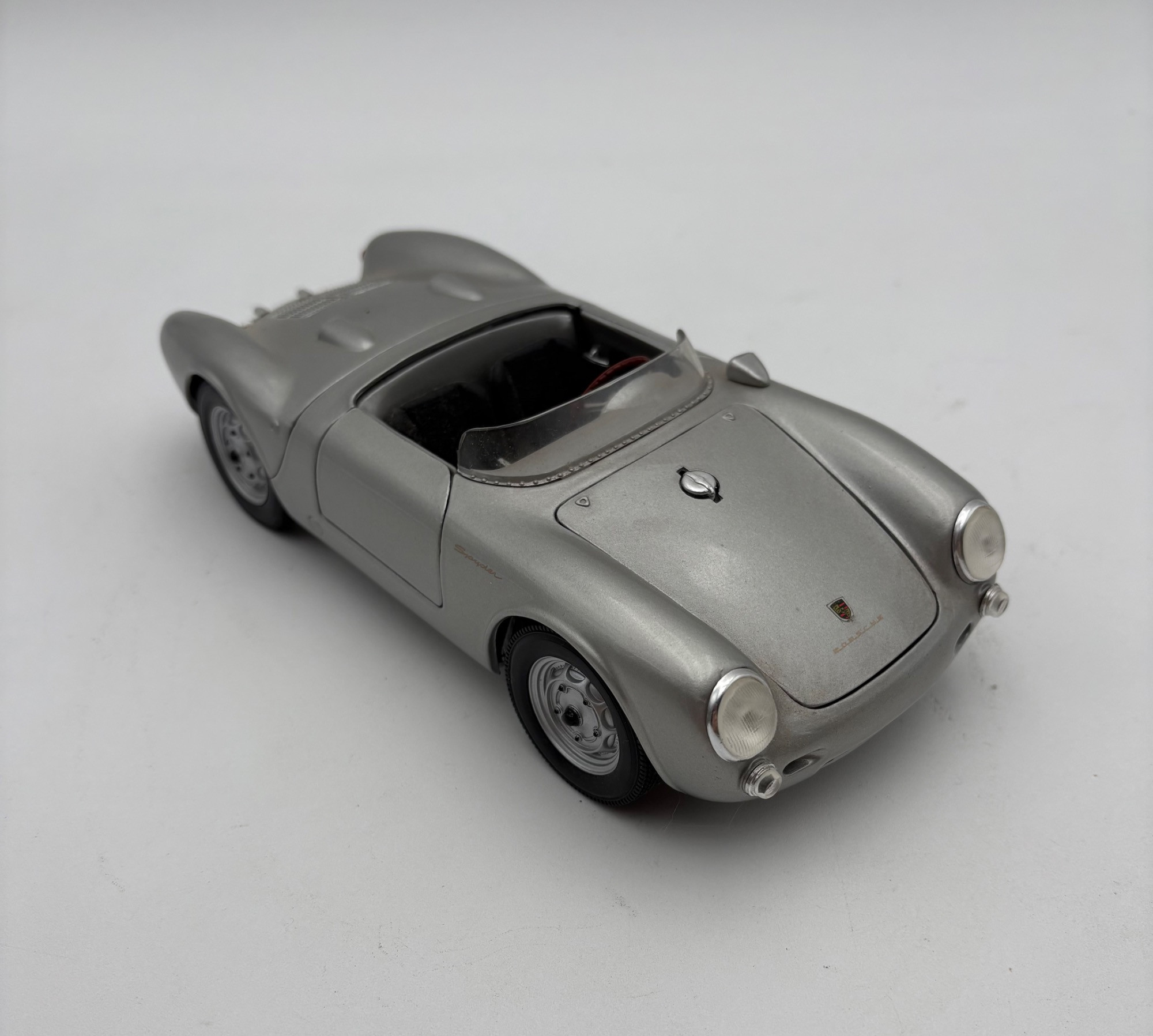 Six quality model cars from various makers. Largest measures 10" L. Smallest measures 7" L. Burago Ferrari GTO - 1/18 scale - made in Italy Hot Wheels Enzo Ferrari - made in China Burago Ferrari GTO - made in Italy Maisto Porsche 55A Spyder - scale 1/18 - made in Thailand (in silver color) Burago Ferrari F310 - scale 1/24 - made in Italy