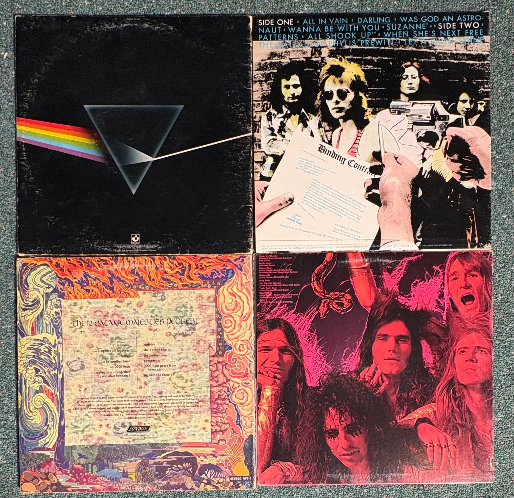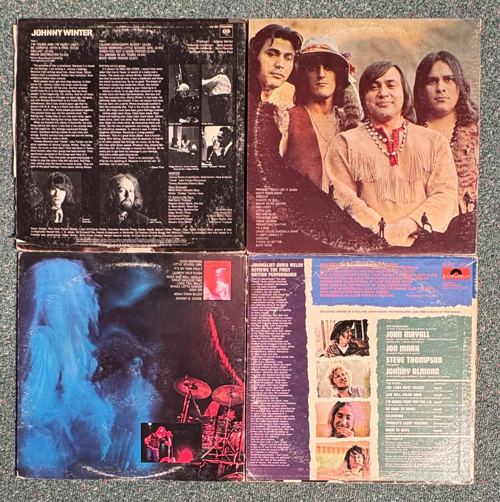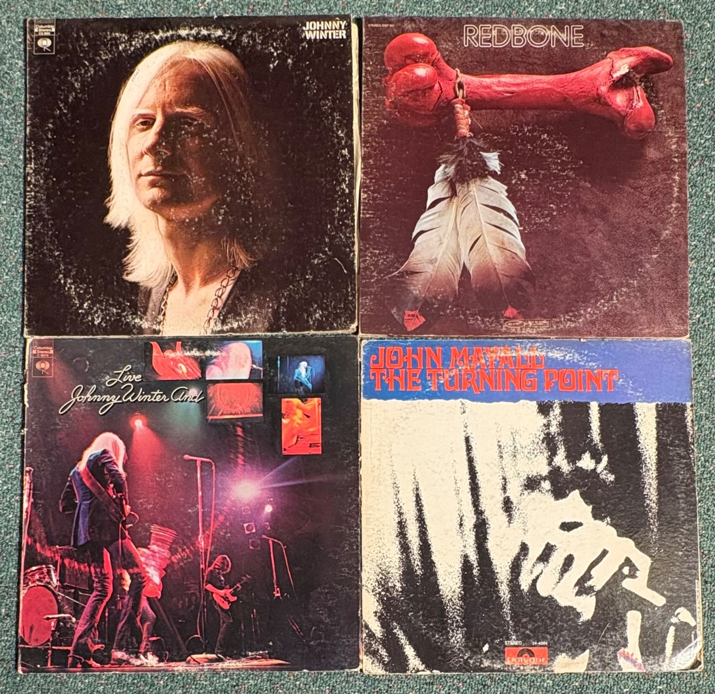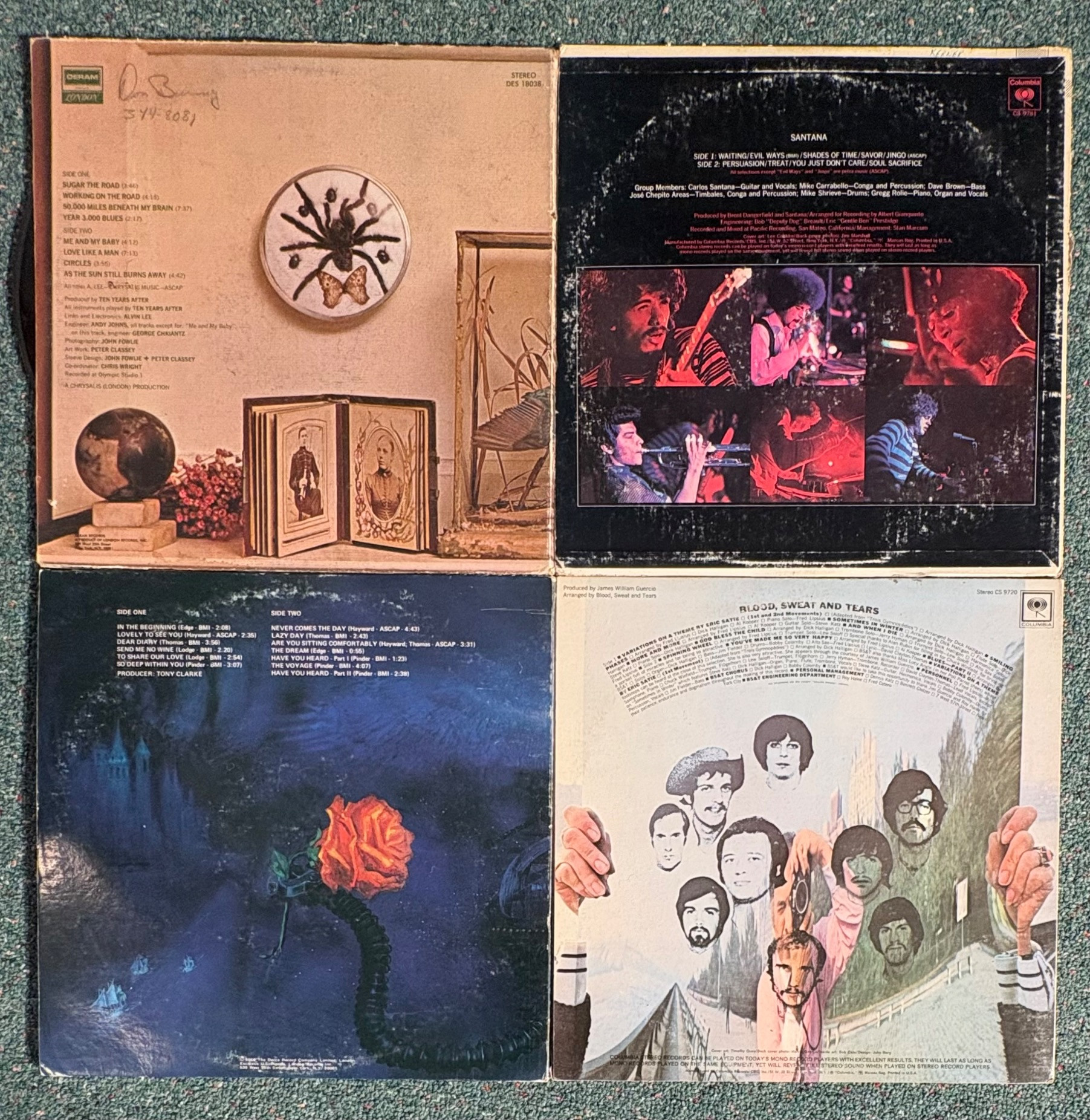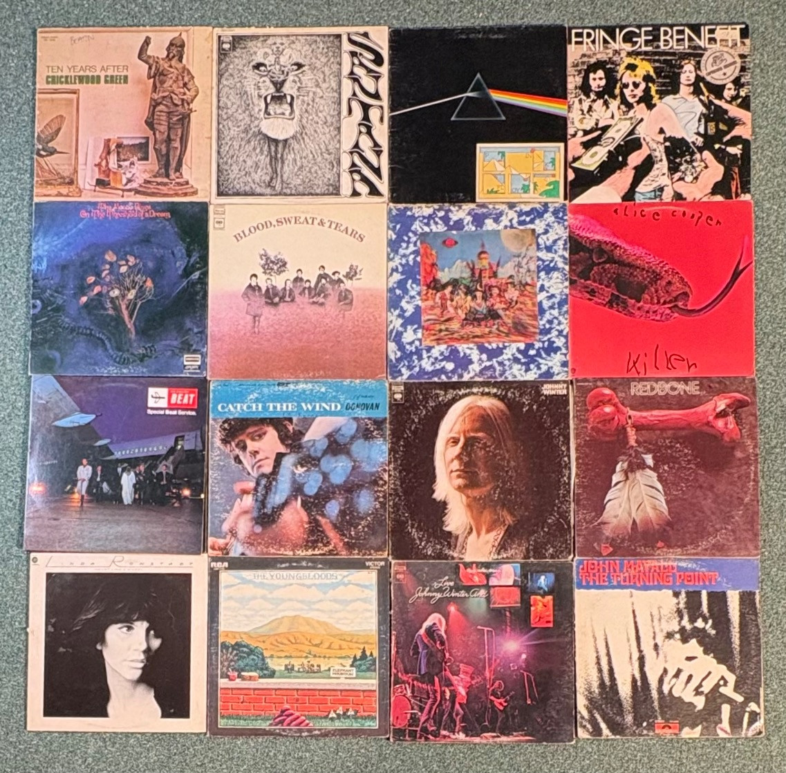 16 vintage vinyl LPs! Our client had eclectic taste and loved his albums - thus, most of these have been lovingly played over the years. We checked to make sure the correct album was in the correct cover and did a cursory glance for any egregious scratches. Some covers reflect heavy use and are worn/split in places/have names written on them. However, the majority are in good used shape. Artists/Bands in this lot include: Donovan Johnny Winter (2 albums) Redbone John Mayall The Youngbloods The English Beat Linda Ronstadt Blood Sweat & Tears Moody Blues Santana 10 Years After Pink Floyd Fringe Benefit Alice Cooper Rolling Stones Note: 10 Years After & Santana missing inner sleeves.