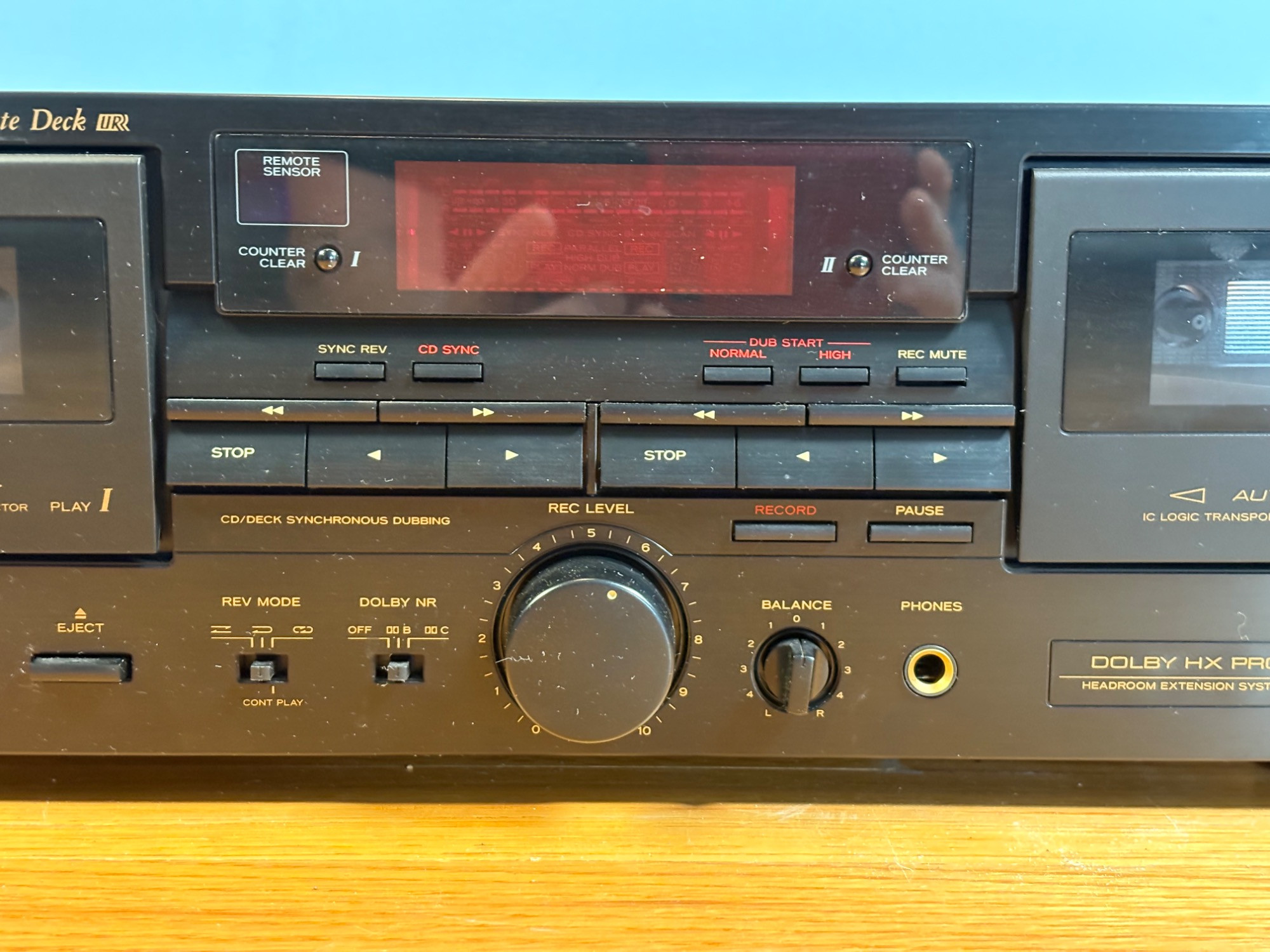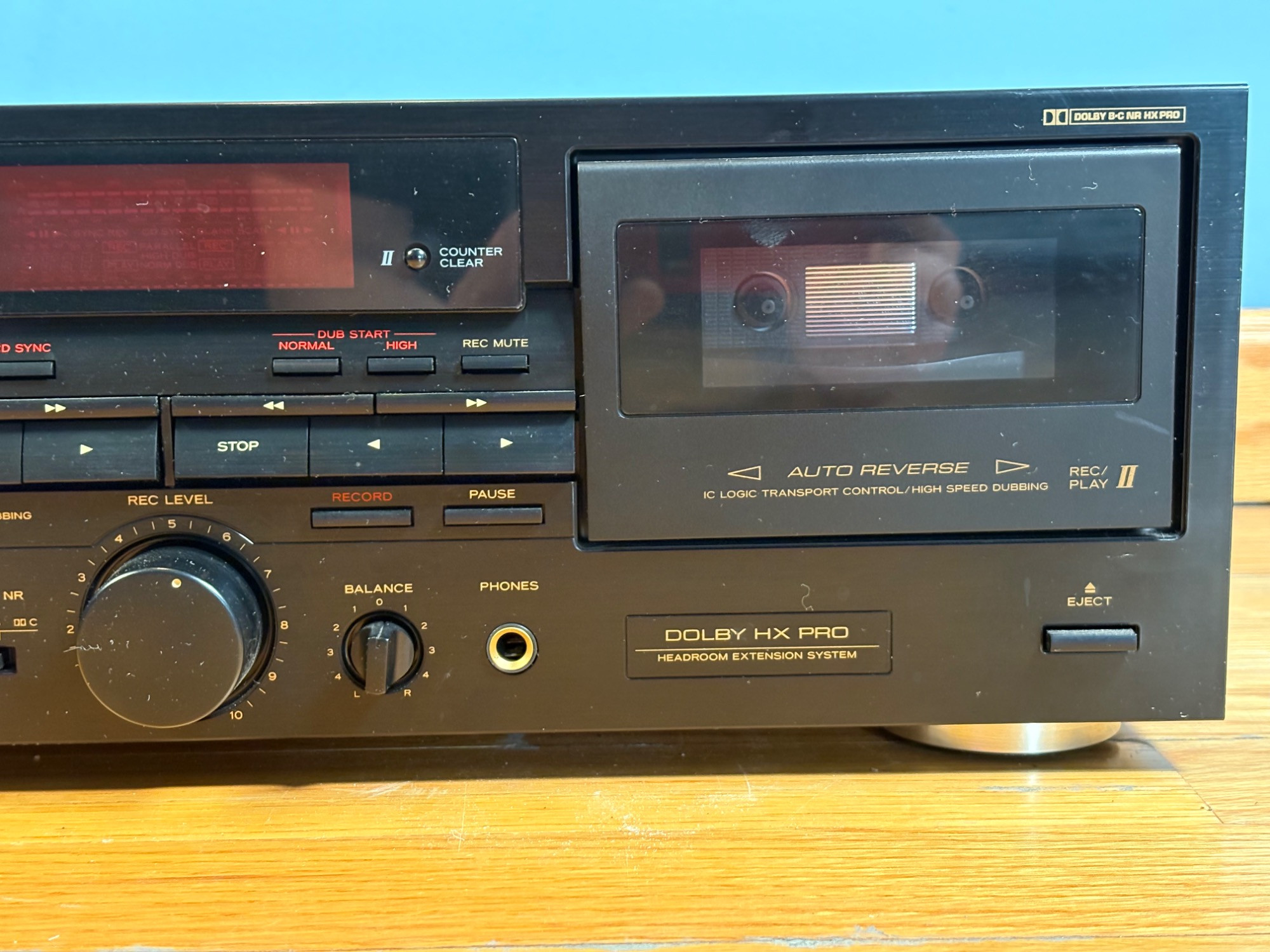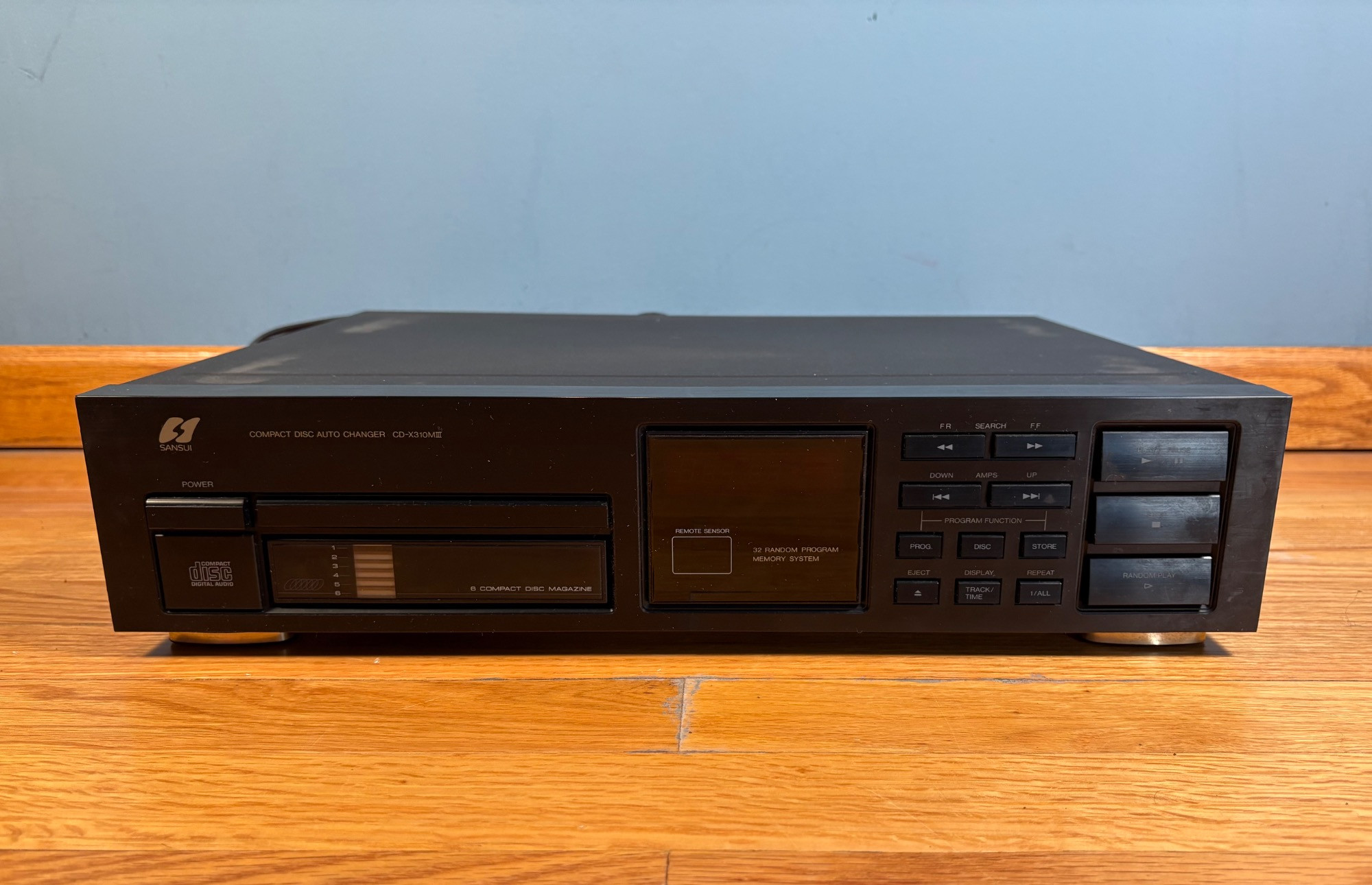 Sanyo Plus Series Quartz PL Direct Drive Turntable Plus Q40. Powers on. TEAC W-700R Double Cassette Deck Dolby XH Pro Headroom Extension System. Powers on. Sansui CD-X310MIII 6 Compact Disc Magazine CD Player. Powers on.