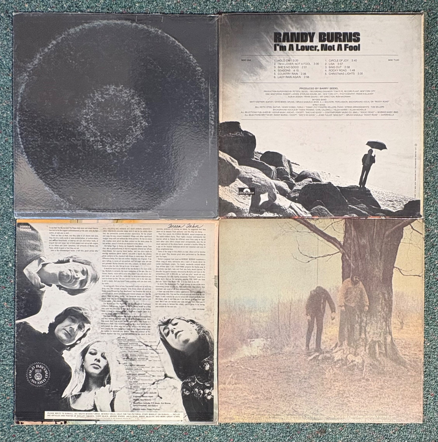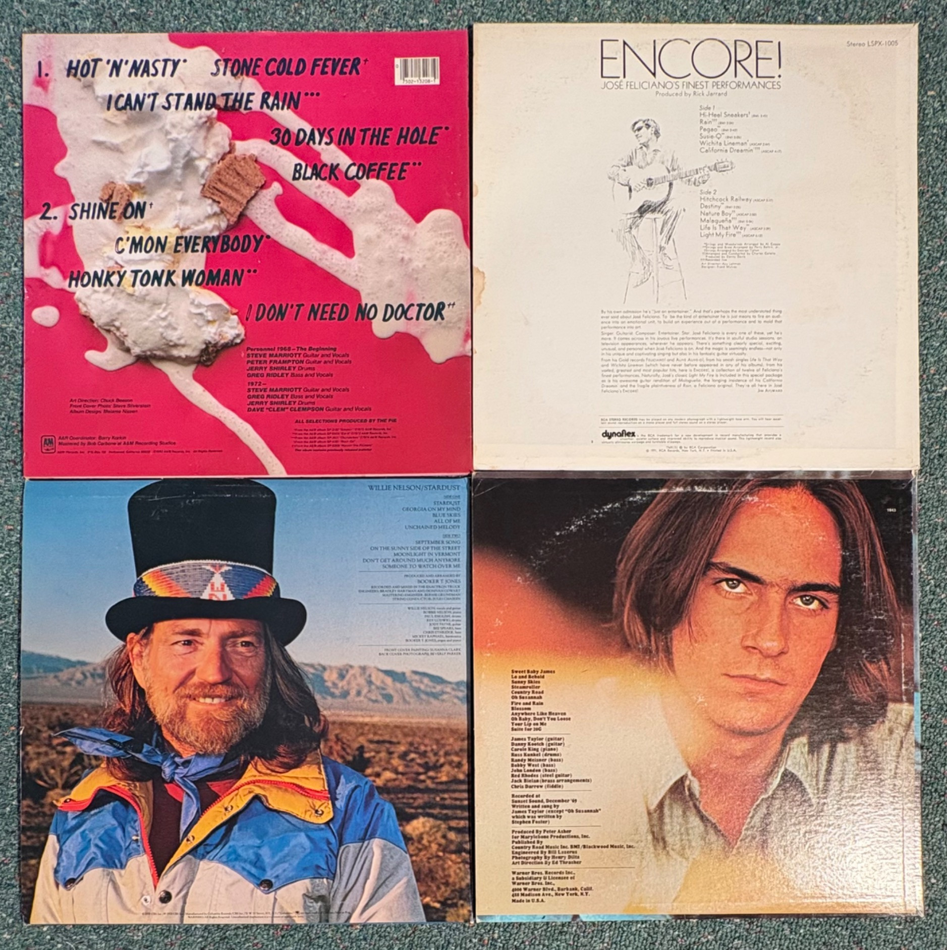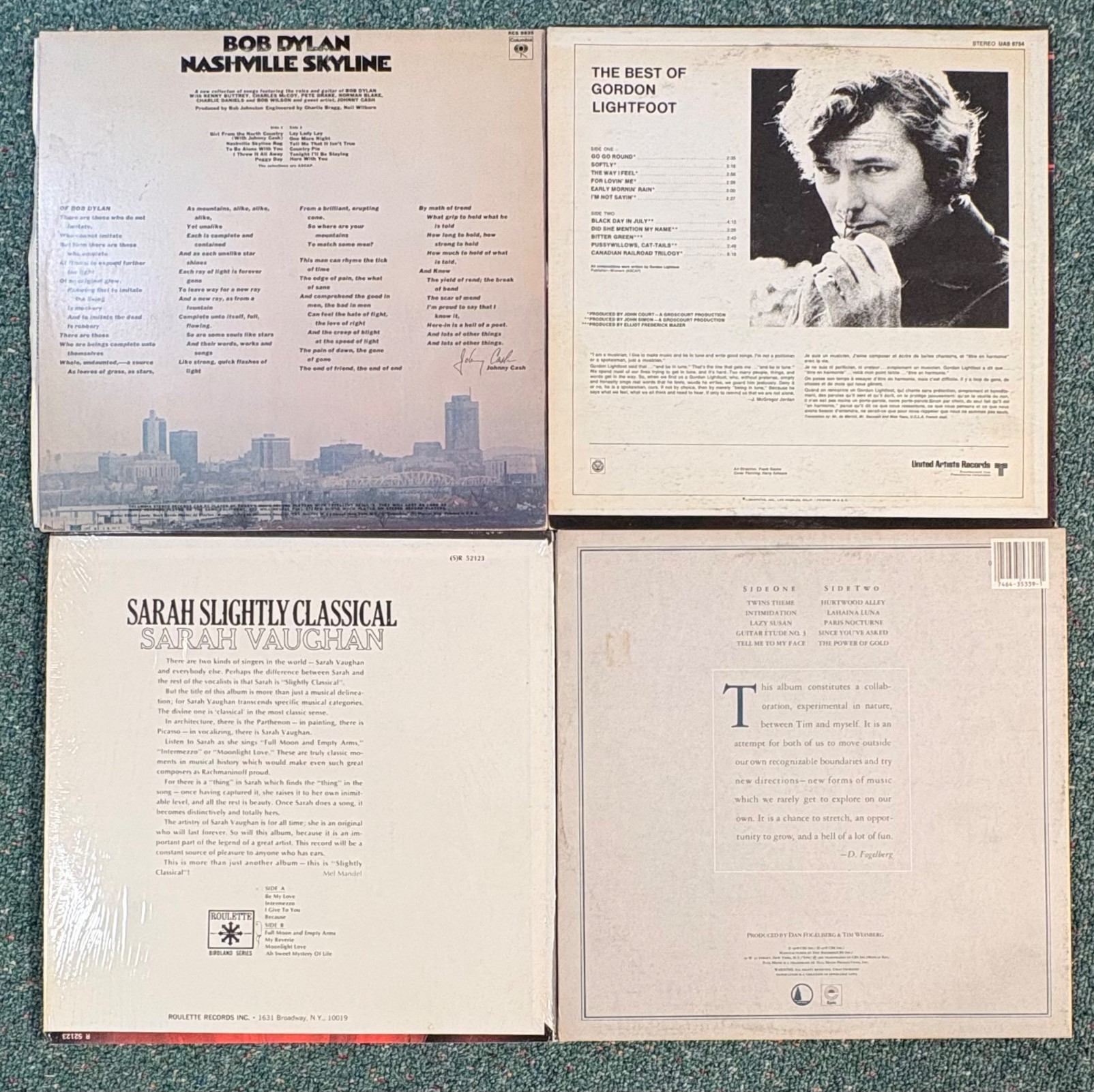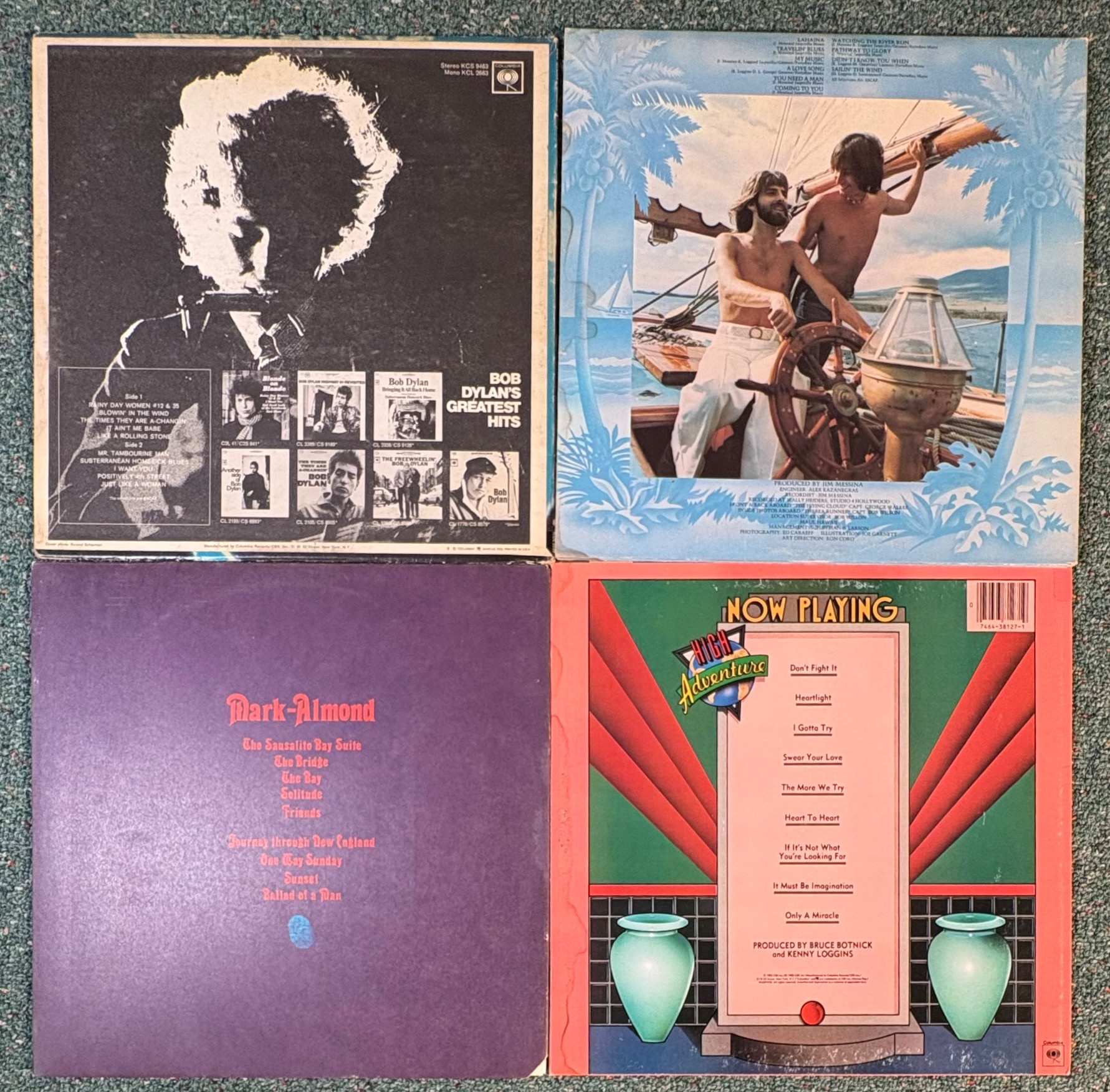 16 vintage vinyl LPs! Our client had eclectic taste and loved his albums - thus, most of these have been lovingly played over the years. We checked to make sure the correct album was in the correct cover and did a cursory glance for any egregious scratches. Some covers reflect heavy use and are worn/split in places/have names written on them. However, the majority are in good used shape. Artists/Bands in this lot include: Bob Dylan (2 albums) Sarah Vaughan Dan Fogelberg & Tim Weisberg Gordon Lightfoot Humble Pie Willie Nelson Jose Feliciano James Taylor Loggins & Messina Kenny Loggins Mark-Almond Kenny Rogers The Mamas & The Papas Mason Proffit Randy Burns Note: Loggins & Messina and one Dylan album missing inner sleeves