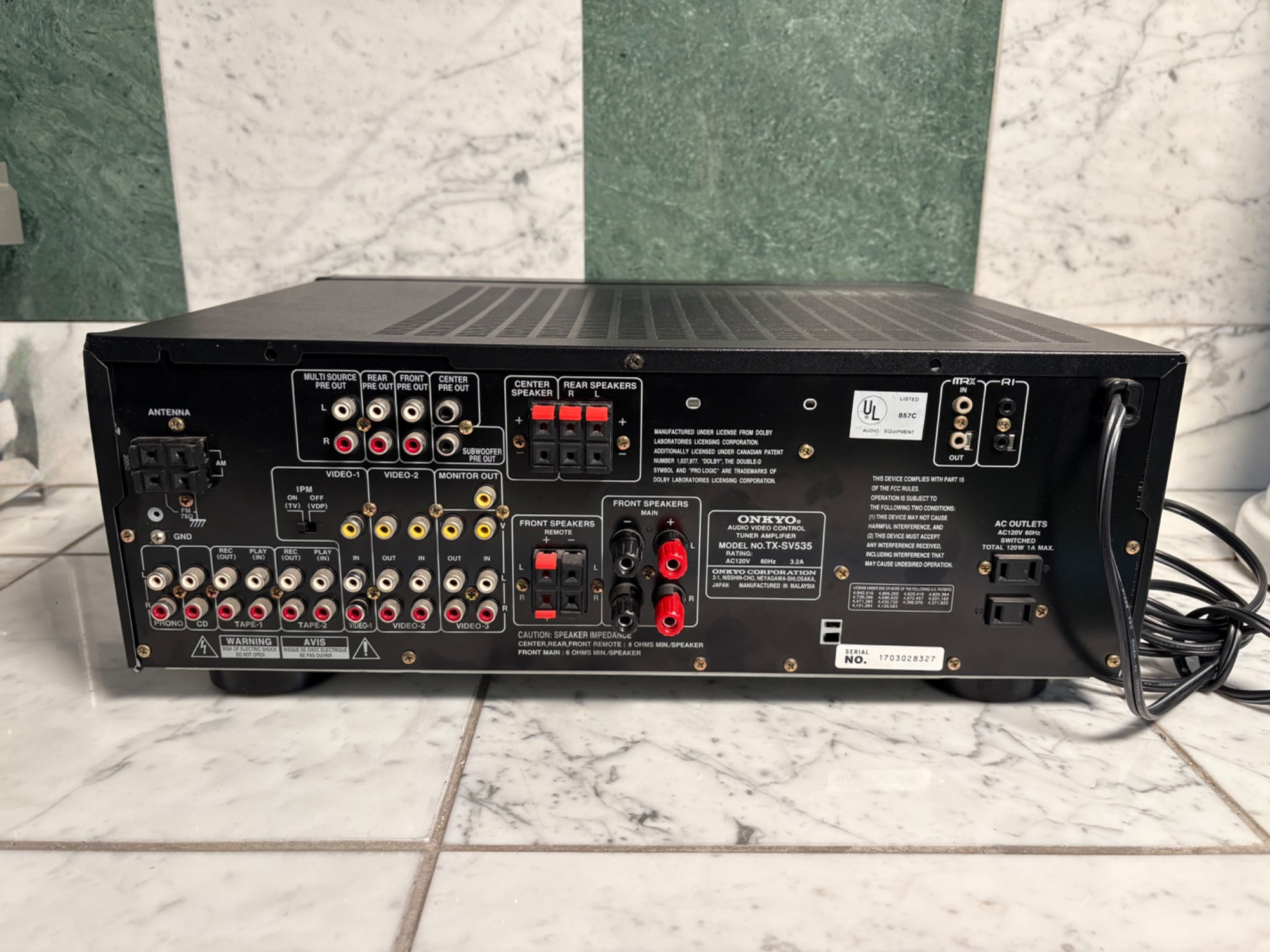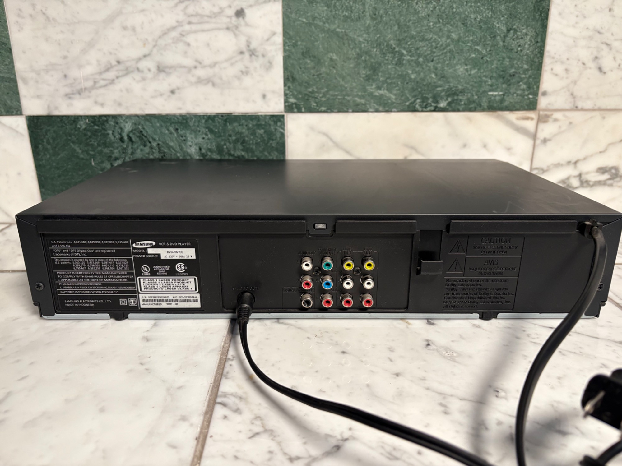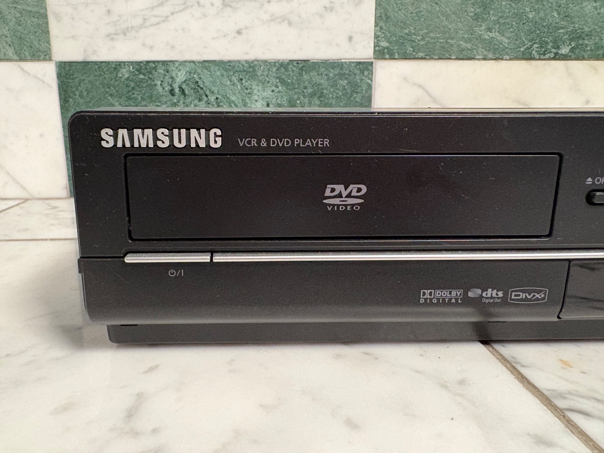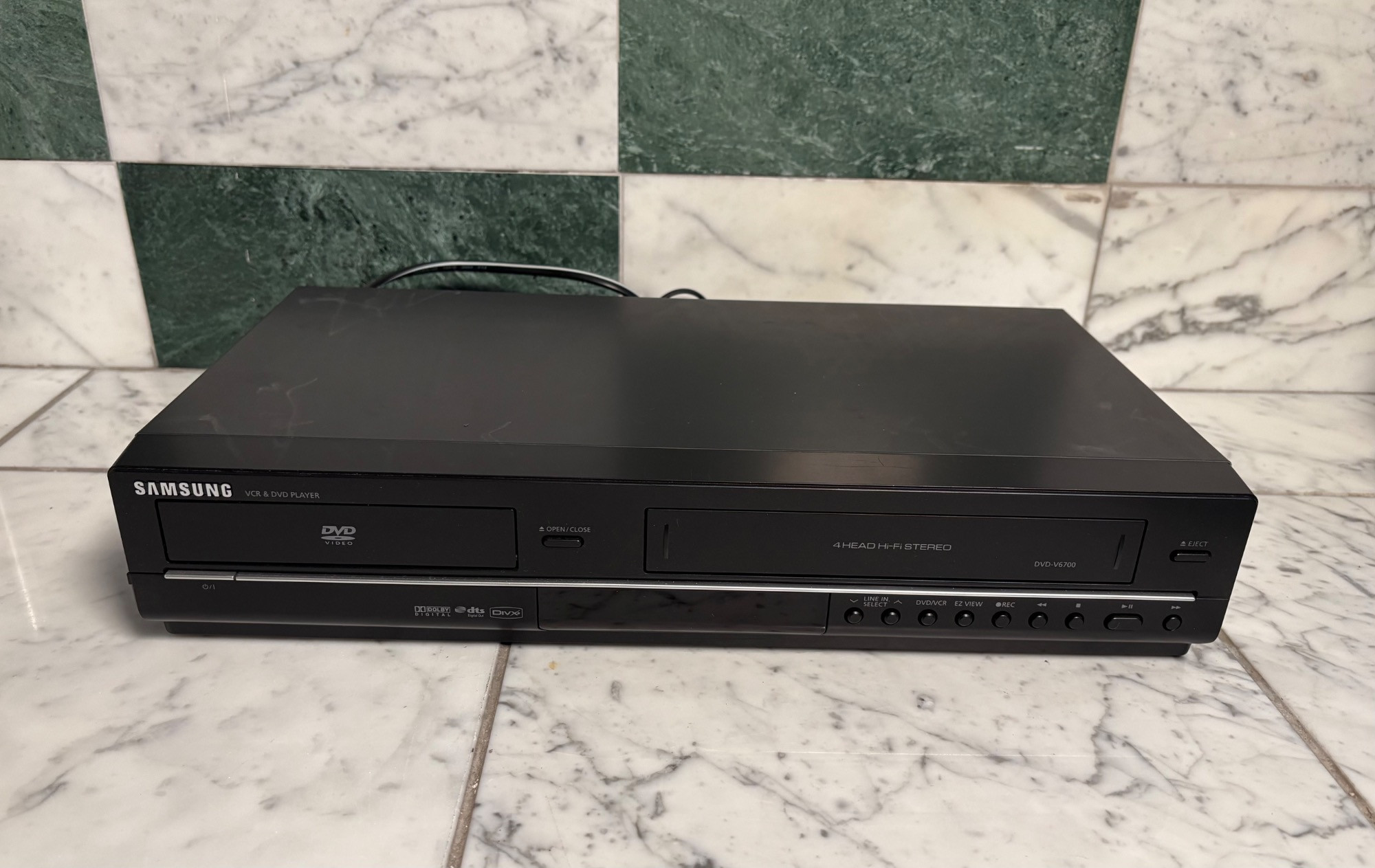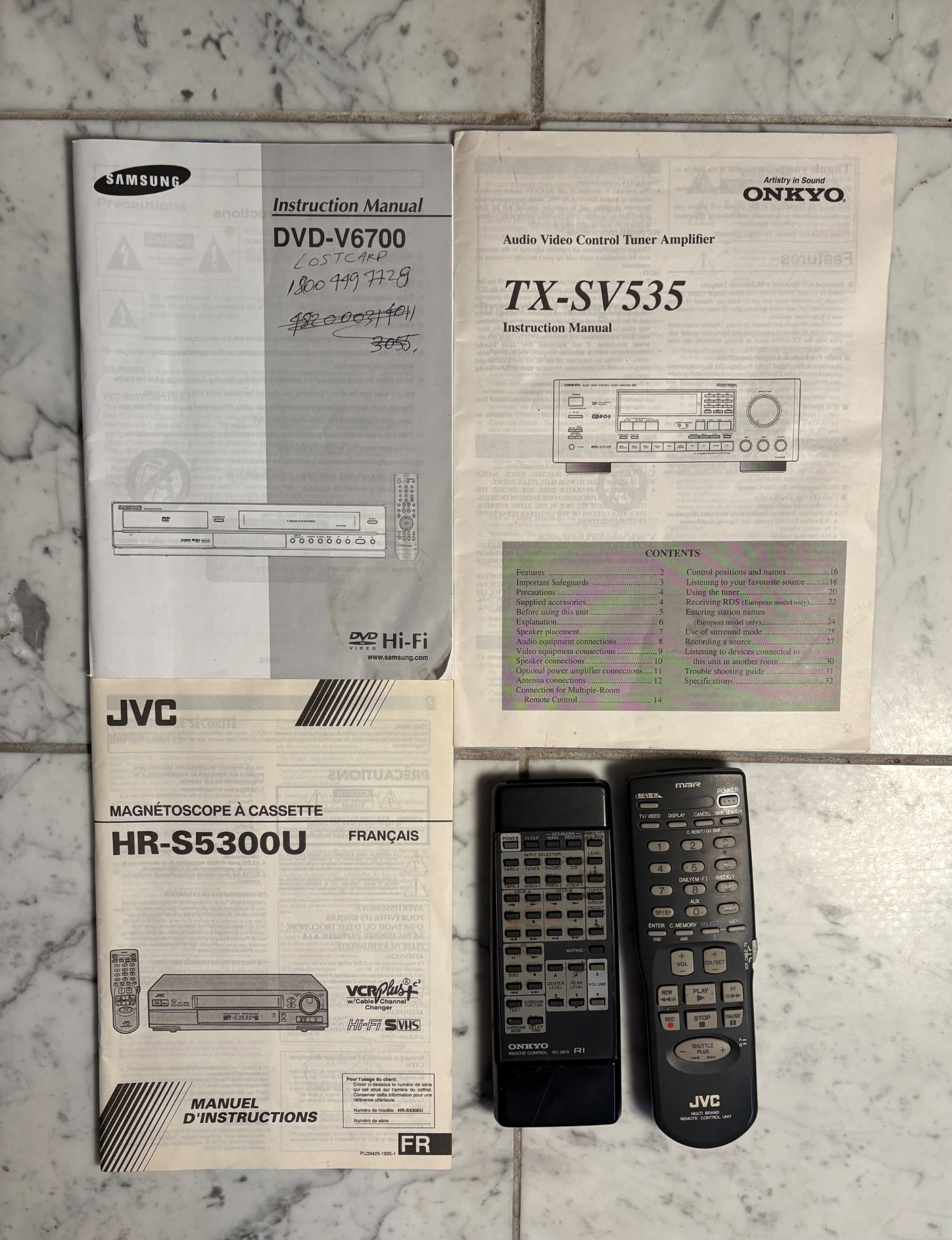 Onkyo Audio Video Control Tuner Amplifier TX-SV535 Dolby Surround Sound Pro Logic Multiple Source Remote System, All Channels Discrete Output Stage. Powers on. JVC HR-S5300U Ultra Spec Drive VCR Player, AV Compu Link. Powers on. . Samsung DVD-V6700 DVD and VCR Player Combo, Dolby Digital DTX DIVX. Powers on.