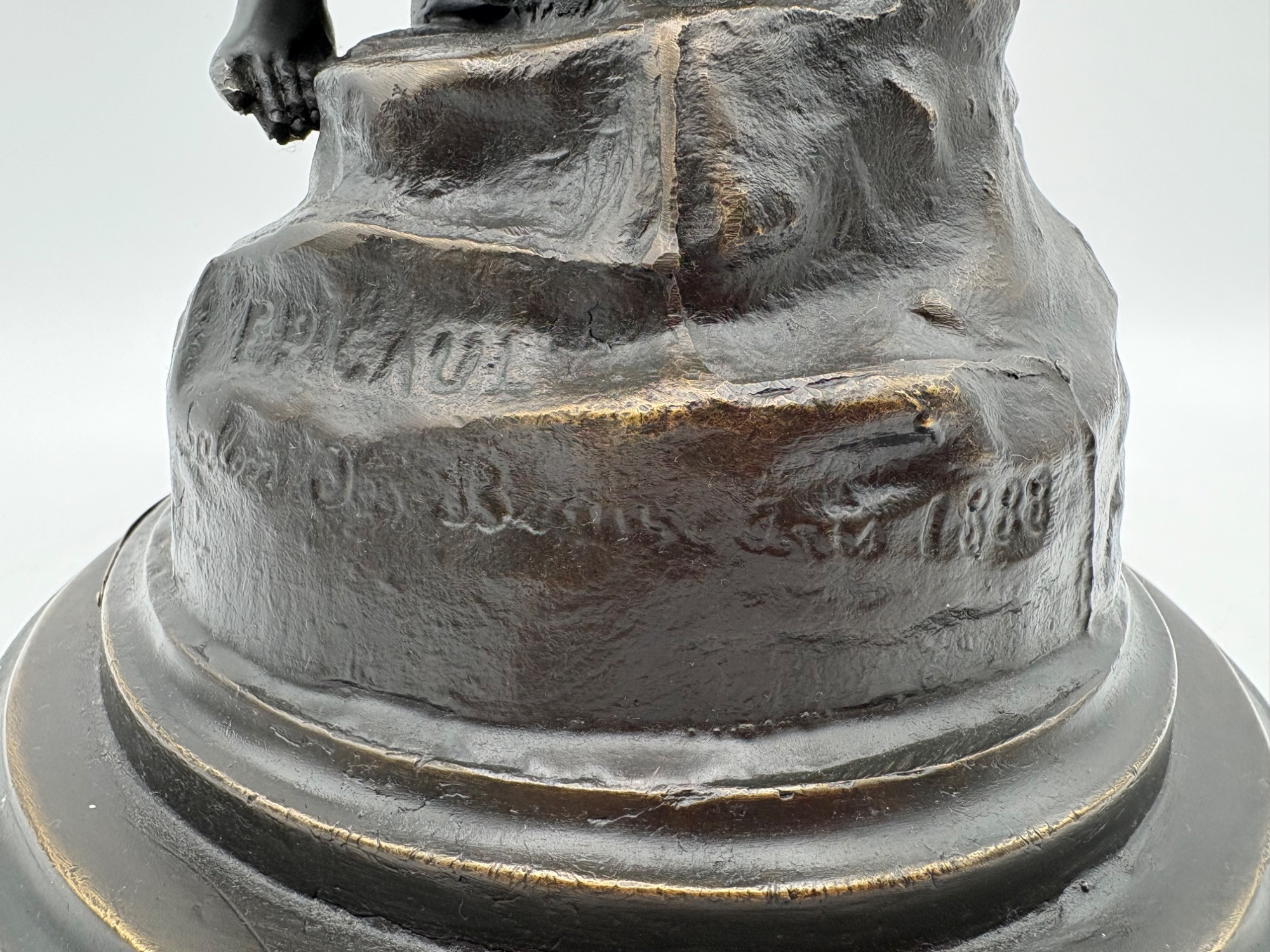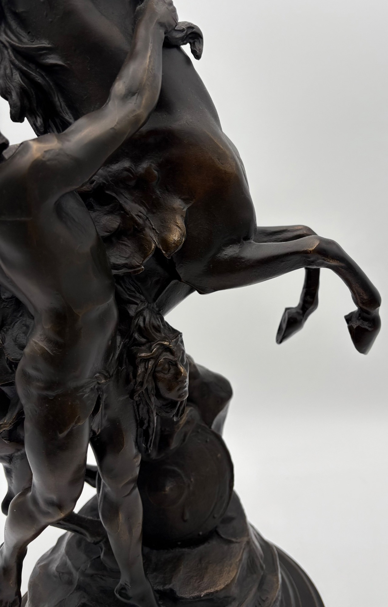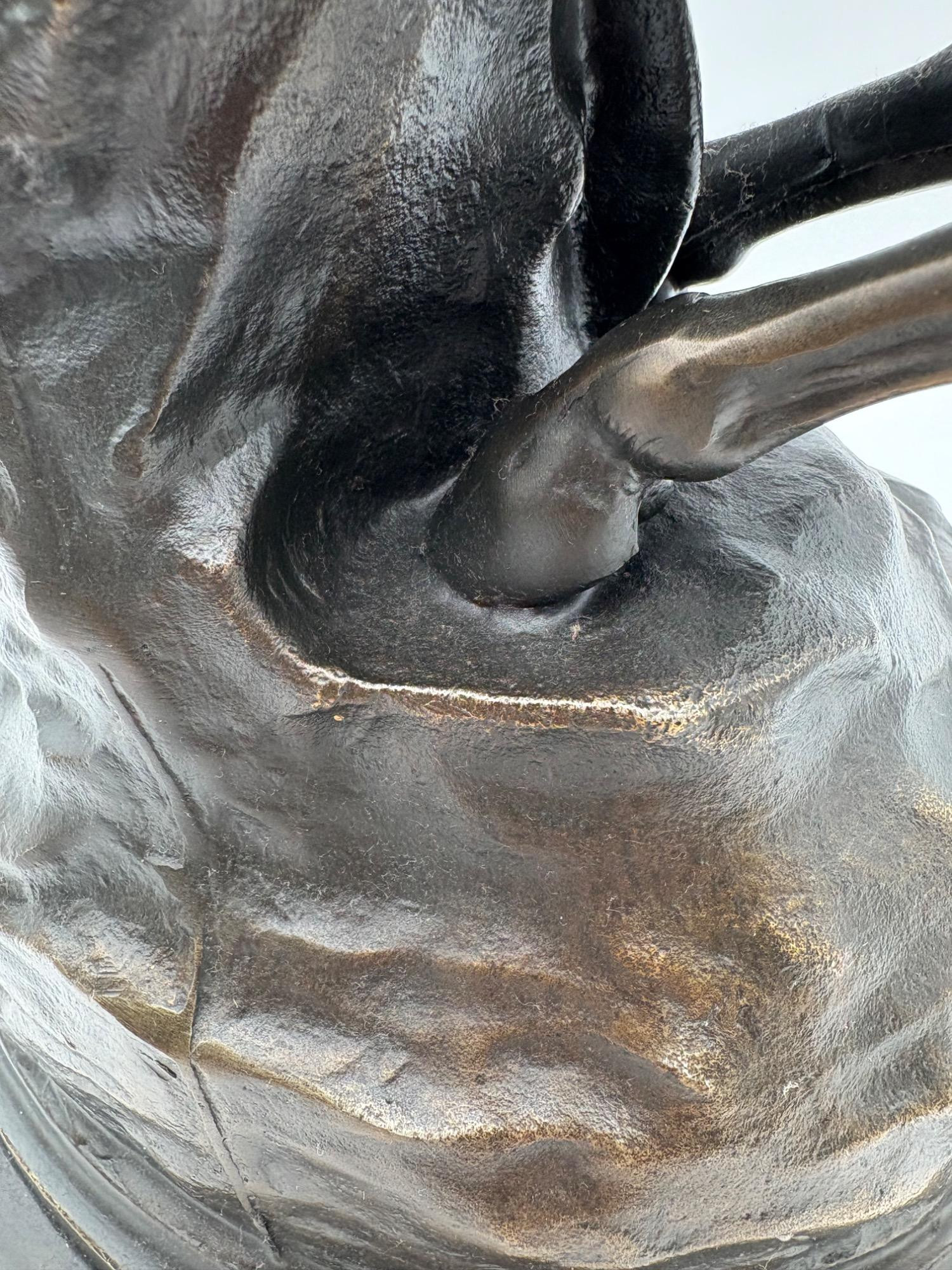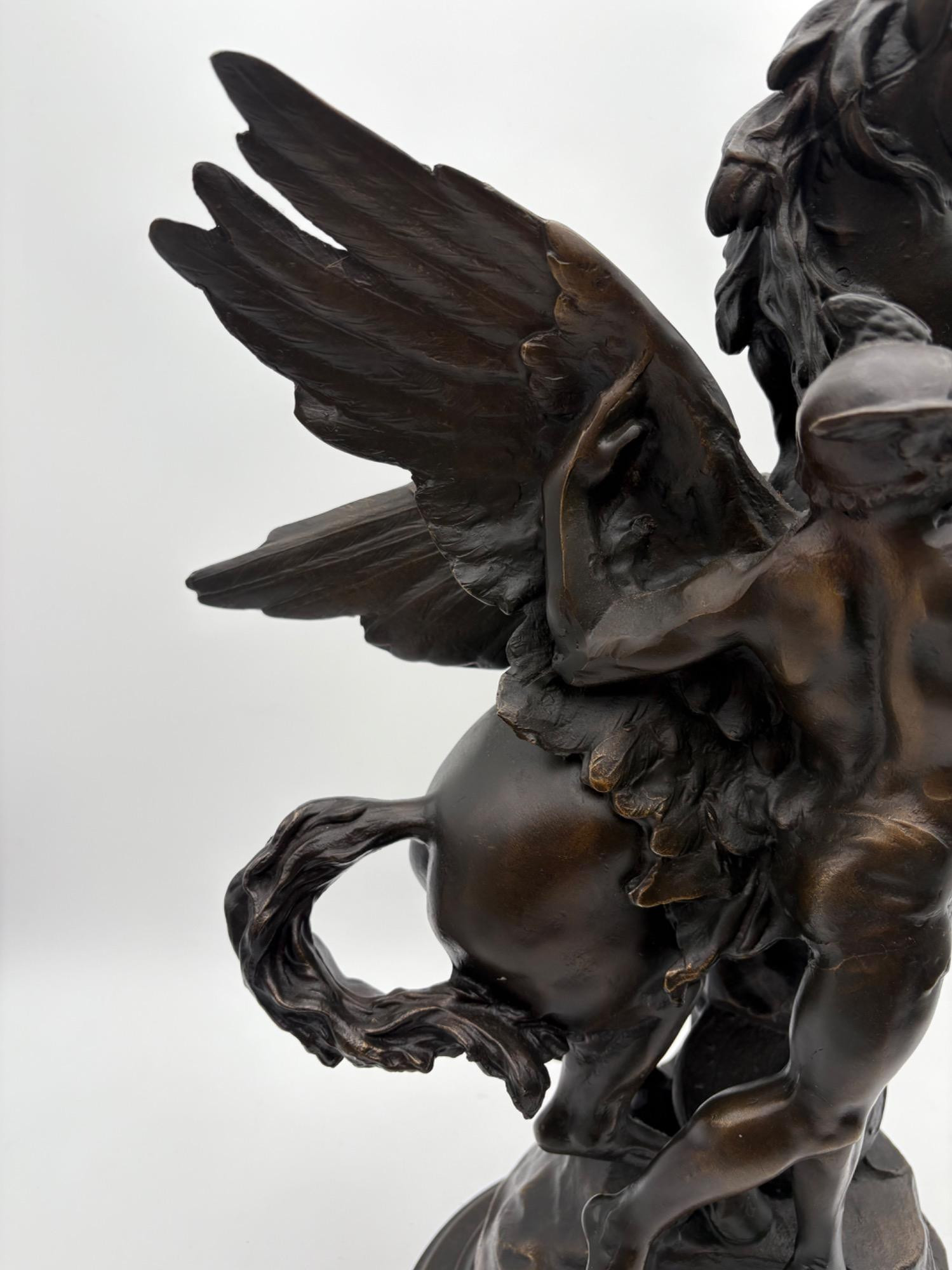 Metal reproduction of Emile Louis Picault's "Pegasus". Heavy cast metal with a dark brown finish. Note that the finish has worn in a couple of places - please see photos for details. Almost 2' high.