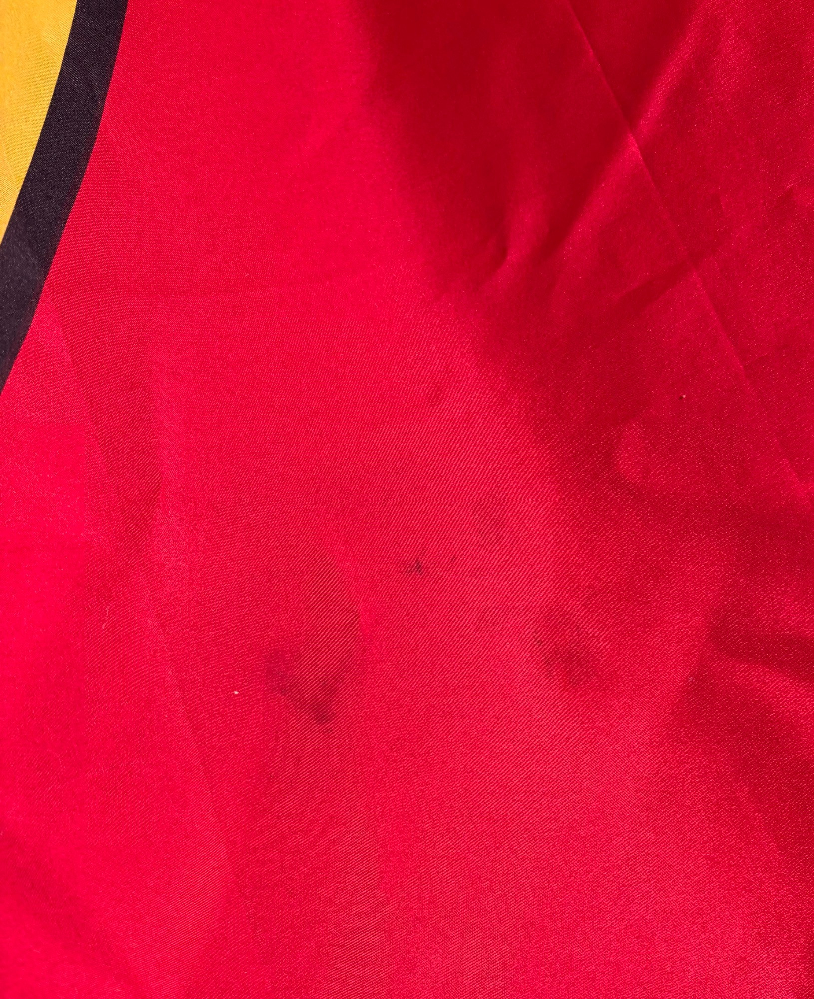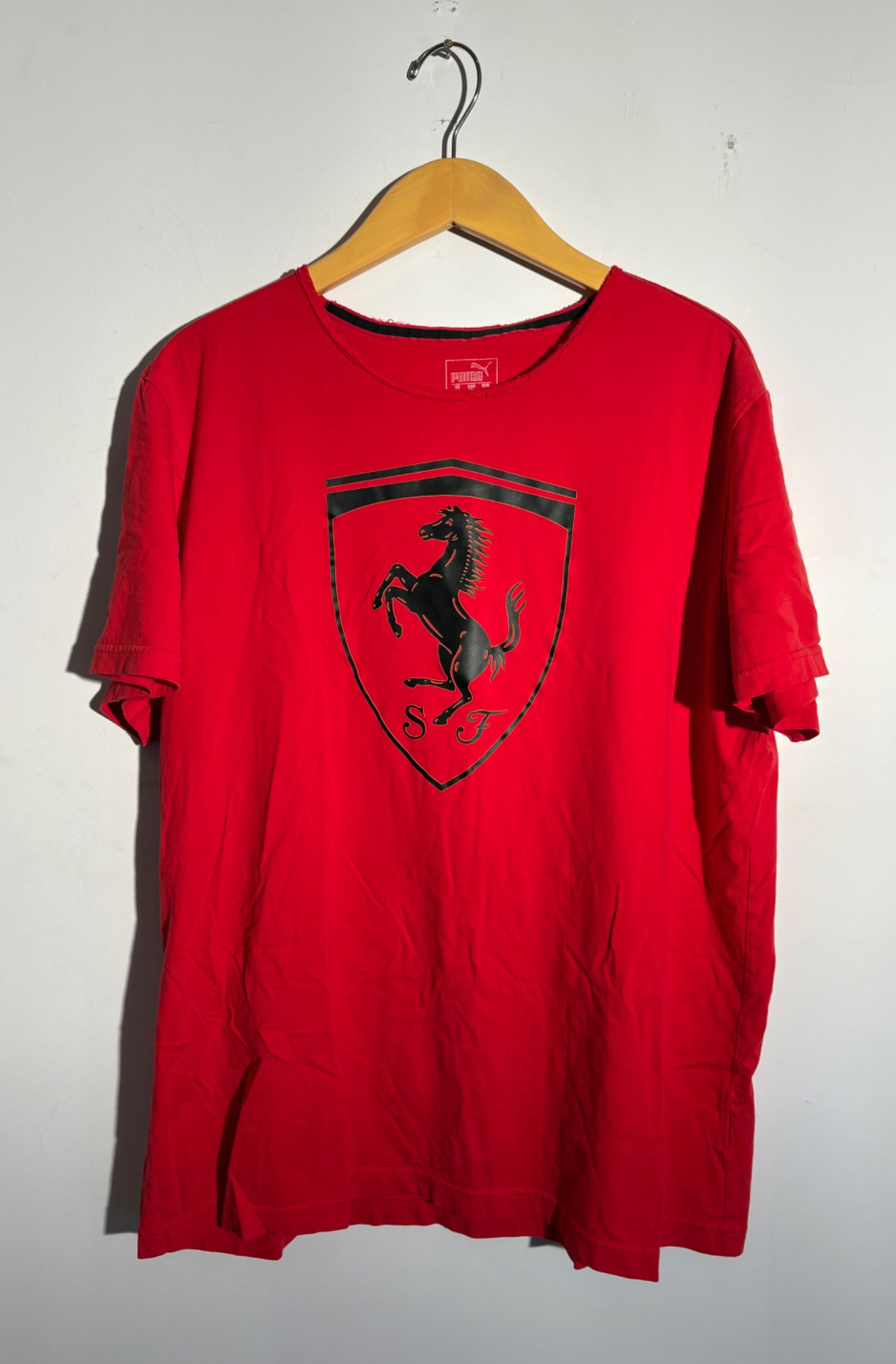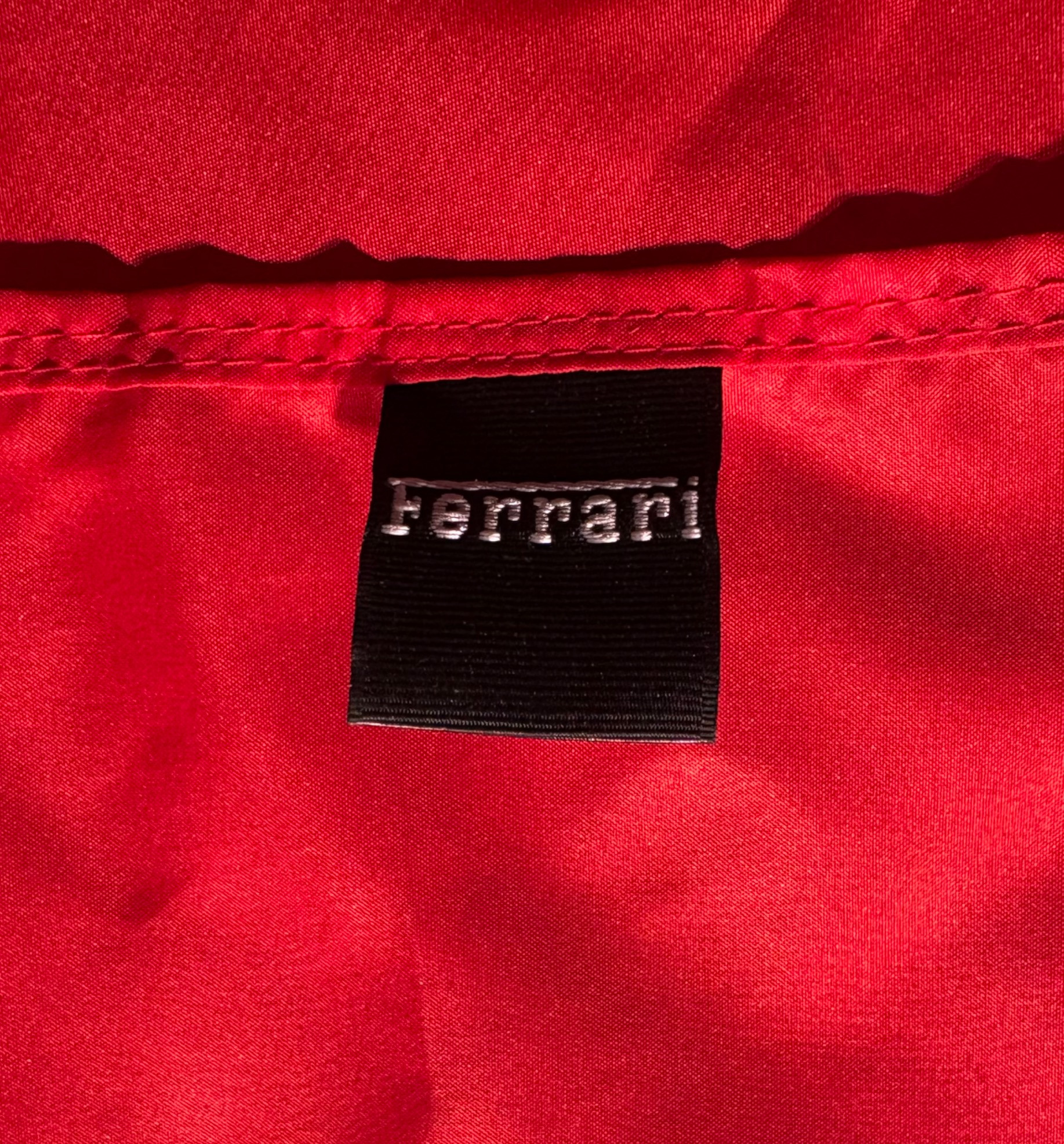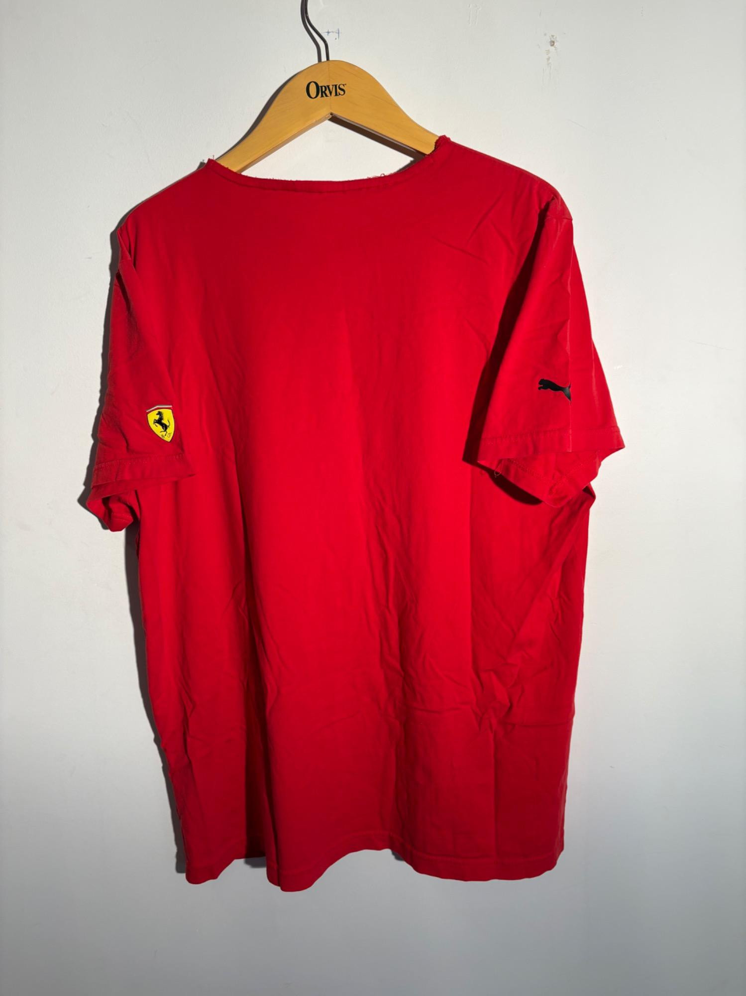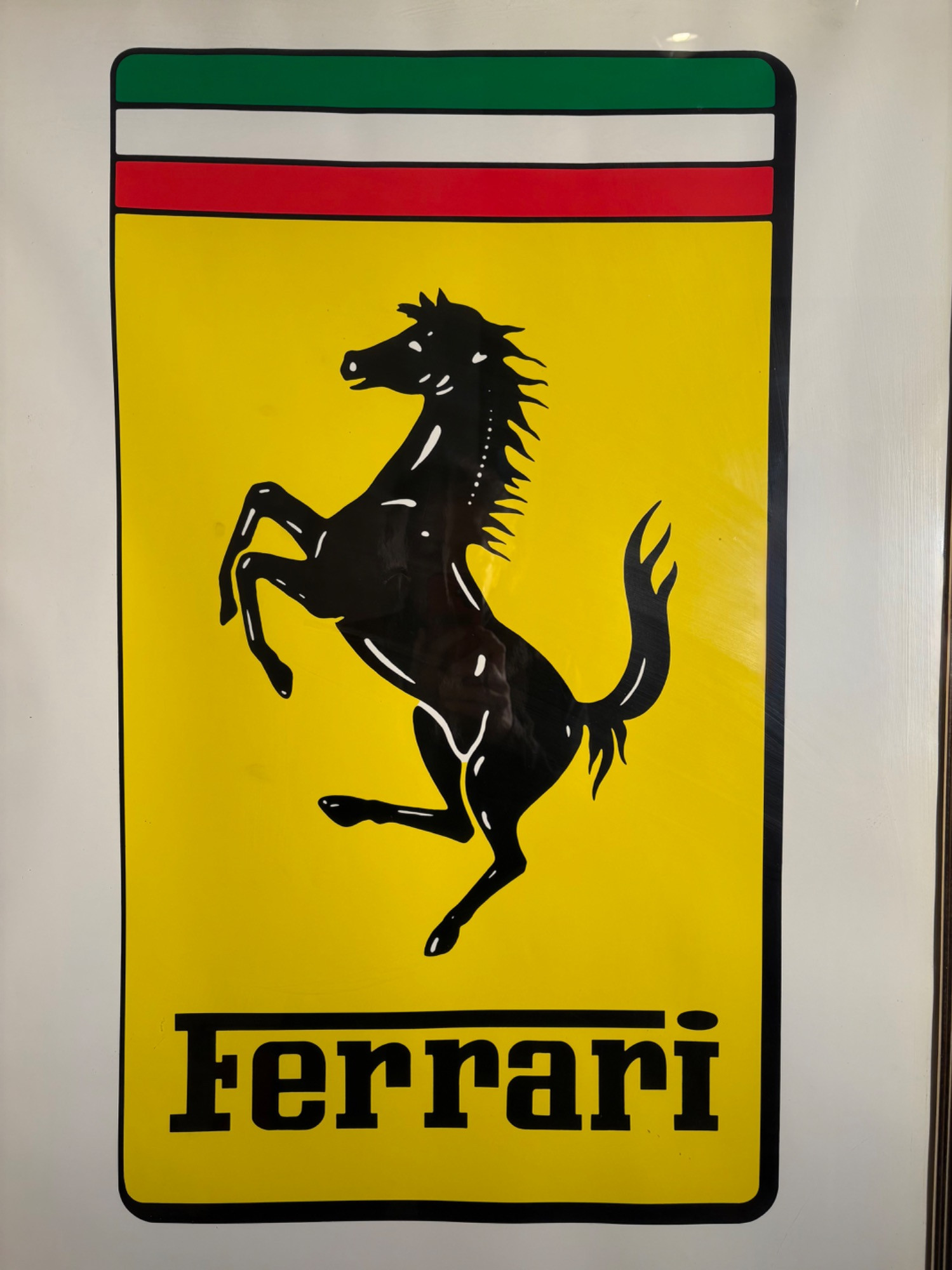 Framed Ferrari poster in brilliant bright colors. Gold frame is acceptable, but we would suggest reframing or removing the glass & dusting the poster as there is some debris between the poster & the glass - poster itself appears to be in excellent condition. Measures approx. 38.5" H x 28.5" W. See last photo for closeup. Red Ferrari coffee mug with logo on one side. Appears to be new. Red Ferrari shirt - Size XXL - with Puma emblem on left sleeve and Ferrari emblem on right. Note that the collar has been removed & the neck edge serged. Glass Ferrari model (just under 7" L), Giant Ferrari flag on aluminum pole - we think this was probably used in a parade with the client’s Ferrari. Flag is huge - measures 57" H x 76" W and is mounted on a 9' aluminum pole. . Flag needs a good wash but otherwise in great condition. Multiple issues of "Forza - The Magazine about Ferrari". Dates range from 2006 to 2016. Lots and lots of reading for the Ferrari fan.