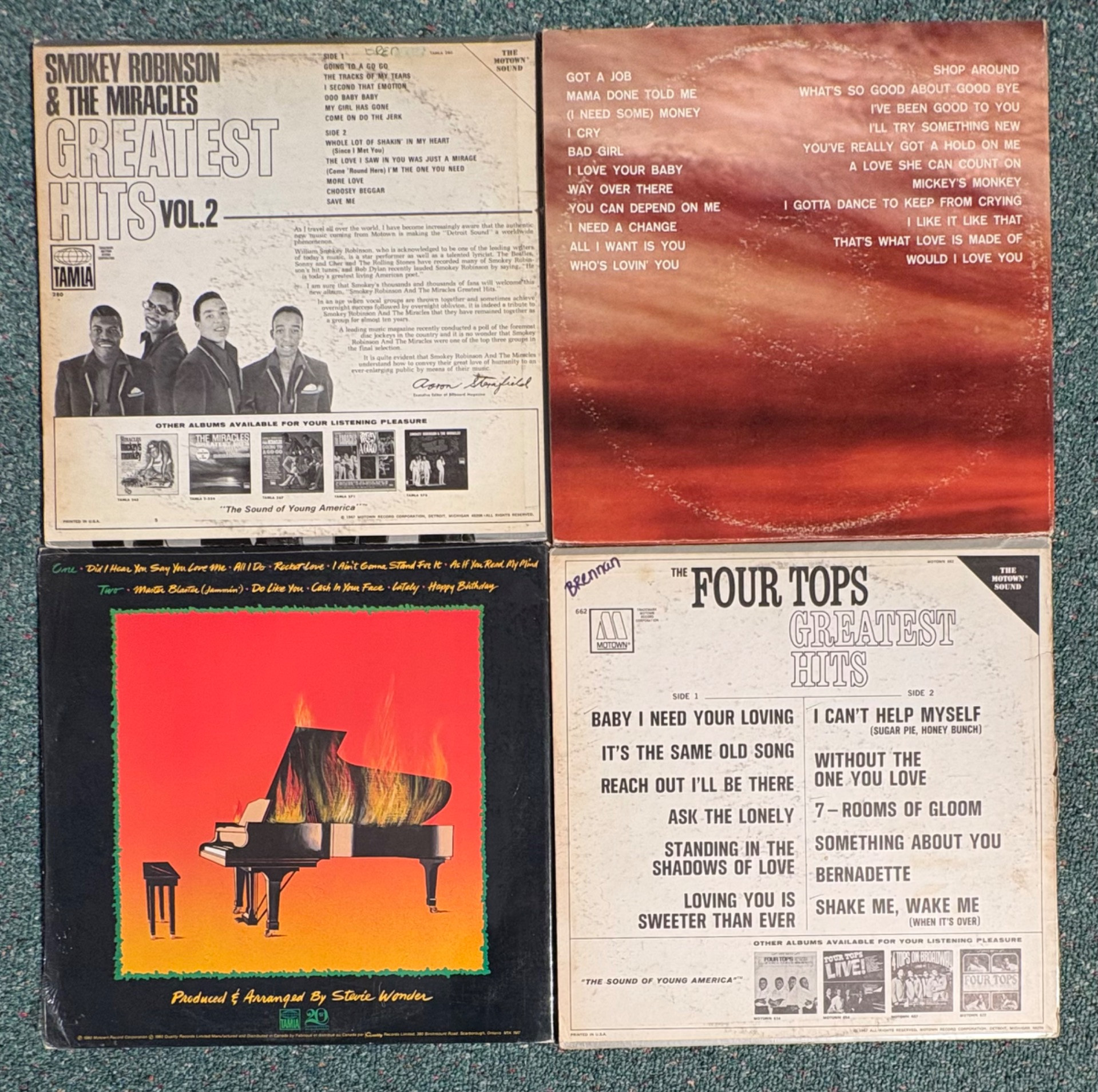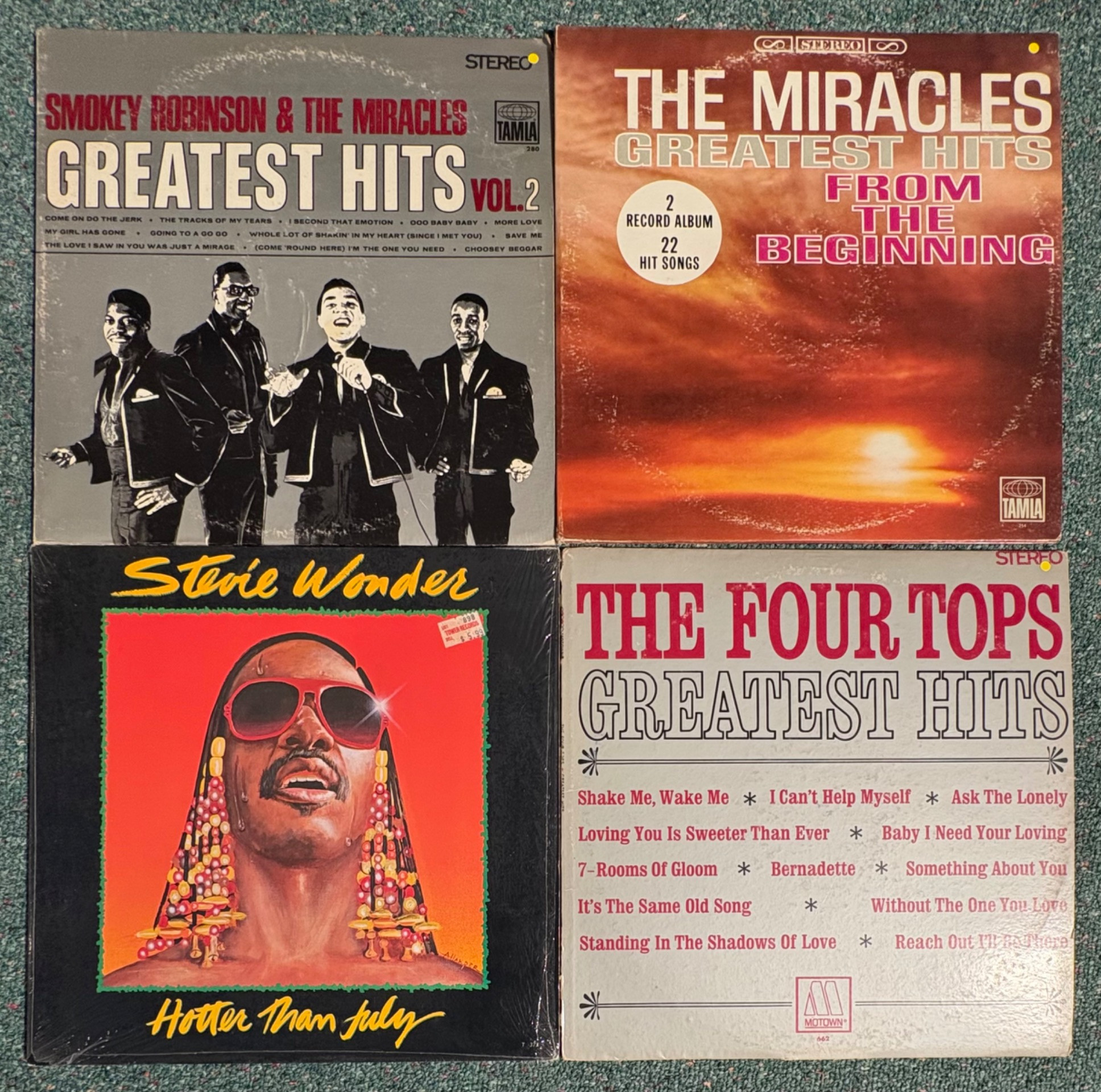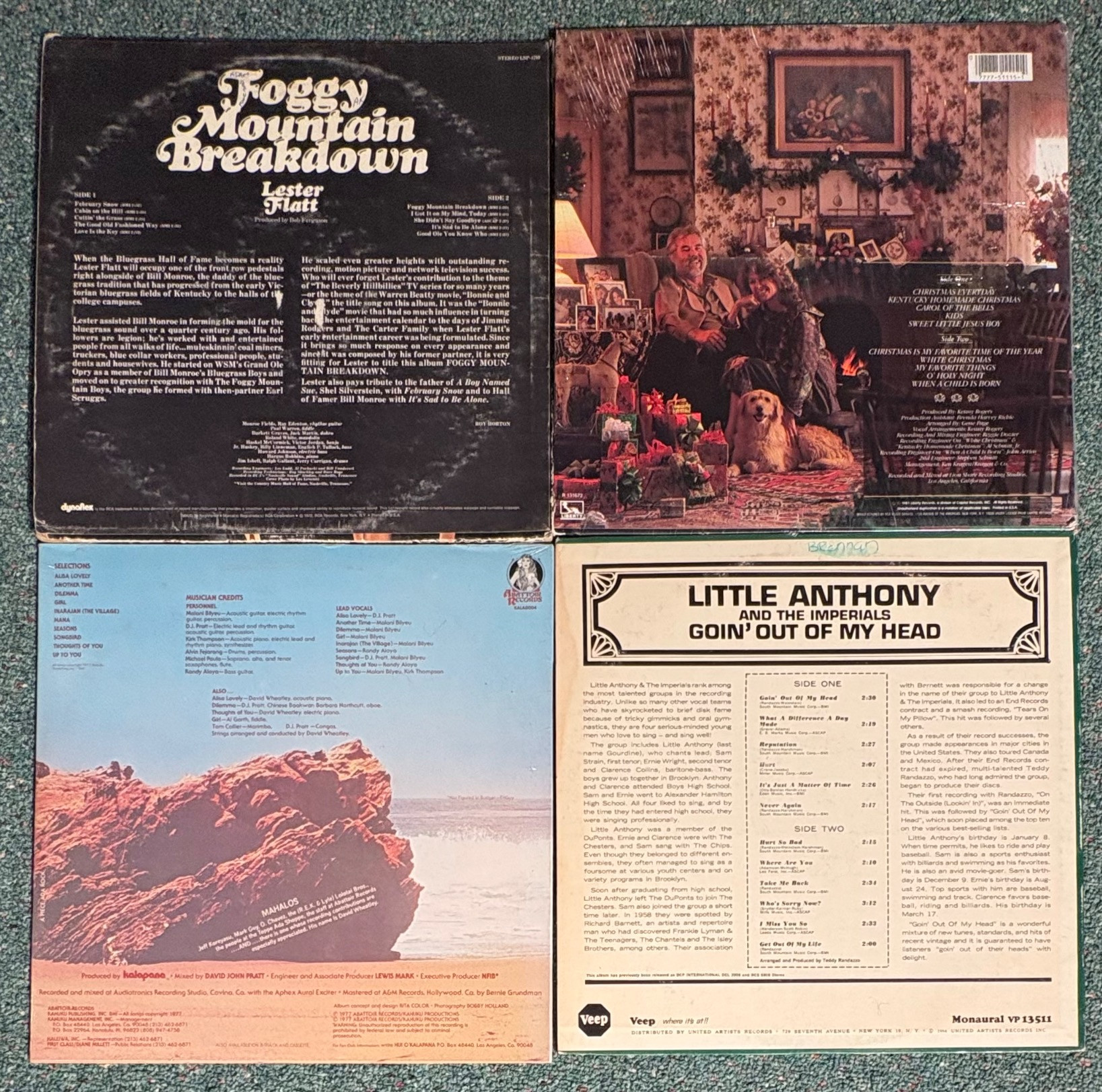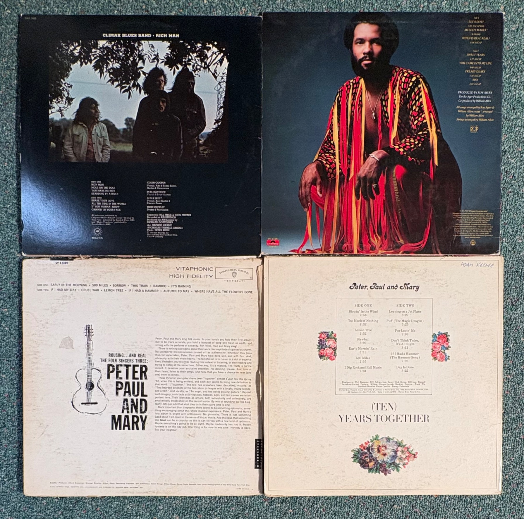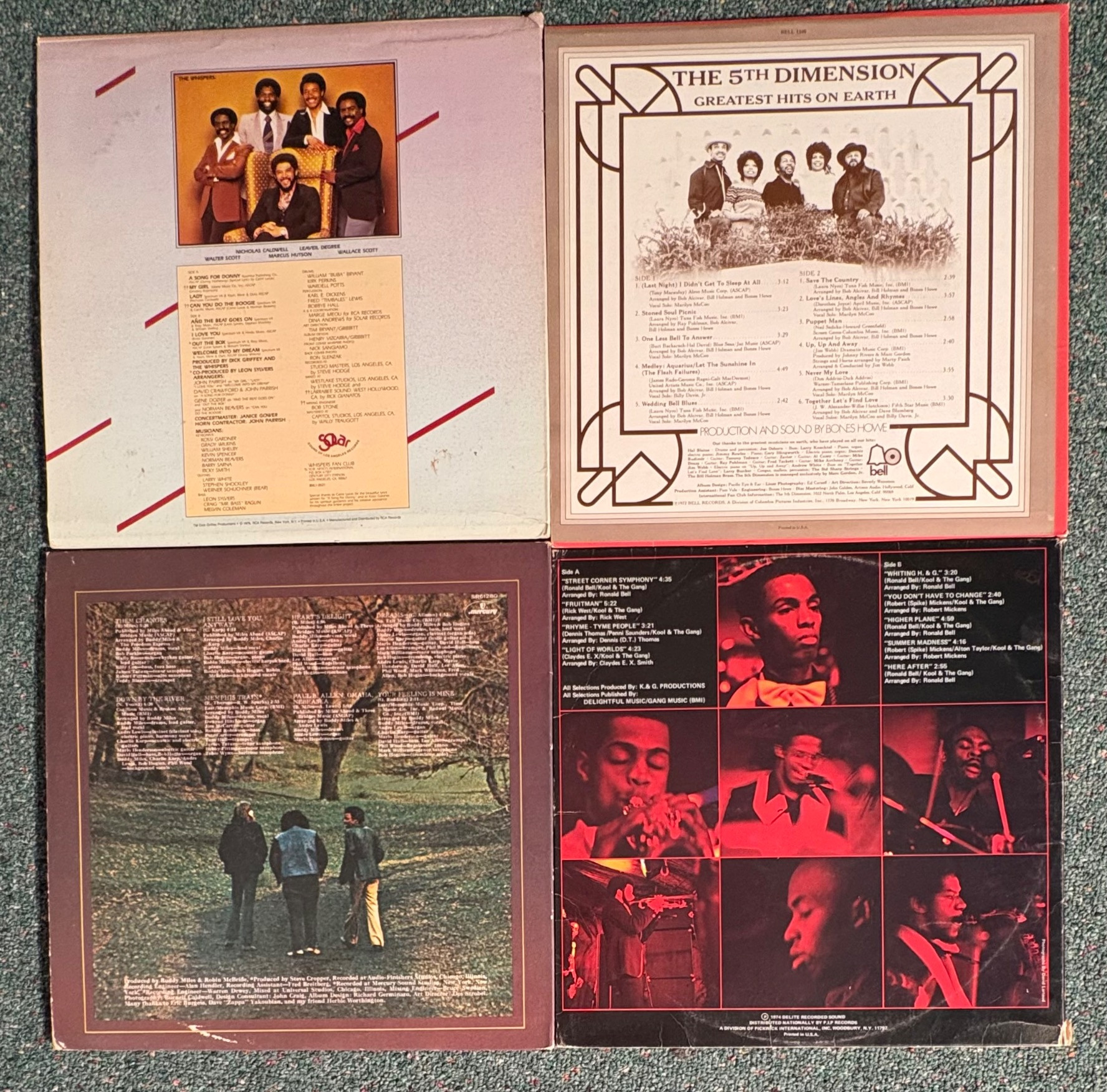 16 vintage vinyl LPs! Our client had eclectic taste and loved his albums - thus, most of these have been lovingly played over the years. We checked to make sure the correct album was in the correct cover and did a cursory glance for any egregious scratches. Some covers reflect heavy use and are worn/split in places/have names written on them. However, the majority are in good used shape. Artists/Bands in this lot include: The Four Tops The Miracles Stevie Wonder Smokey Robinson Roy Ayers Peter, Paul & Mary (2 albums) Climax Blues Band Lester Flatt Miscellaneous Hawaiian Artists Kenny Rogers Little Anthony & The Imperials The Whispers Buddy Miles The Fifth Dimension Kool & The Gang