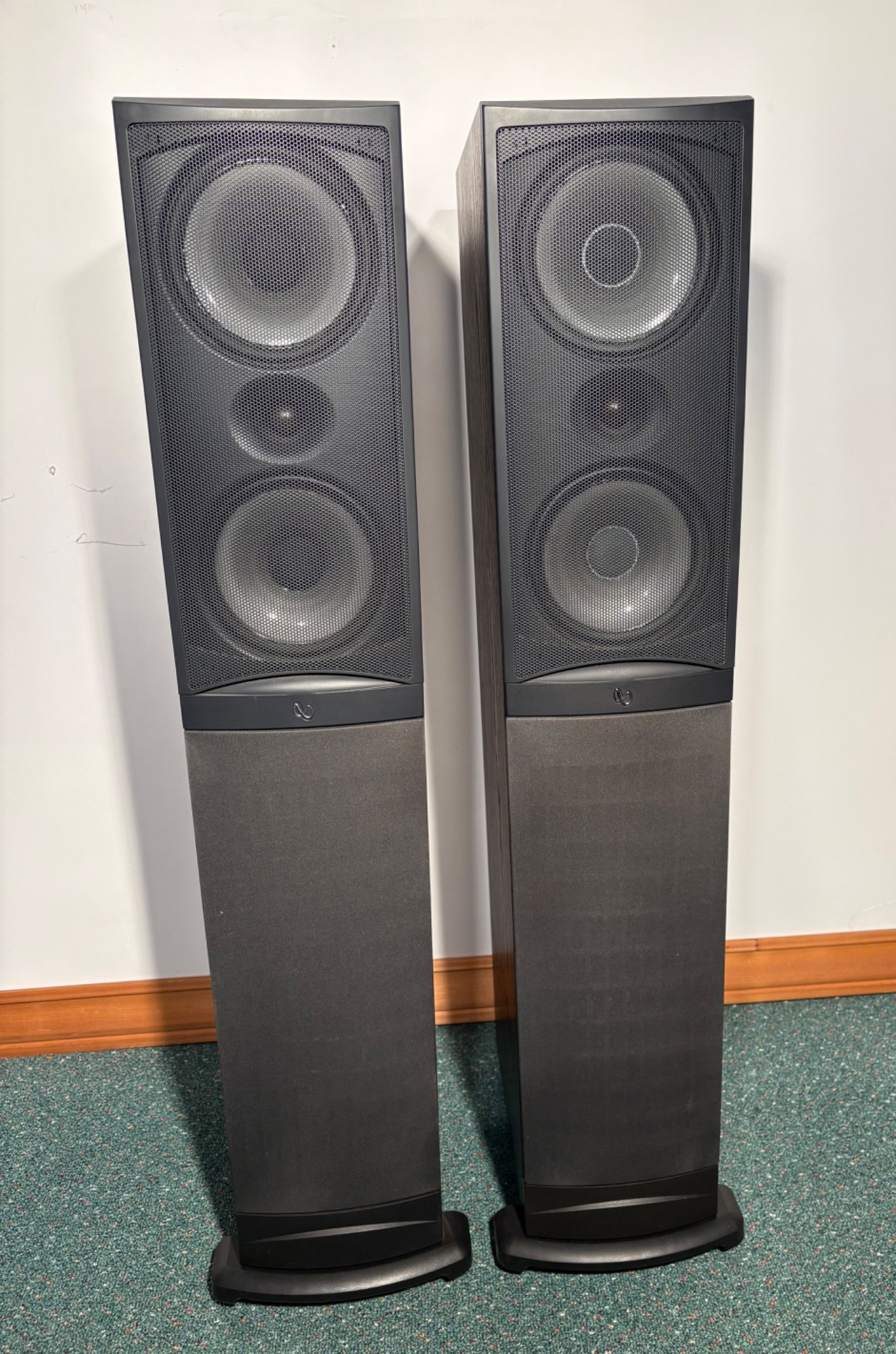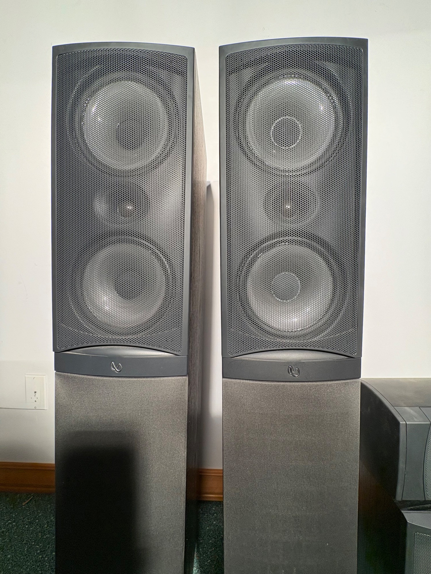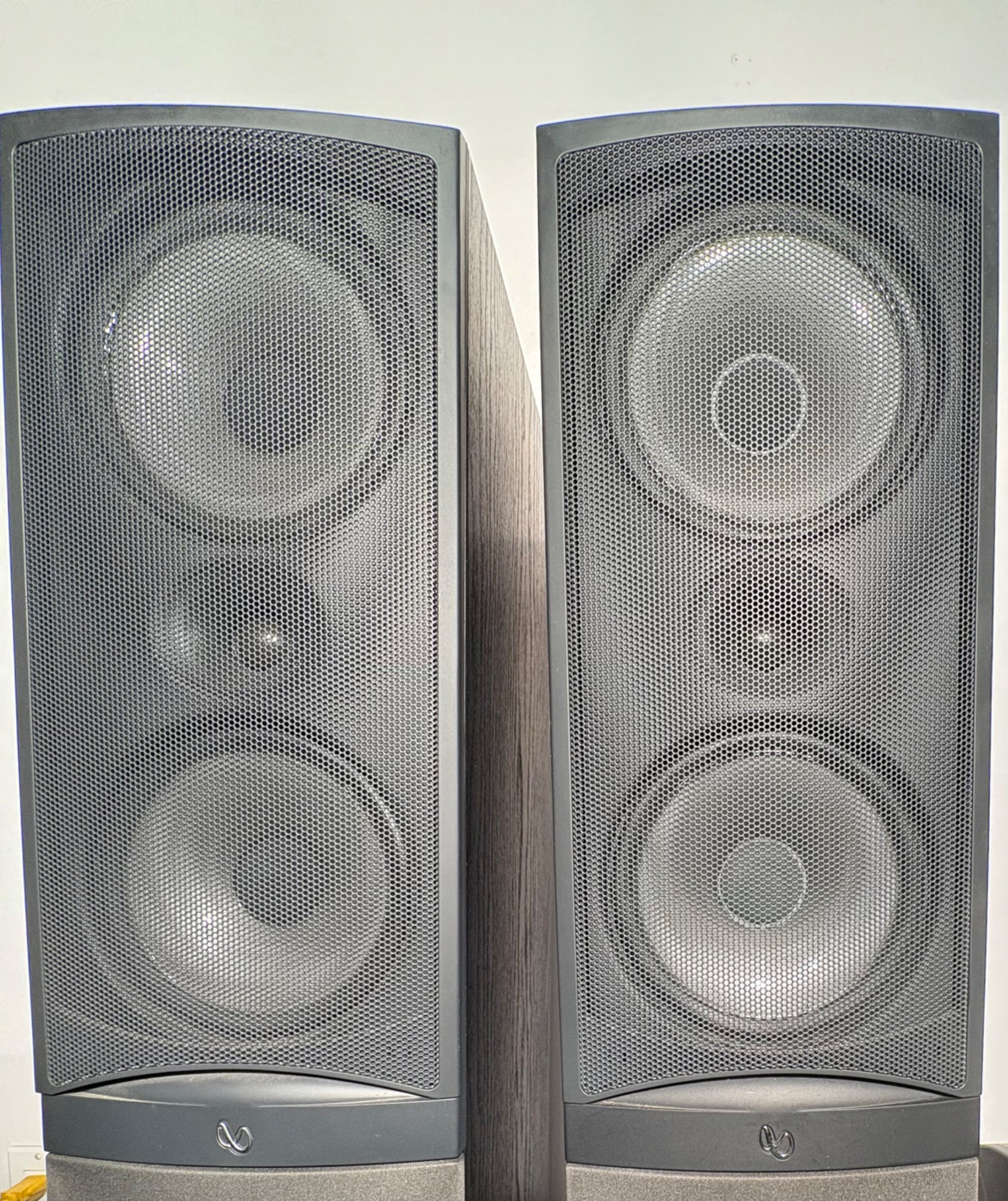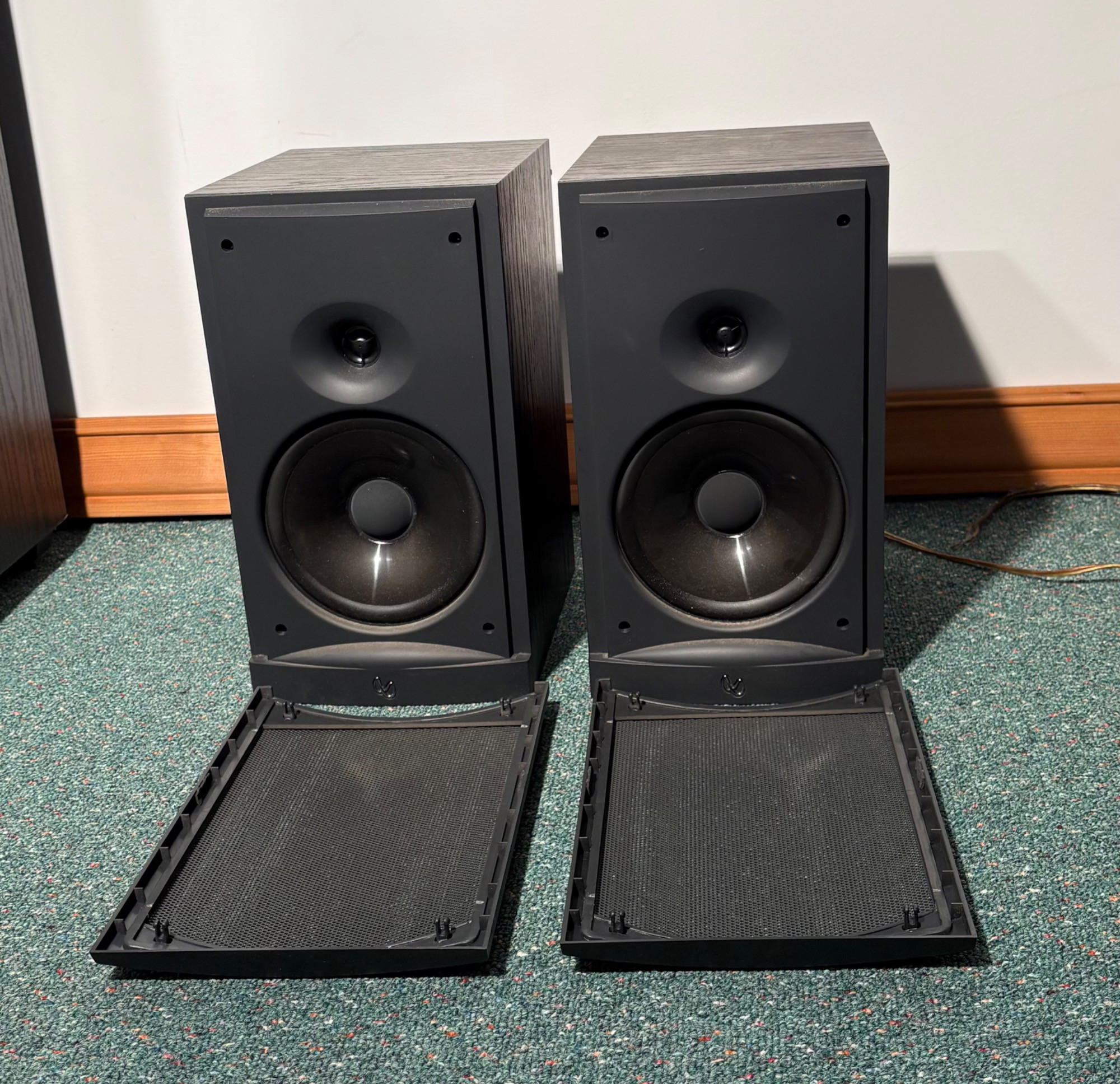 Total of 5 speakers from Infinity Infinity Reference 2000.4 black tower stereo speakers. 8 ohm 15-150 Watts. (2 speakers) Tower speakers measure 40" J x 7.5" W x 12.5" D. Infinity Reference 2000.2 8 ohm bookshelf speakers. 15-100 Watt. (2 speakers) Bookshelf speakers measure 13 " H x 7.5" W x 10" D. Infinity center channel speaker. 10-100 Watt 8 ohm Model CC-2 332141 001812 with “Voice Matching” knob in back; comes with angled support base. All untested as they had been disconnected from stereo components. Local Pickup Only.