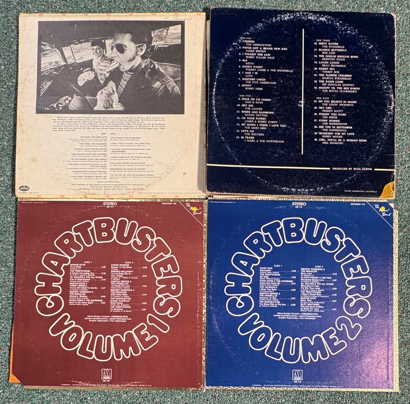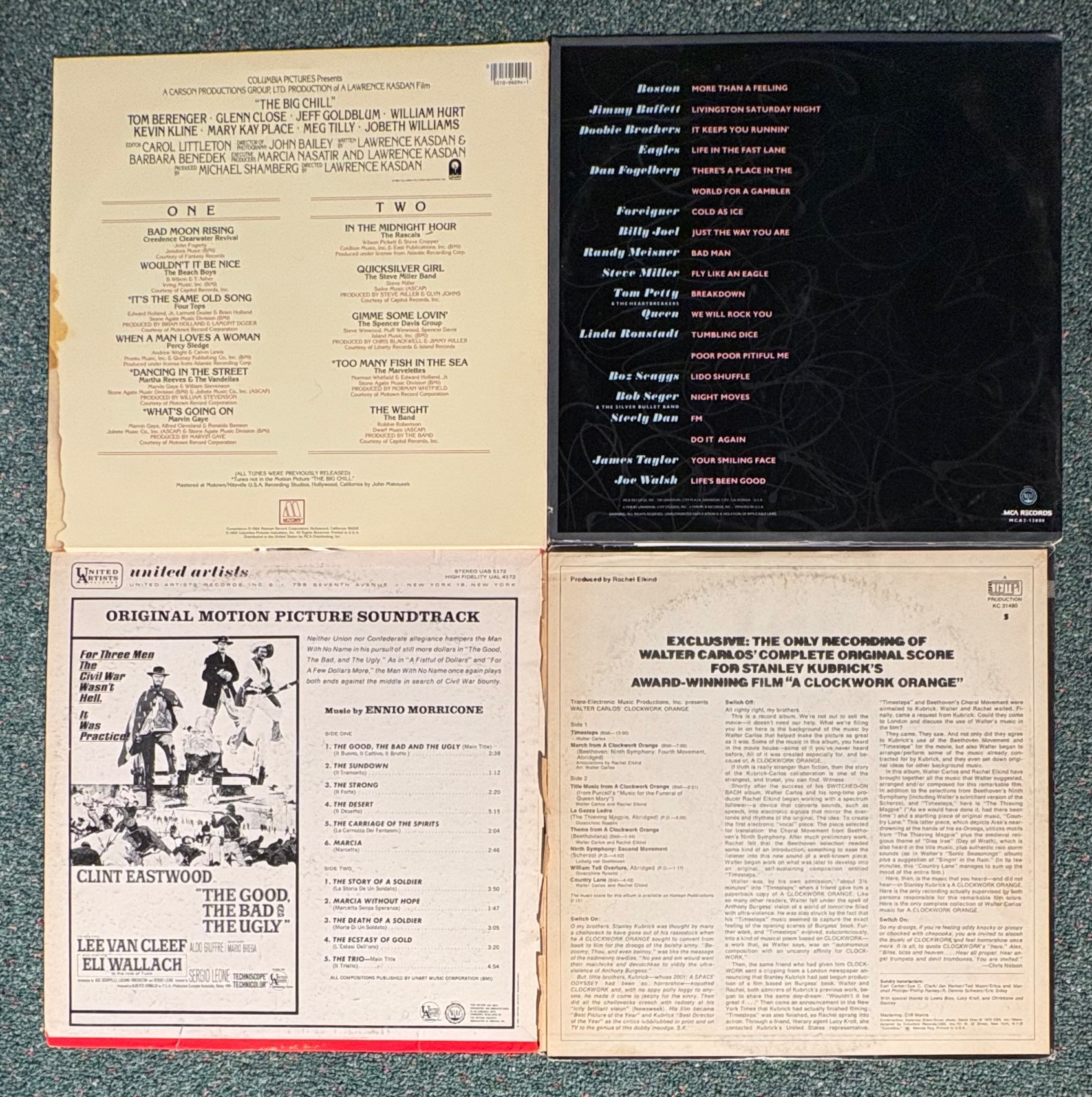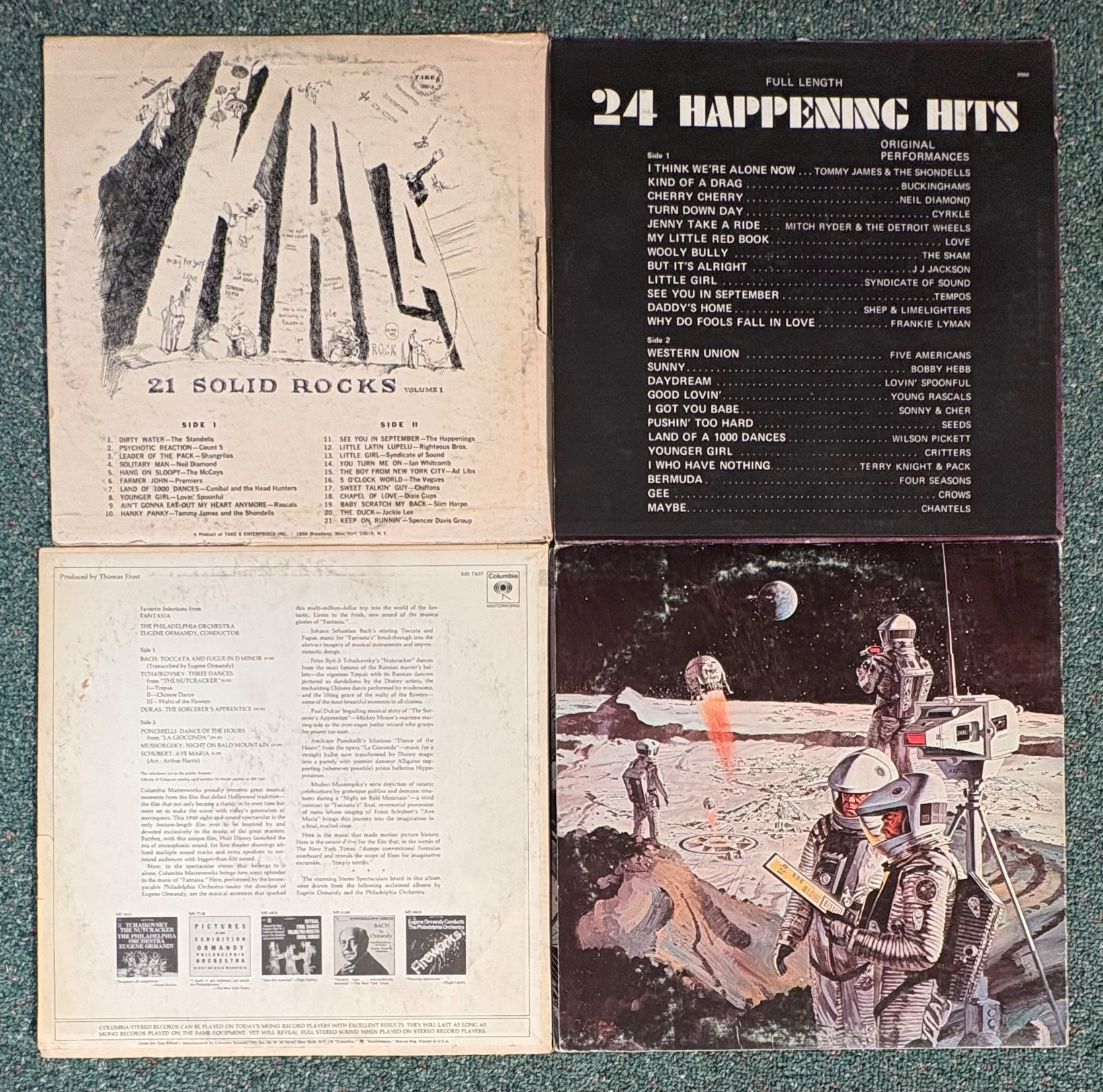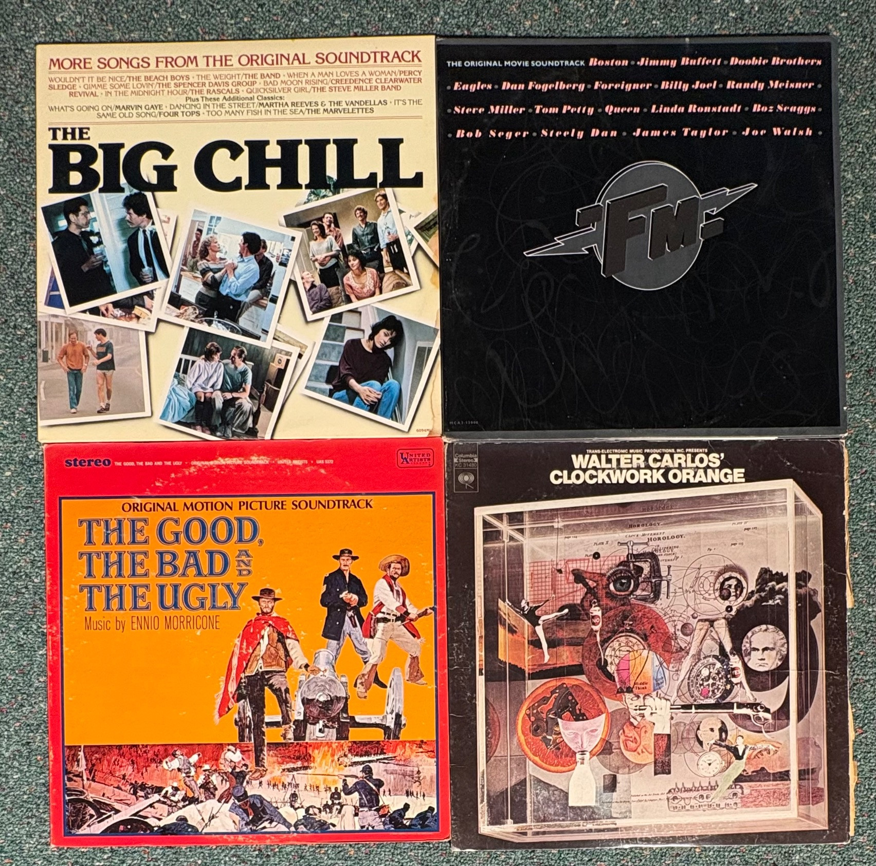16 vintage vinyl LPs! Our client had eclectic taste and loved his albums - thus, most of these have been lovingly played over the years. We checked to make sure the correct album was in the correct cover and did a cursory glance for any egregious scratches. Some covers reflect heavy use and are worn/split in places/have names written on them. However, the majority are in good used shape. Artists/Bands/Movies in this lot include: Alice’s Restaurant Man Of La Mancha Help Fantasia 2001: A Space Odyssey The Big Chill The Good, The Bad, & The Ugly FM A Clockwork Orange 21 Solid Rocks Chartbusters One Chartbusters Two Solid Gold Rock ‘N’ Roll Happening Hits 24 Multi-Artist Collection - Kansas, Styx, Etc. KJH's 30 Boss Goldens Note: Happening Hits & 21 Solid Rocks missing inner sleeves,