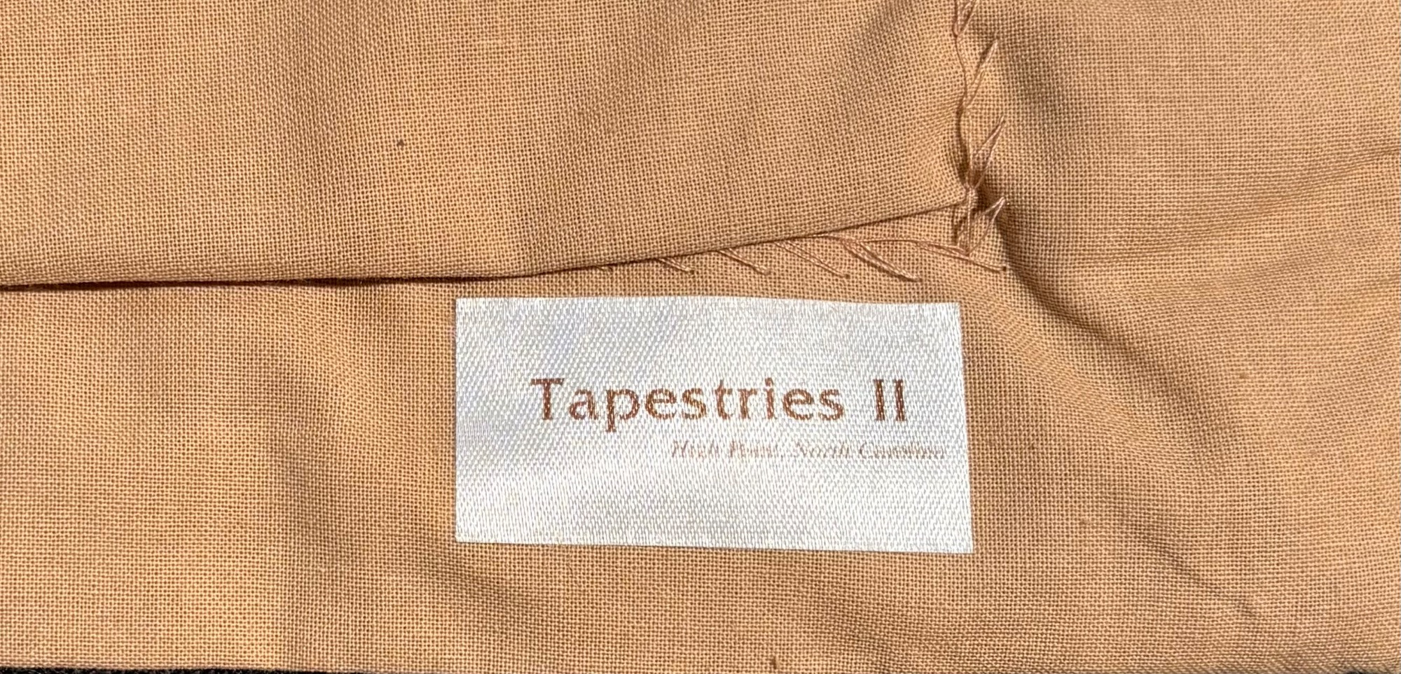 Vintage Venice canal scene tapestry with lovely "framing" element in border design. Comes on ornate hanging rod. Tight weave and fully lined. Quite large - about 3' high by 4.5' wide. Made in the USA. Note: All tapestries listed in this auction are in good condition, but all would benefit from a good wash.