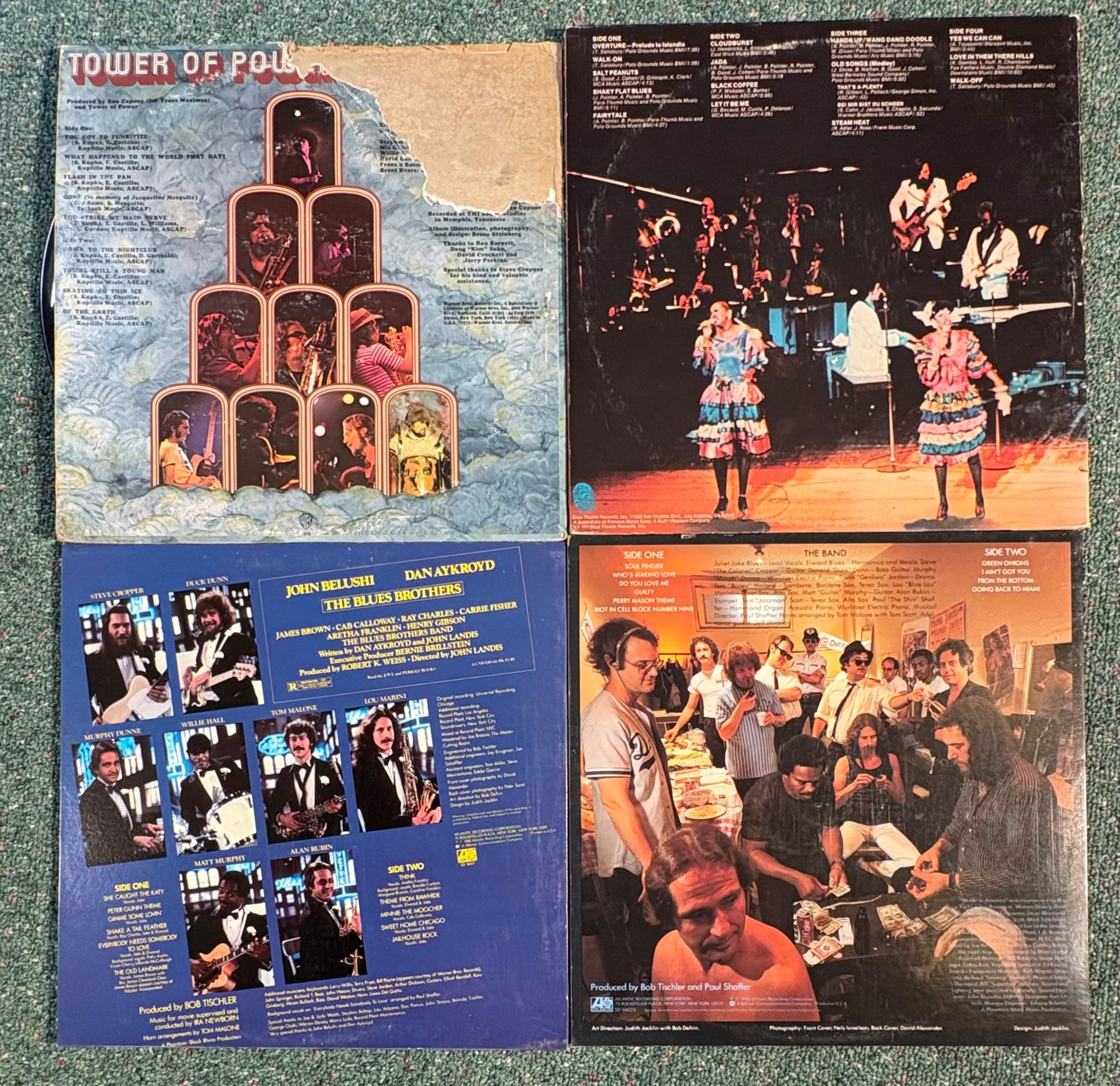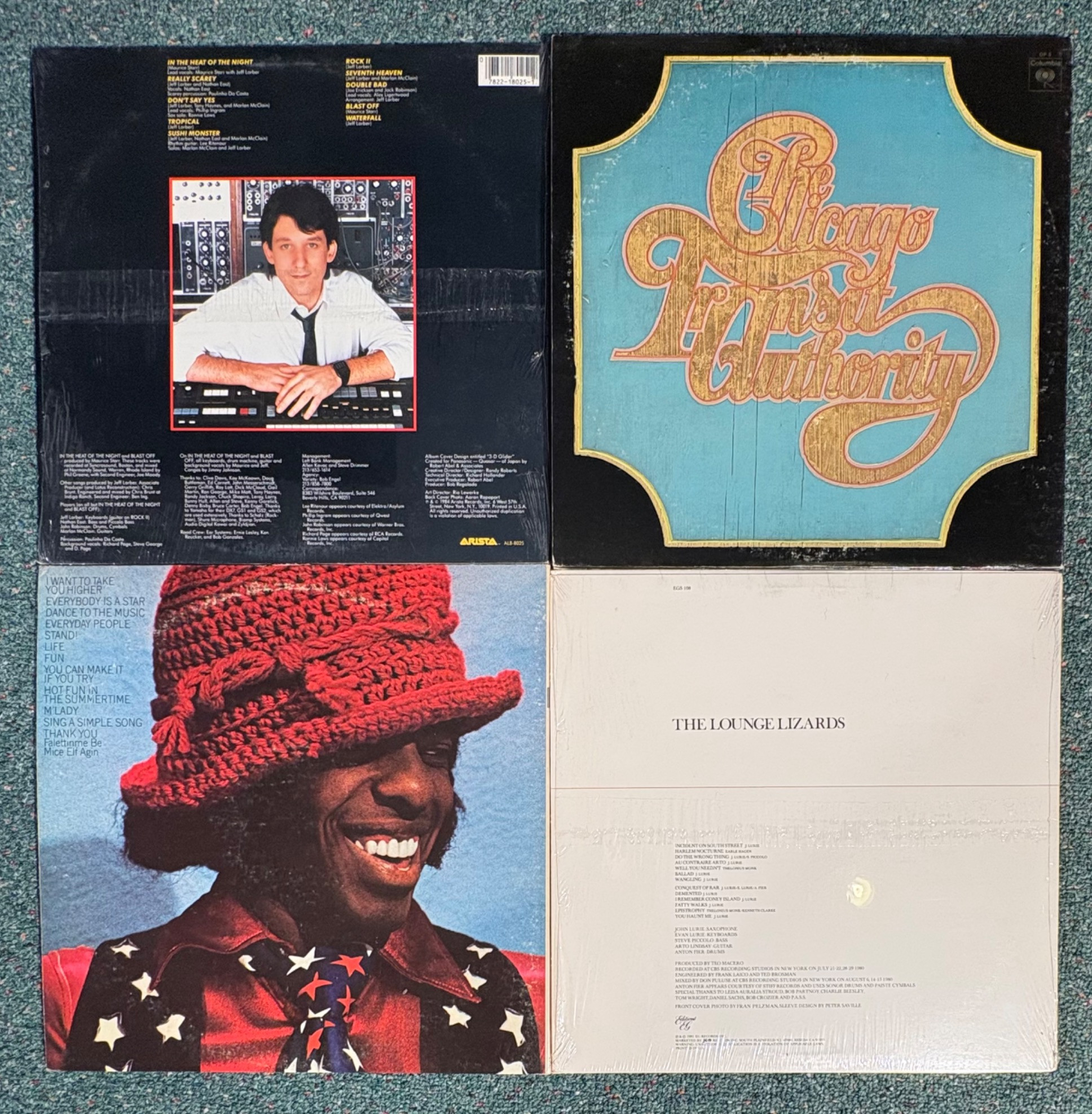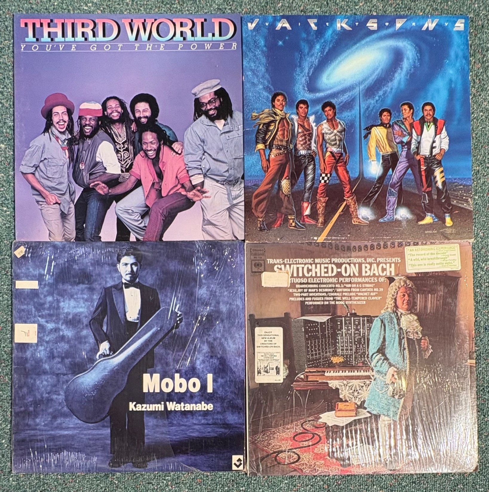16 vintage vinyl LPs! Our client had eclectic taste and loved his albums - thus, most of these have been lovingly played over the years. We checked to make sure the correct album was in the correct cover and did a cursory glance for any egregious scratches. Some covers reflect heavy use and are worn/split in places/have names written on them. However, the majority are in good used shape. Artists/Bands in this lot include: Tower Of Power Blues Brothers (2 albums) The Pointer Sisters Third World Kazumi Watanabe Jackson’s Switched On Bach Jeff Lorber Sly & The Family Stone (2 albums) Chicago The Lounge Lizards Soul Train Hall Of Fame Climax Blues Band The Honeydrippers Note: Soul Train Hall of Fame missing inner sleeve.