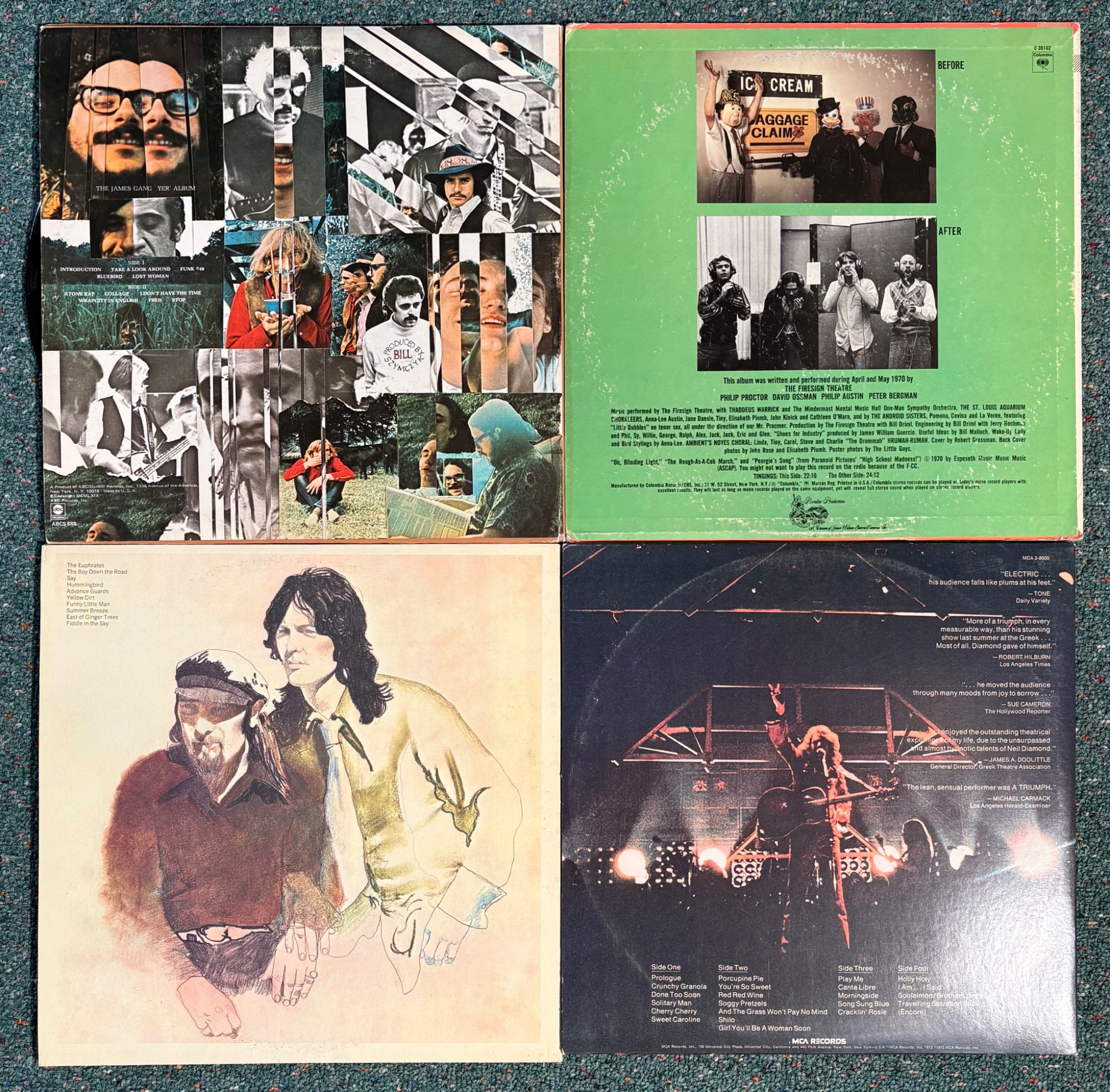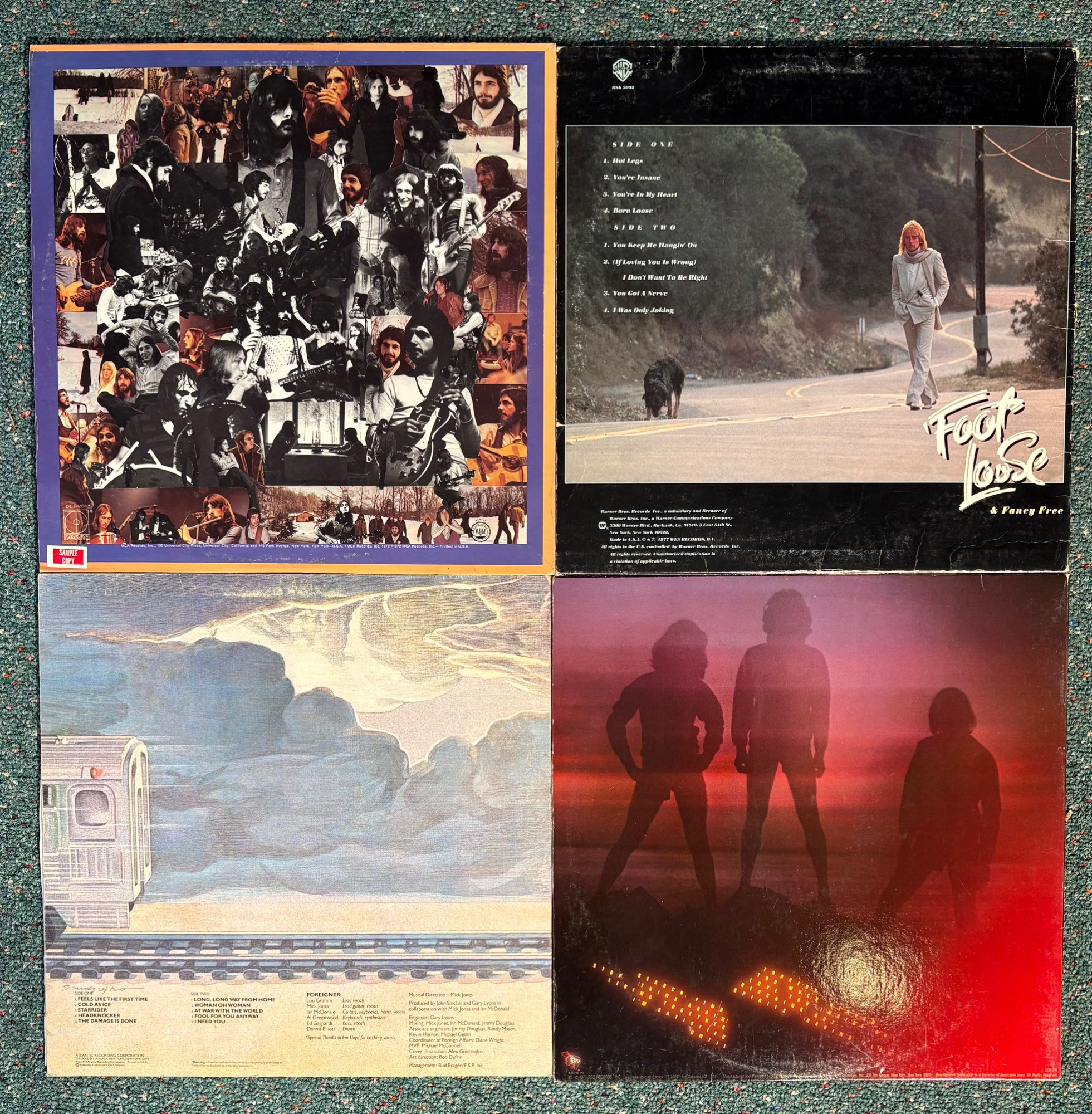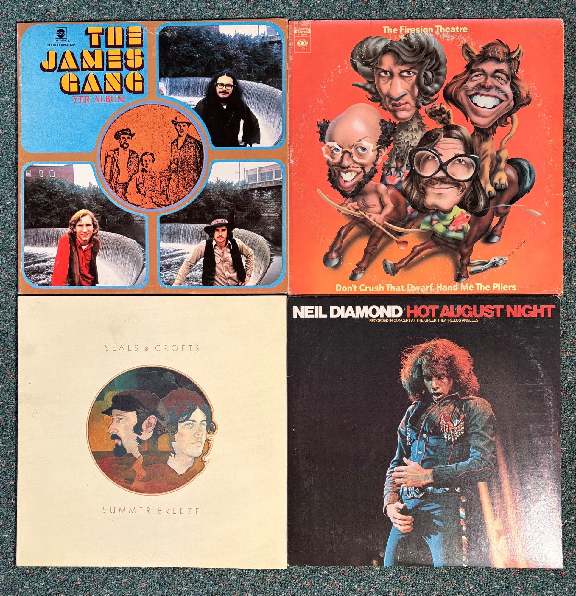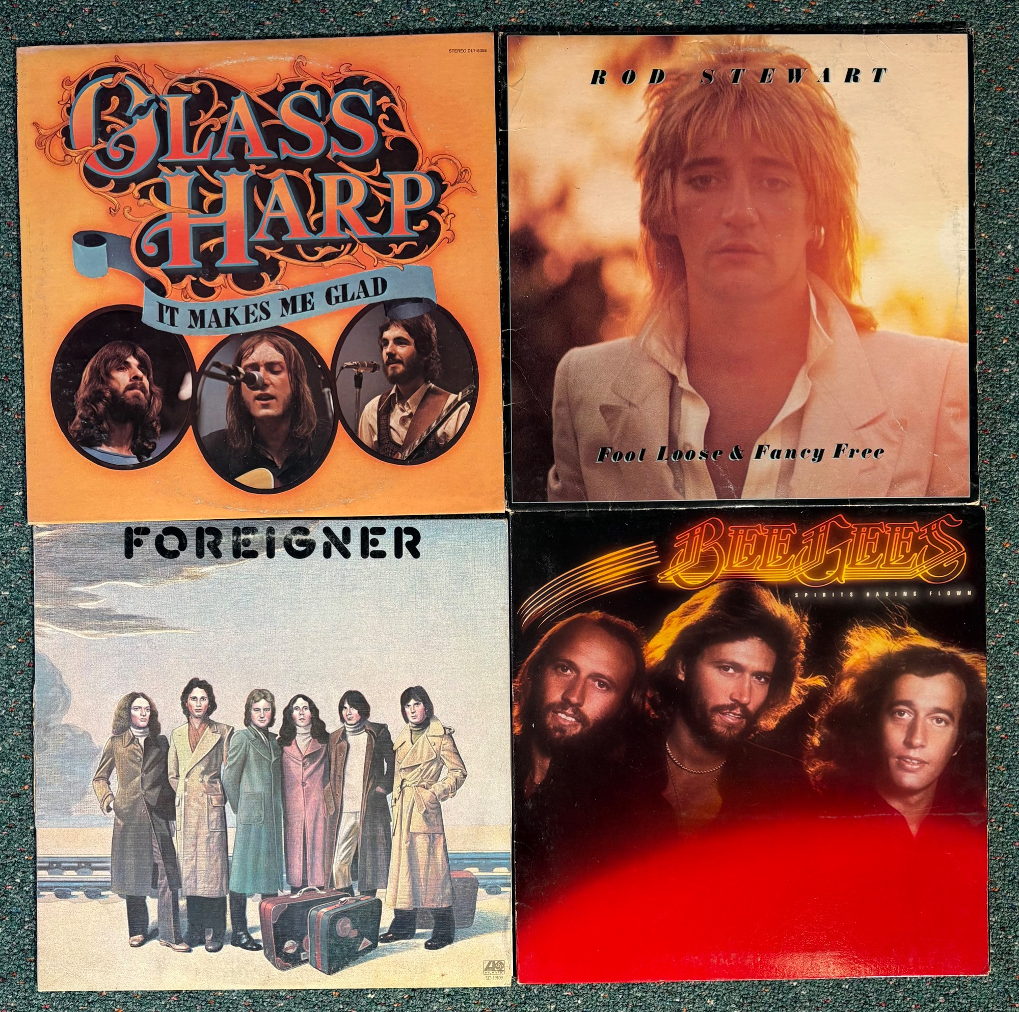 16 vintage vinyl LPs! Our client had eclectic taste and loved his albums - thus, most of these have been lovingly played over the years. We checked to make sure the correct album was in the correct cover and did a cursory glance for any egregious scratches. Some covers reflect heavy use and are worn/split in places/have names written on them. However, the majority are in good used shape. Artists/Bands in this lot include: Rod Stewart Glass Harp Foreigner Bee Gees Rhinoceros Linda Ronstadt Seals & Crofts (2 albums) Art Garfunkel The James Gang Fire Sign Theater Neil Diamond Rolling Stones Maria Moldaur Average White Band The Grass Roots