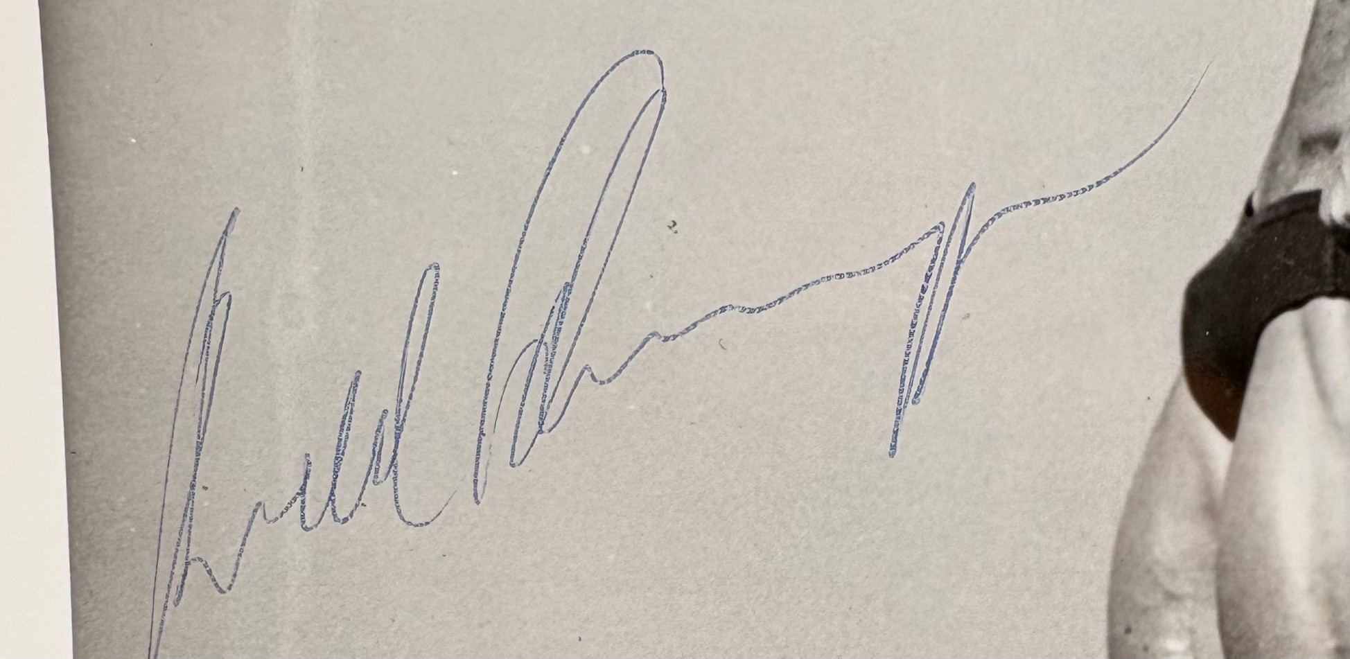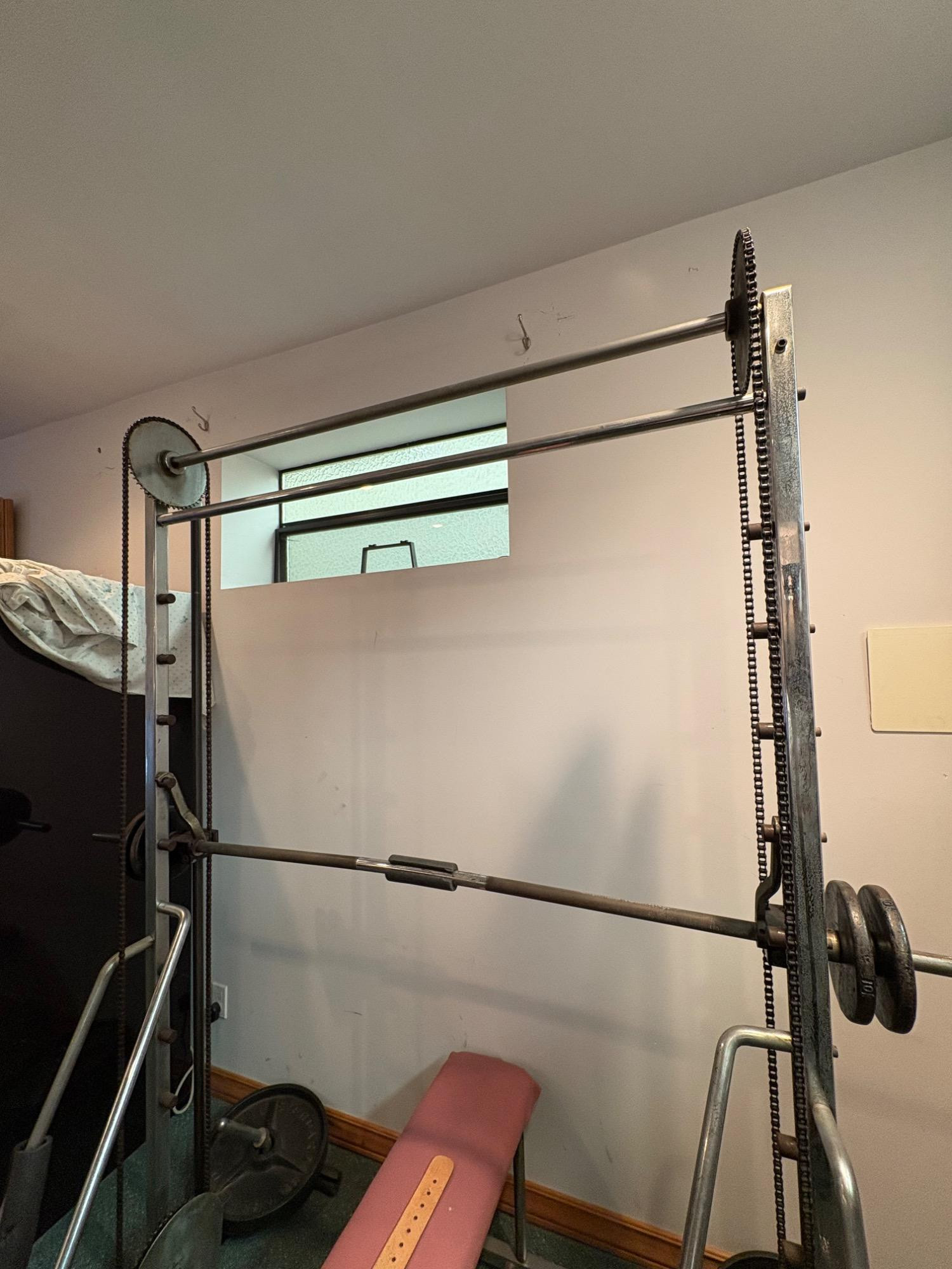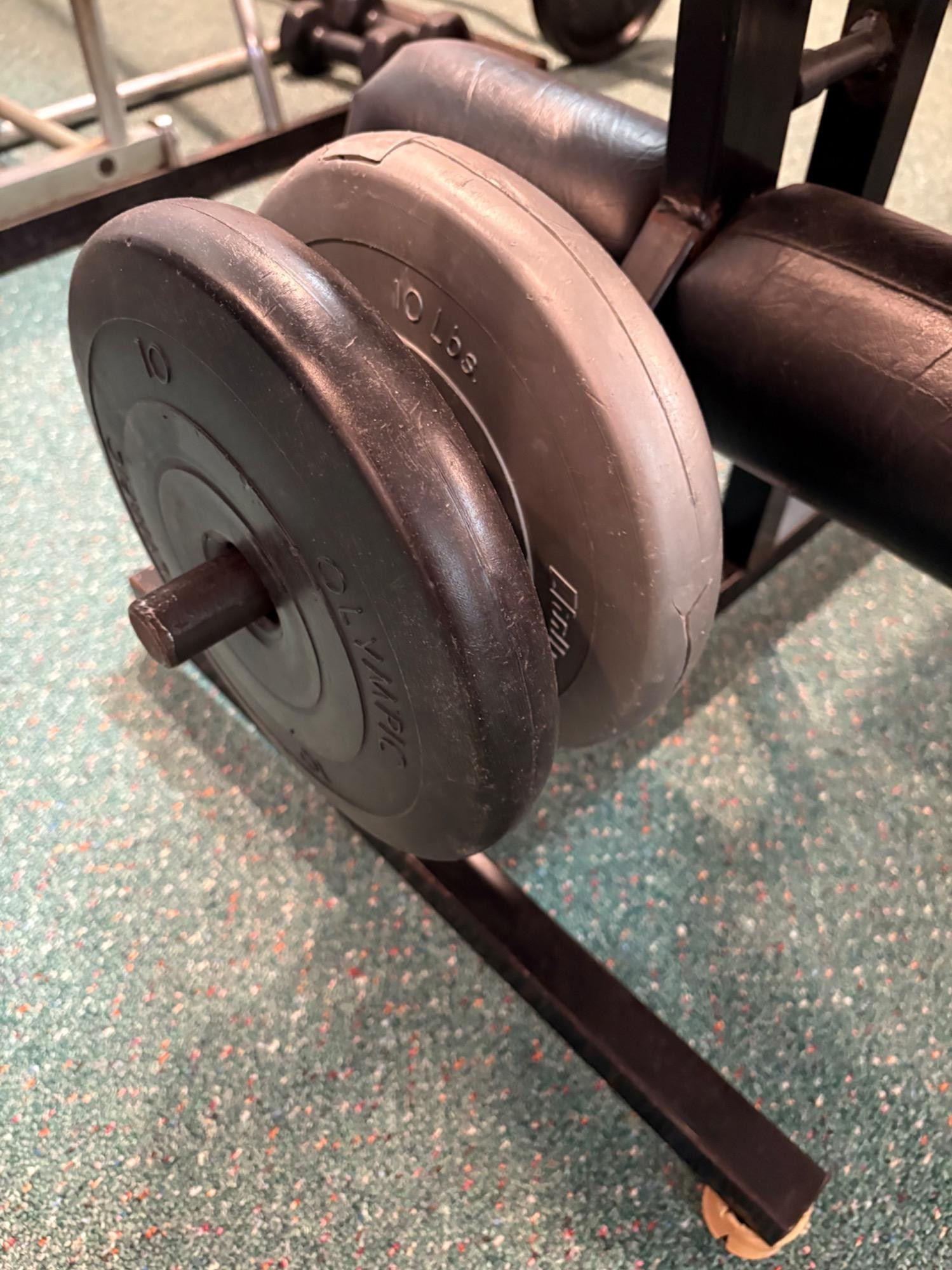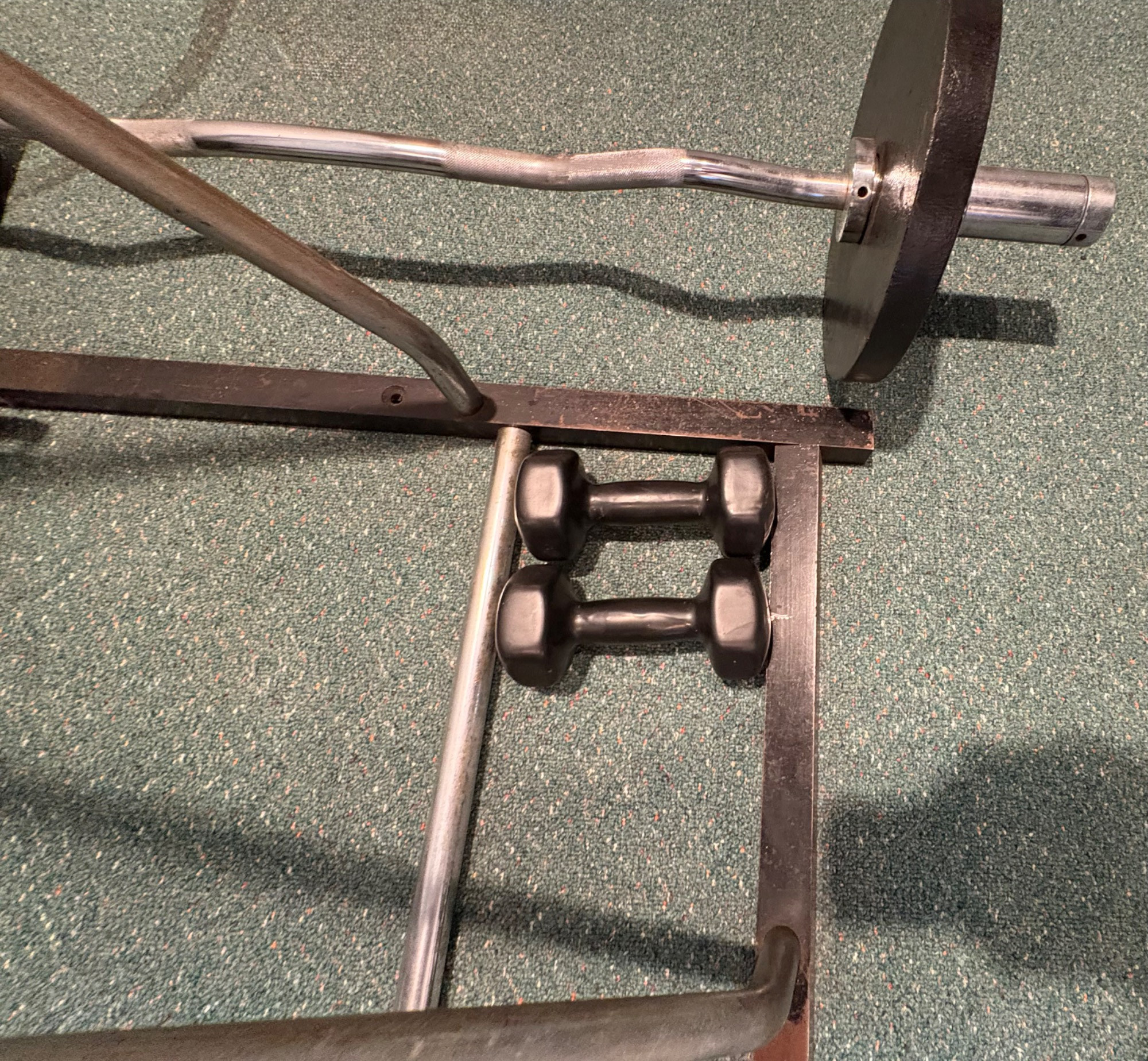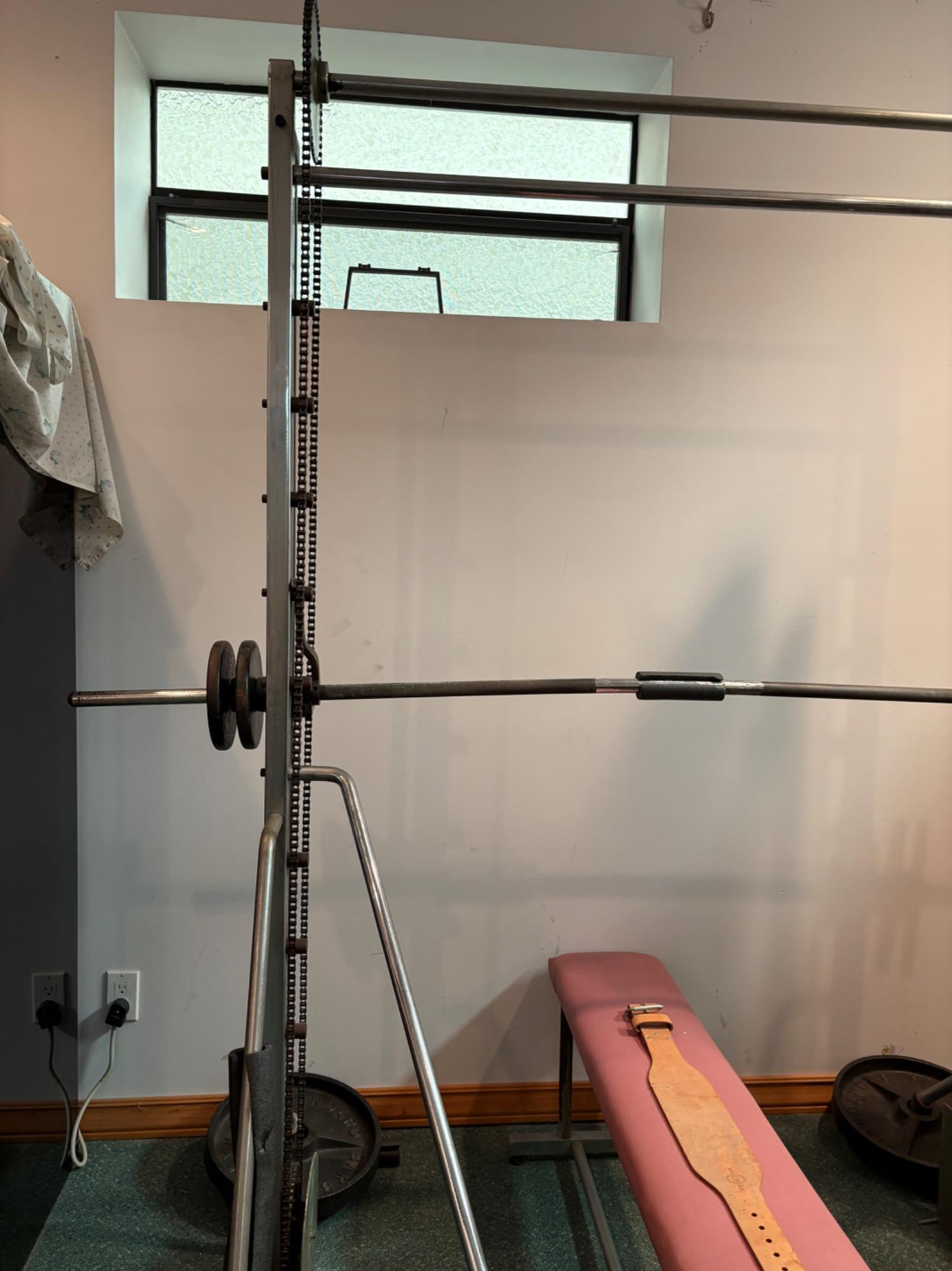 Free weight set with two benches. Pulley-equipped lift bar and multiple weights. Weights are in various denominations from hand weights to 35lbs. What you see in the pictures is what you get. Also included is a size "small" leather weight belt. BONUS - Ephemera from Arnold Schwarzenegger’s guest appearance at the 1976 Mr. Northwest Physique Championships. Includes a wall poster (water stained & a bit bent), programs for the competition (in pretty good shape), and 2 different 8" x 10" black-and-white photos (great condition) signed in blue ball point pen by Arnold. Hopefully this is in inspiration for you! Local Pickup Only. Bidding on this lot is an agreement that: (1.) You will have 2 capable, able-bodied persons to lift and load at a minimum. (2.) You will bring a hand truck and/or any other tools needed to remove this item. If these steps are not followed your item will be forfeited and no refund given.