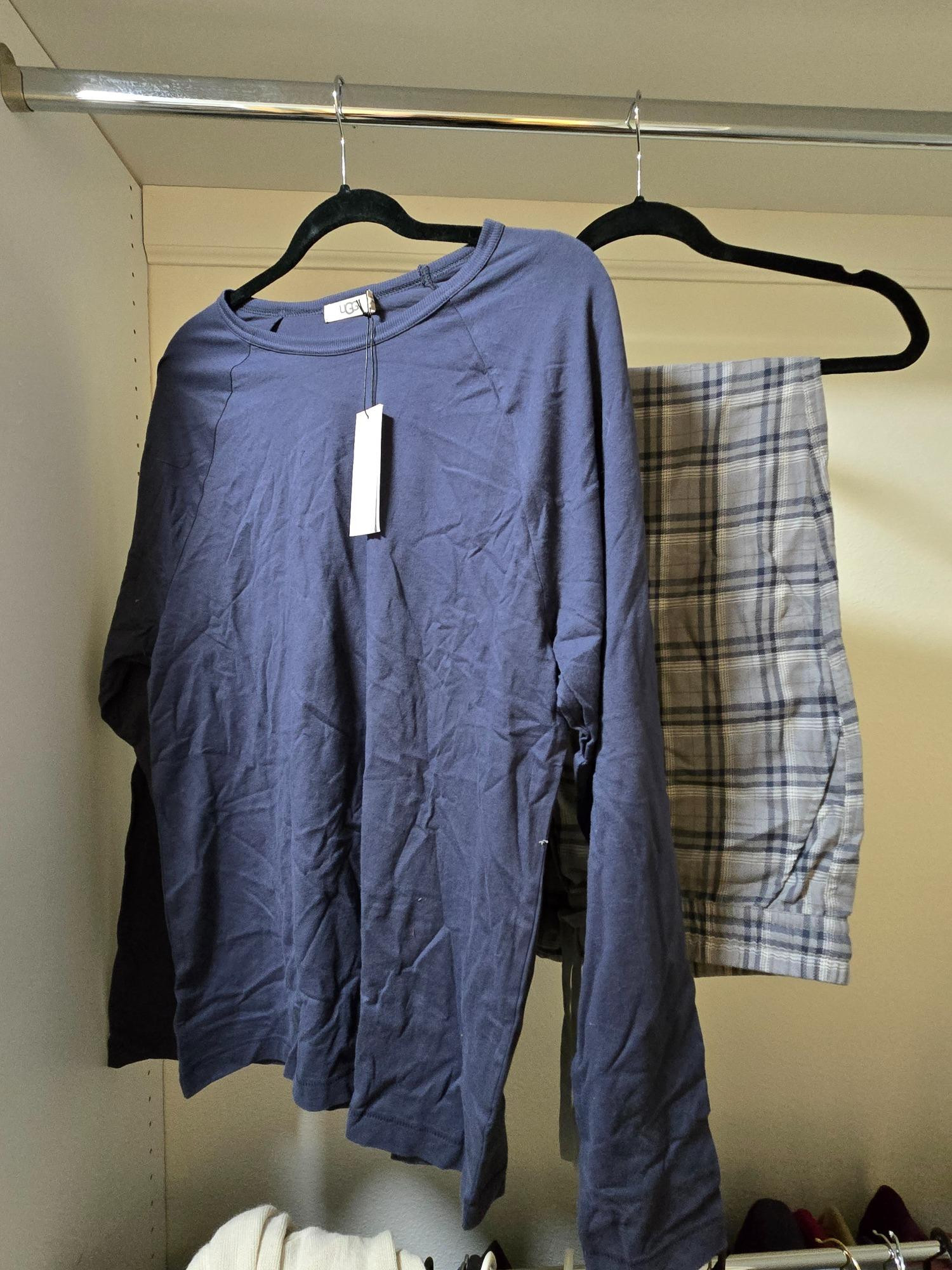 UGG Men's 2-Piece Pajama Set – Shirt & Plaid Flannel Pants (NEW w/ Tags) Stay cozy in this brand-new UGG men's pajama set, featuring a soft long-sleeve shirt and comfortable plaid flannel pants. The top is made from 100% cotton, while the pants are a cotton-polyester blend for durability and softness. Both pieces come with original UGG tags attached, ensuring authenticity. Shirt: 100% Cotton Pants: 60% Cotton, 40% Polyester