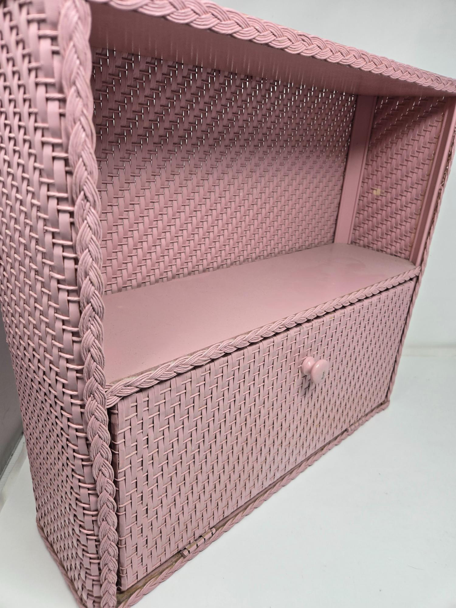 Vtg 1950s/1960s Midcentury Pink Woven Wicker Bathroom Shelf
