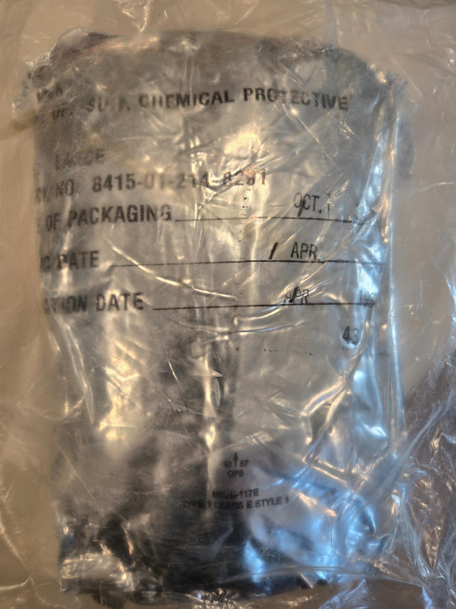 The item is a US Military Chemical Protective Suit, from 1988. Additional details: Type: Chemical Protective Suit Material: Nylon and Modacrylic Packaging Date: October 1987 Inspection Date: April 1988 Specification: MIL-G-1178, Class E Style It is sealed and unopened, considered vintage surplus Chemical suits generally have a shelf life of around 10